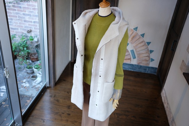 【BRAHMIN】フーデッドドッキングファーベスト<エクリュ>