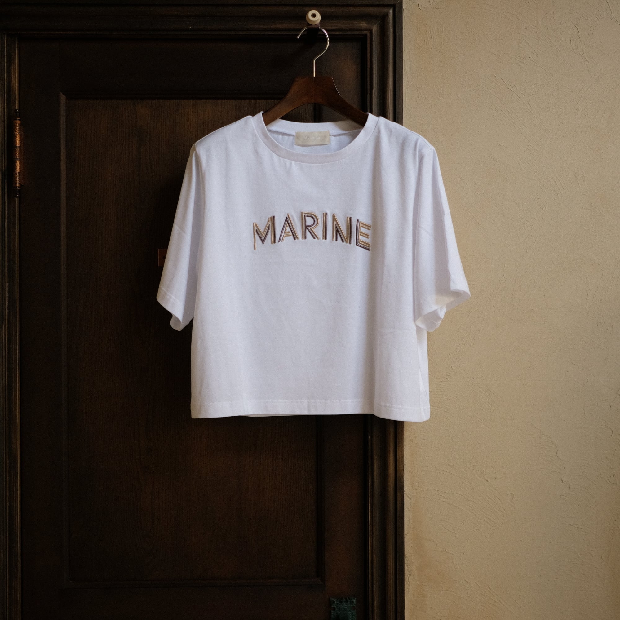 新登場の「MyLanka コード刺繍ショート丈ロゴ半袖Tシャツ」は、トレンドを意識した新鮮なショート丈デザインが魅力的なアイテムです!着丈約50cmのショートなシルエットが、スタイリッシュでありながらもリラックスした印象を与えます。立体的な配色使いのコード刺繍ロゴ”MARINE"がアクセントとなり、独自のスタイルを引き立てます。