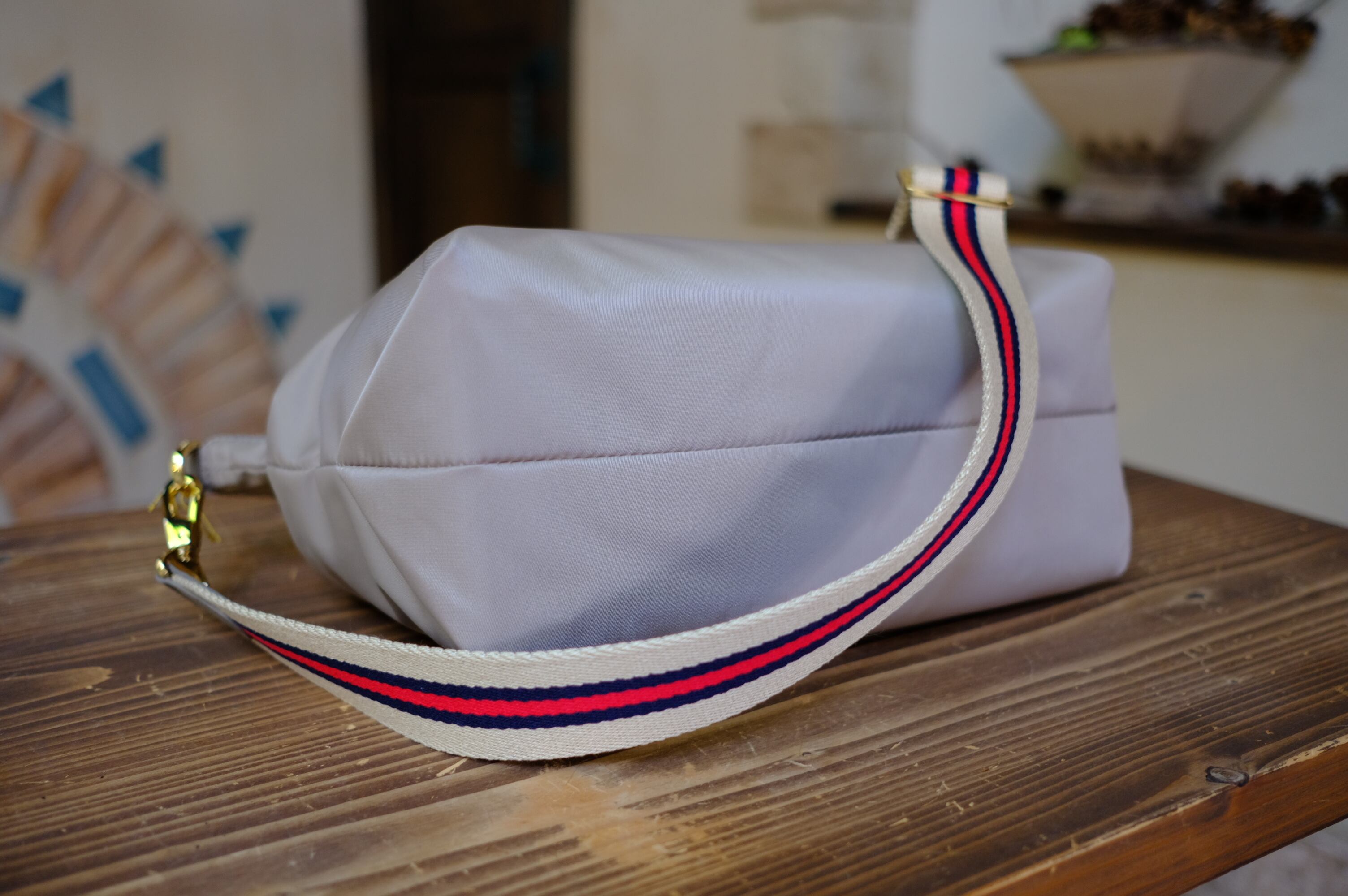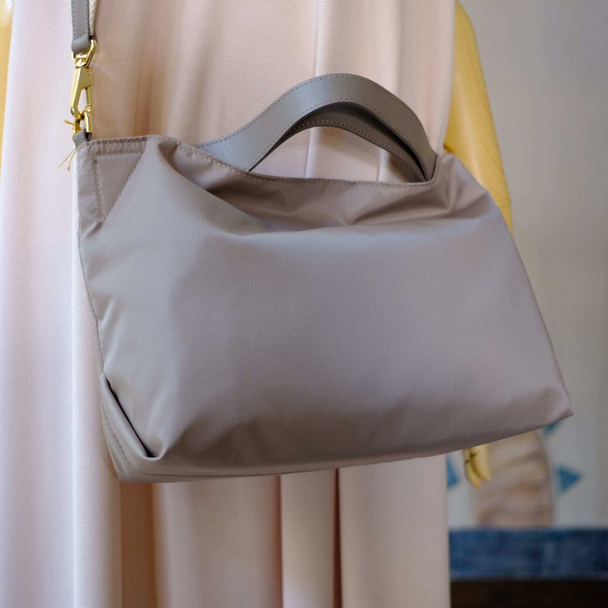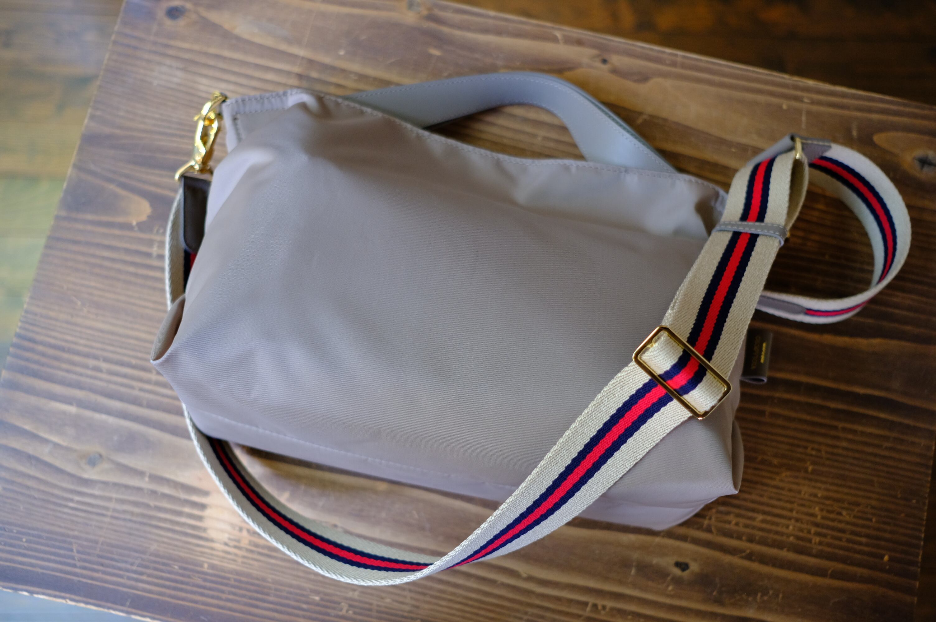 このナイロントートバッグの最大の魅力は、手提げにも対応できる持ち手と、アクセントとして映えるアイビーベルトストラップです。さらに斜め掛けも可能な2WAY仕様で、シーンを問わず活躍できるアイテムです!これからの季節、このトートバッグを持ってスタイリッシュにお出かけを楽しんでください。