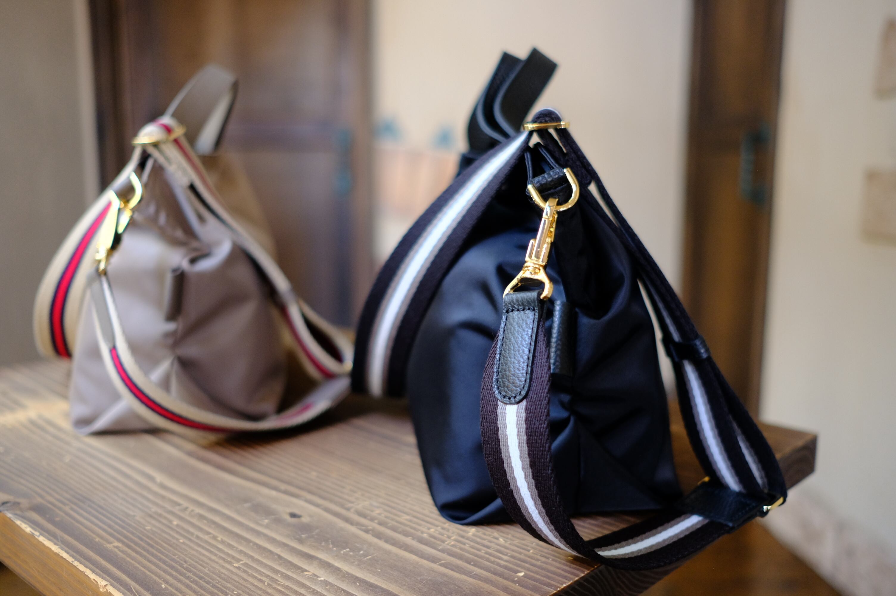新登場の「VIOLAd'ORO イタリアンレザーハンドルアイビーベルトストラップ付ナイロントートバッグ」は、上質なイタリアンレザーの持ち手と耐水性のあるナイロン素材の組み合わせが魅力的なトートバッグです!スタイリッシュなデザインでありながら、多機能性を備えた一品となっています。