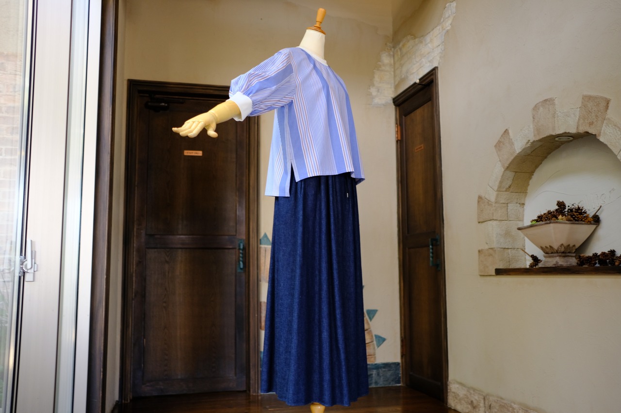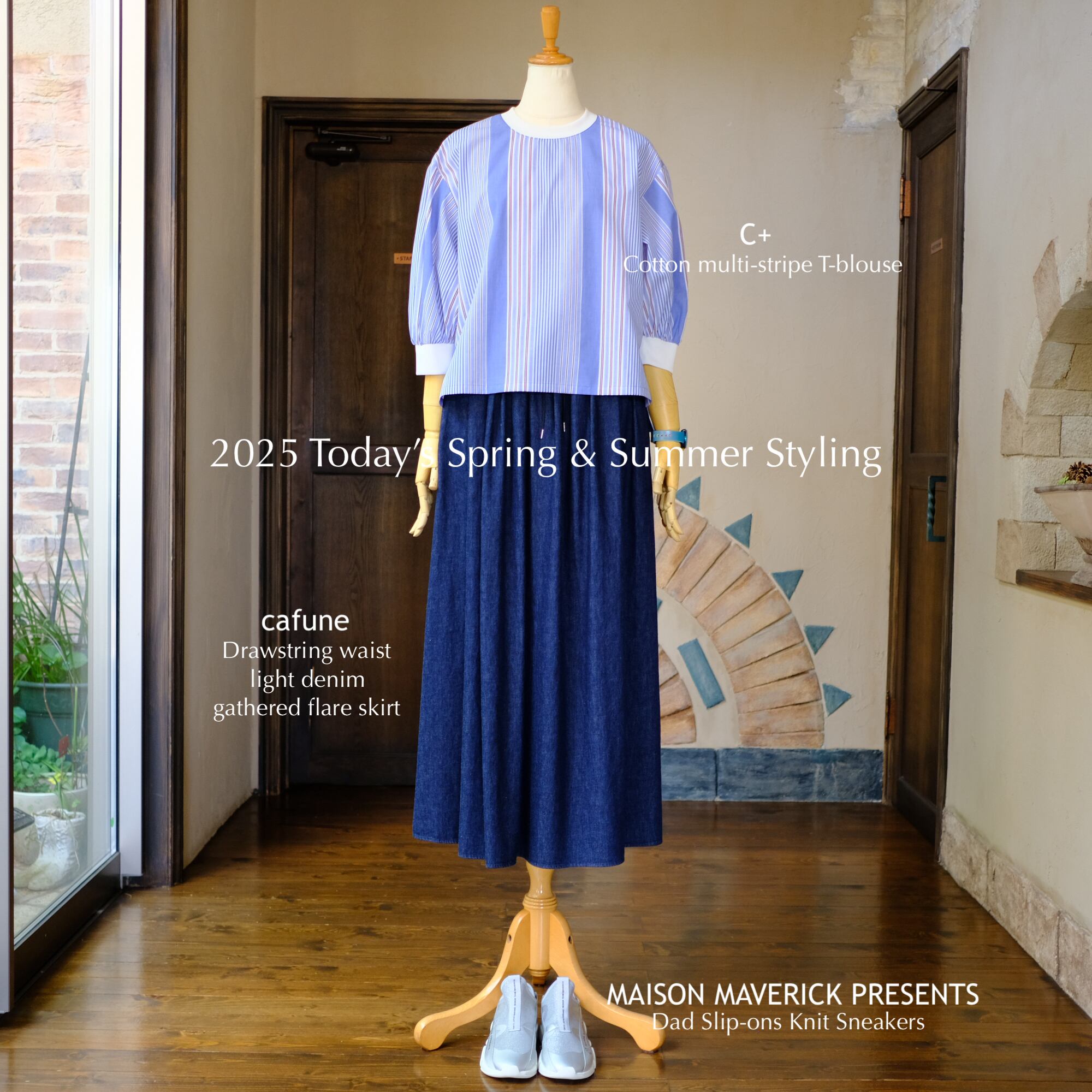この「cafune ドローストリングウエストライトデニムギャザーフレアースカート」をぜひお試しください!