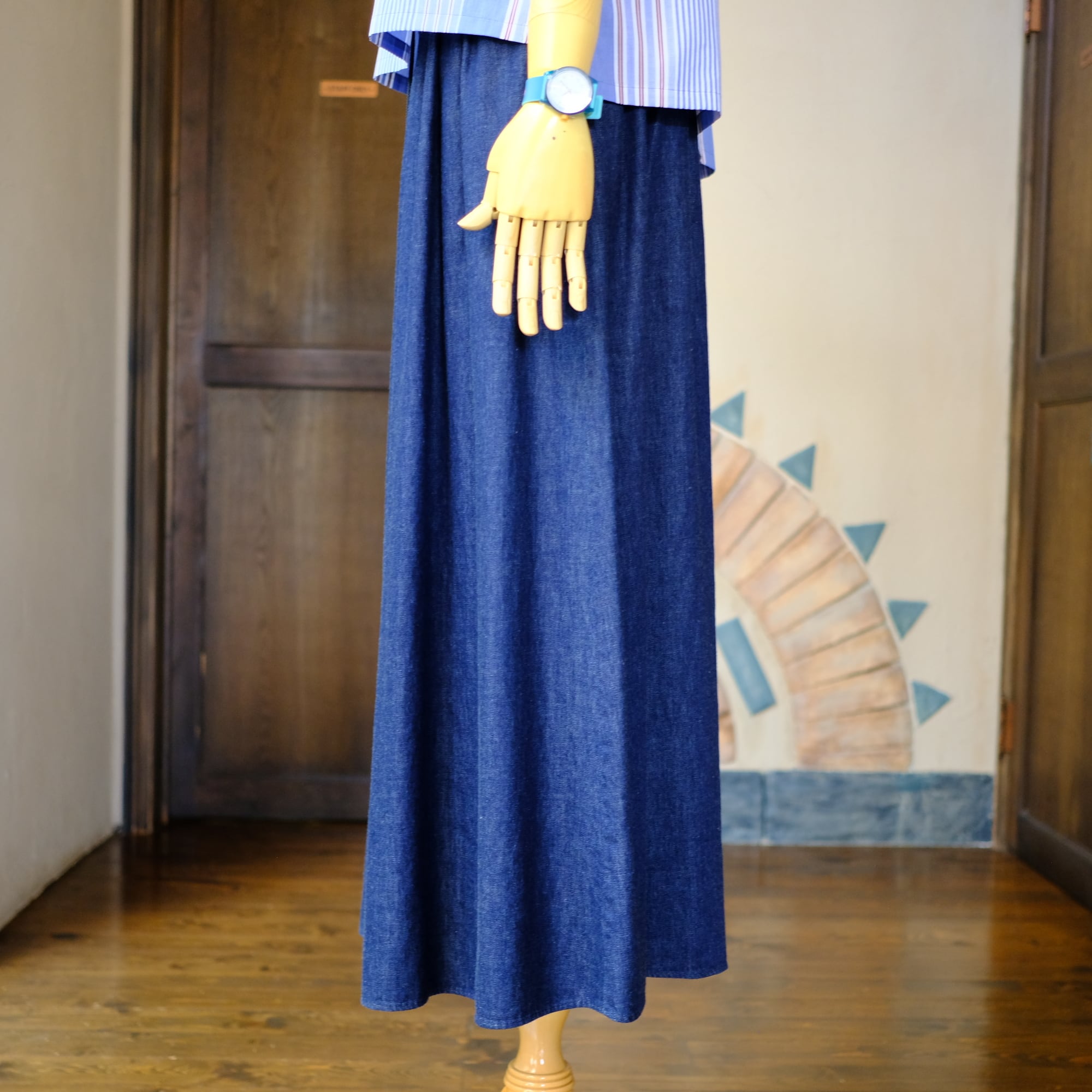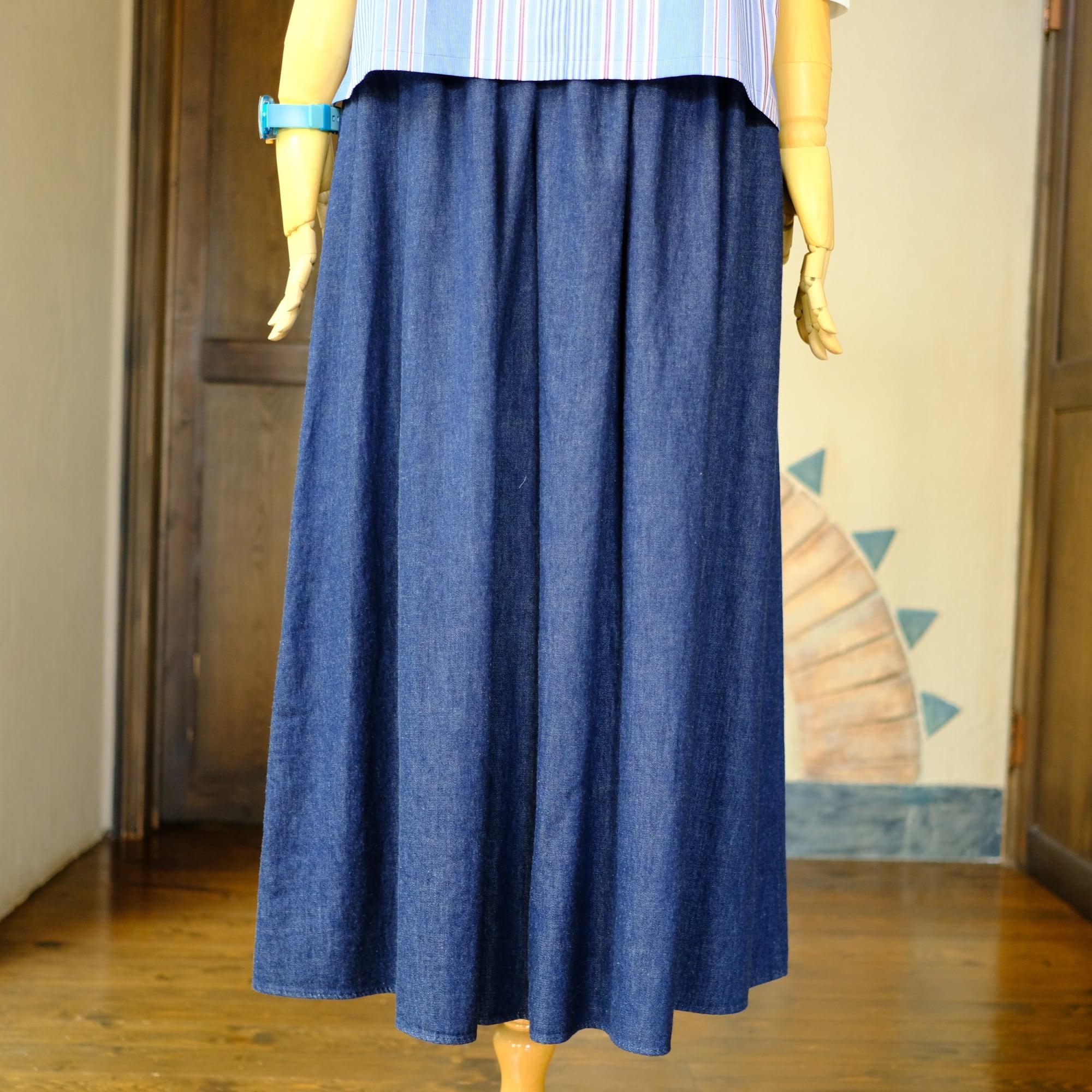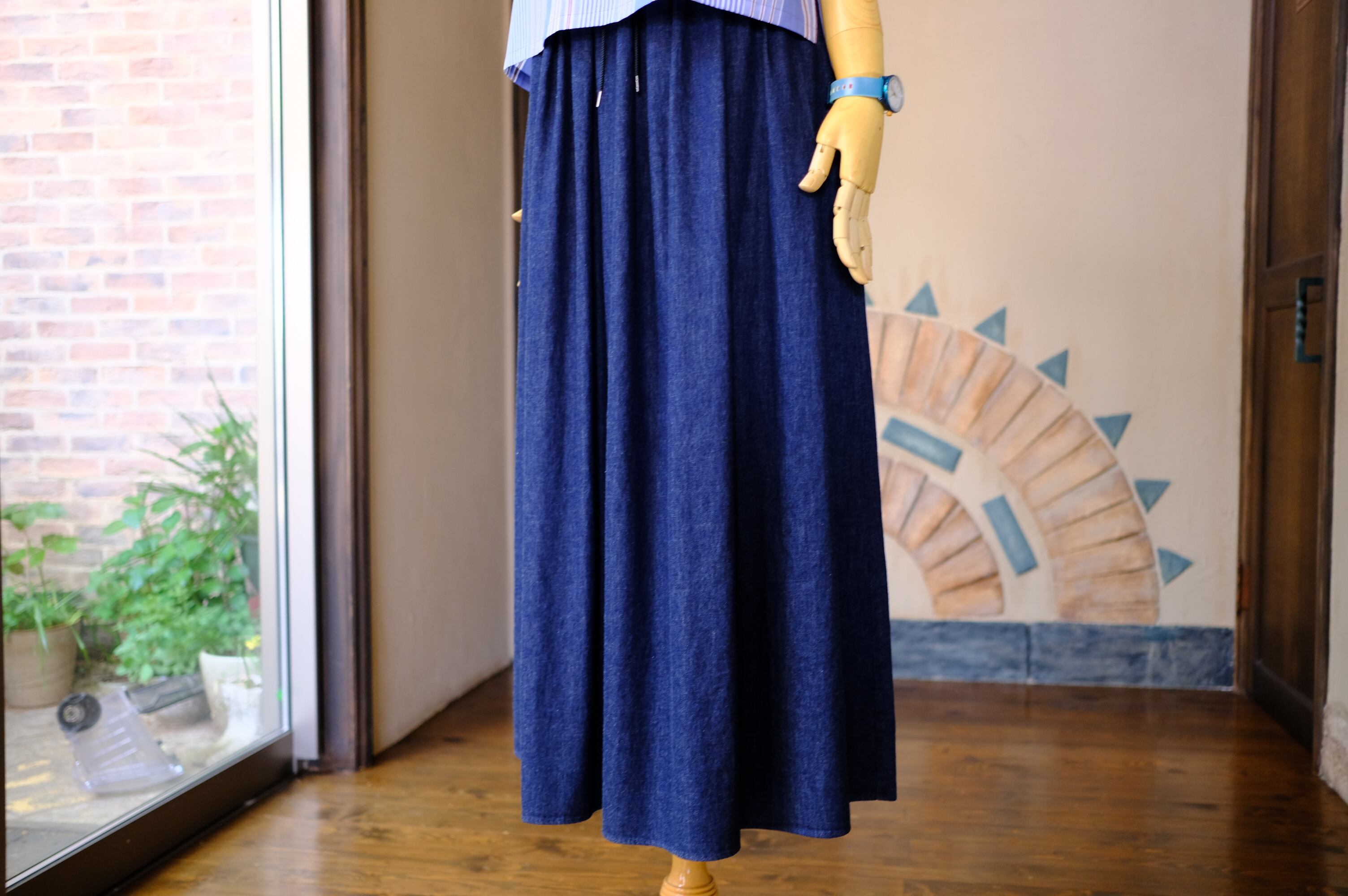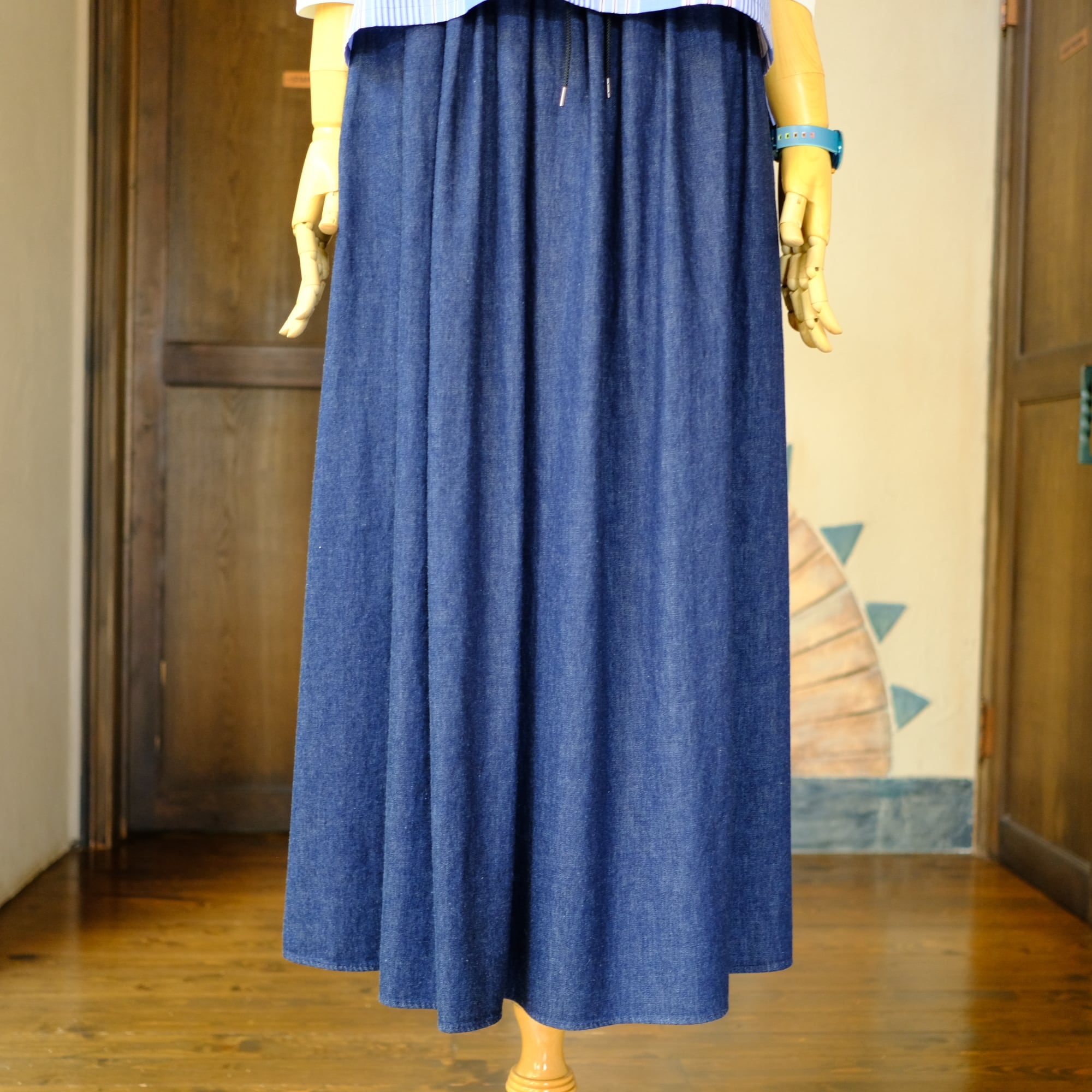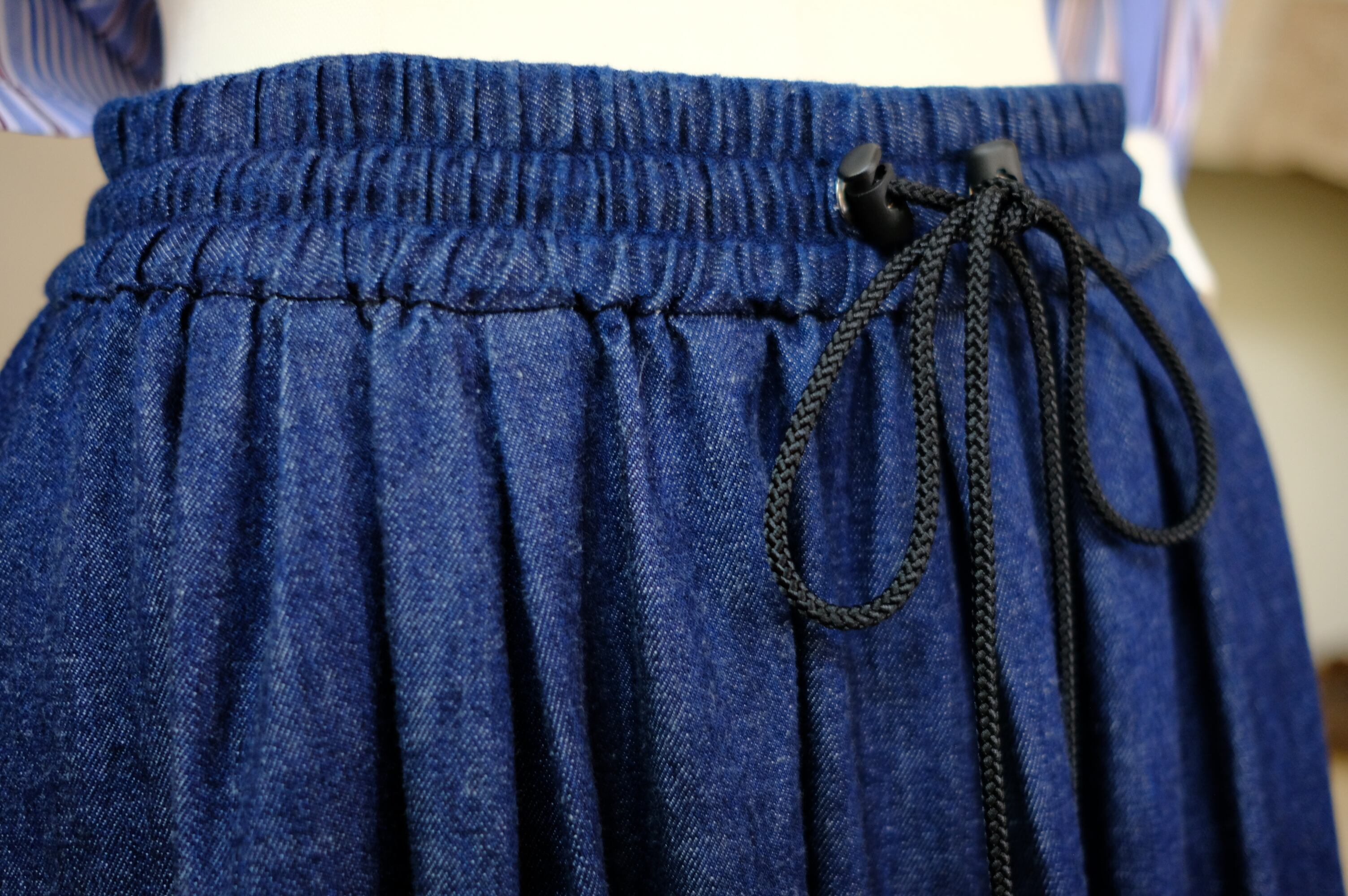商品名:cafune ドローストリングウエストライトデニムギャザーフレアースカート