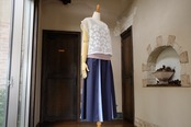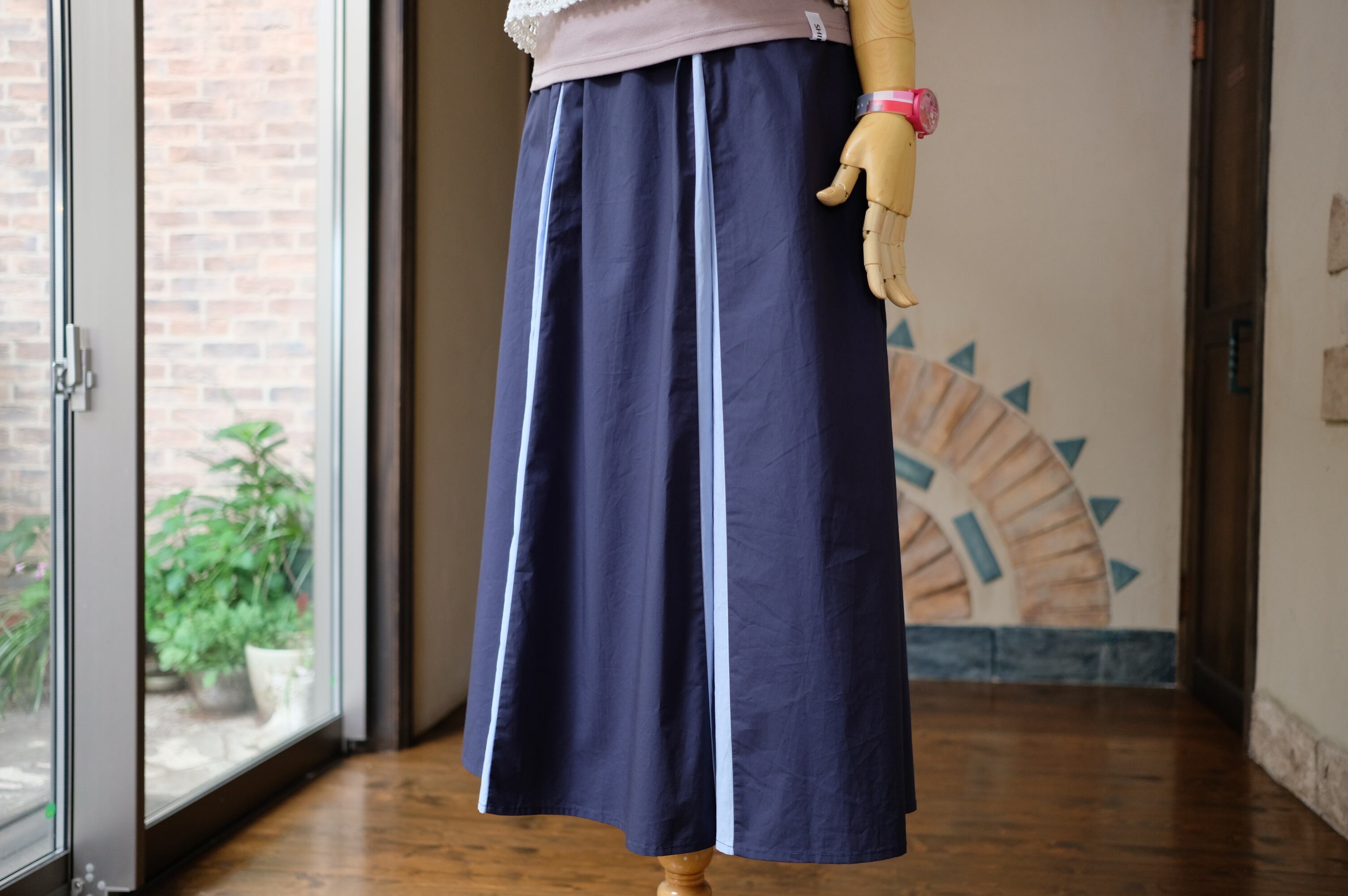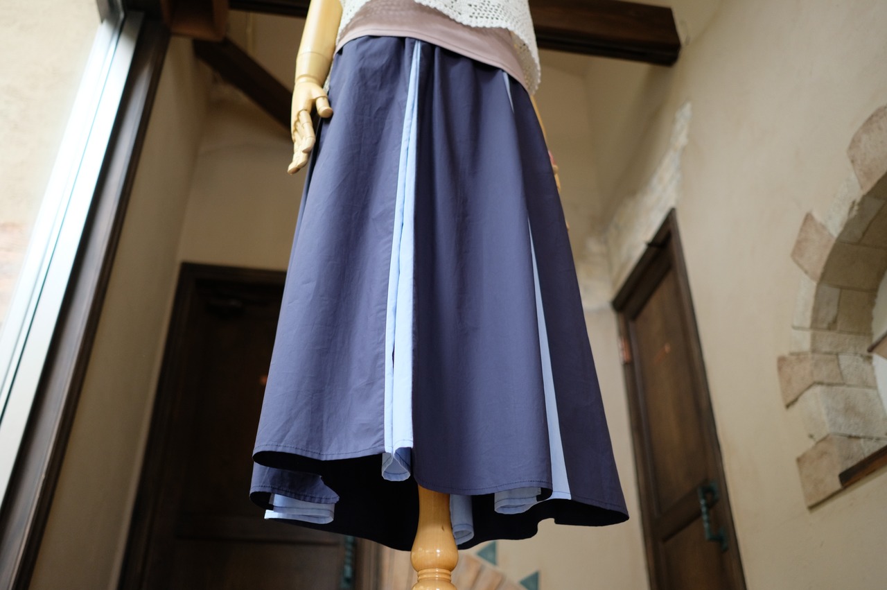 この「MyLanka コットンツイル×別布配色ギャザーフレアースカート<ネイビー×サックス>」をぜひお試しください!