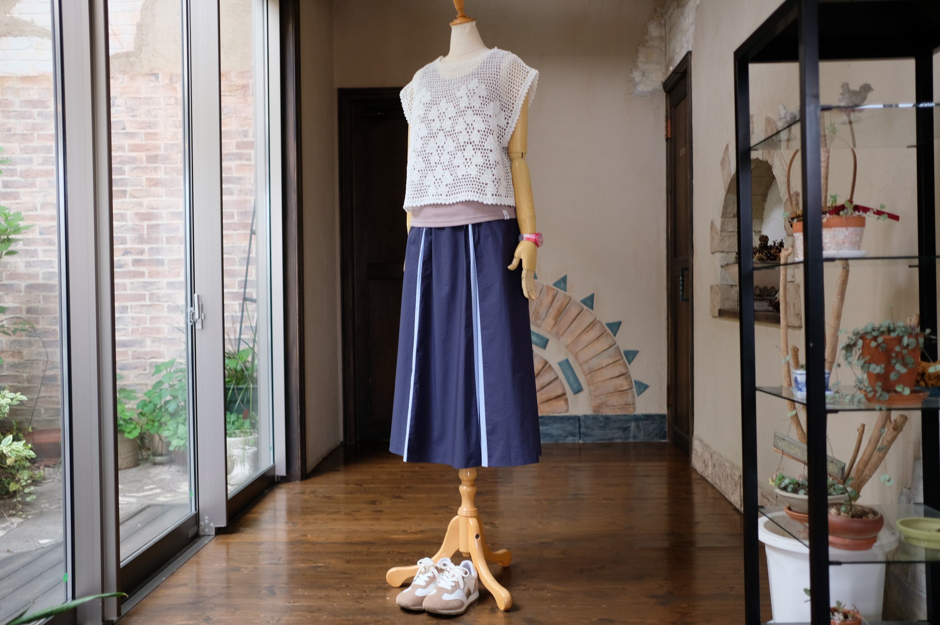 このスカートの特徴は、ウエストが総ゴム仕様で快適な着心地を実現している点です。カジュアルからちょっとしたお出かけまで幅広く活躍し、シンプルなトップスと合わせることで、より一層お洒落なスタイルを楽しむことができます!色合わせを楽しむことで、さまざまなコーディネートを楽しむことができるアイテムです。