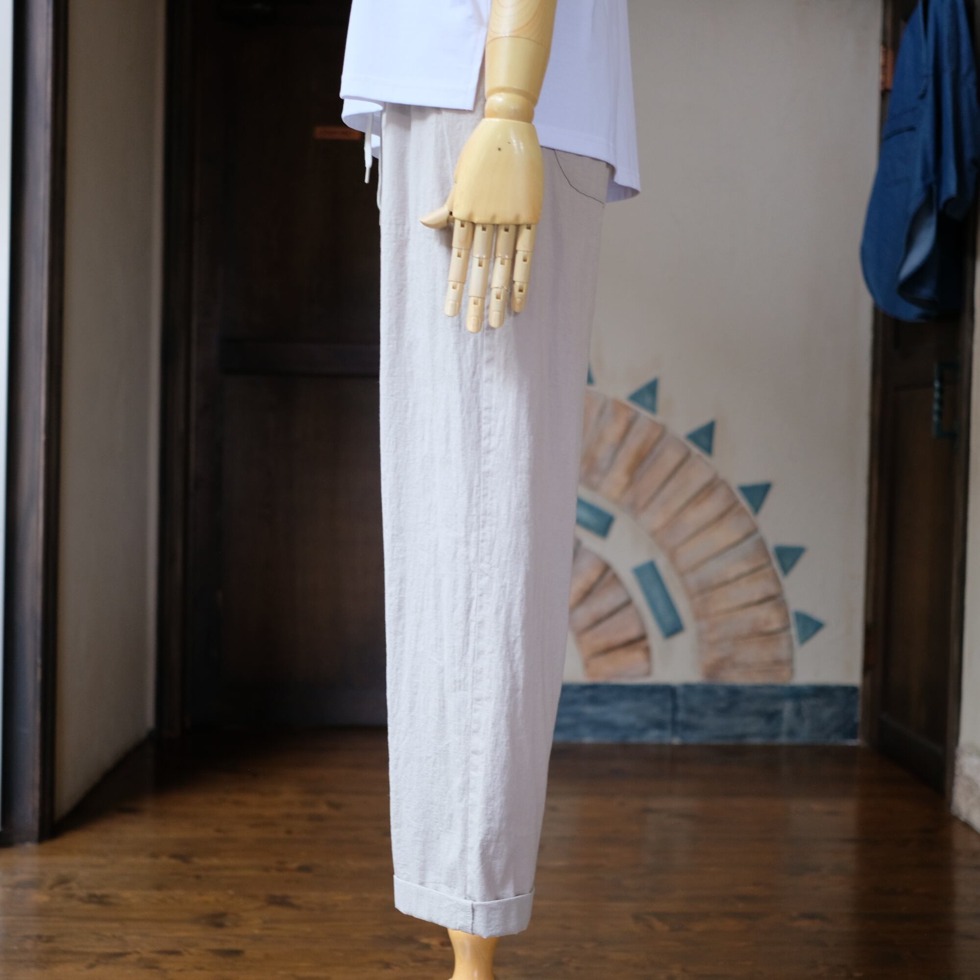 新登場の「【cafune】ロールアップテーパードイージーパンツ<グレージュ>」は、涼しさと軽やかさを兼ね備えた夏にぴったりの一枚です!cafune独自の素材を使用し、肌に優しい心地よい穿き心地を実現しました。