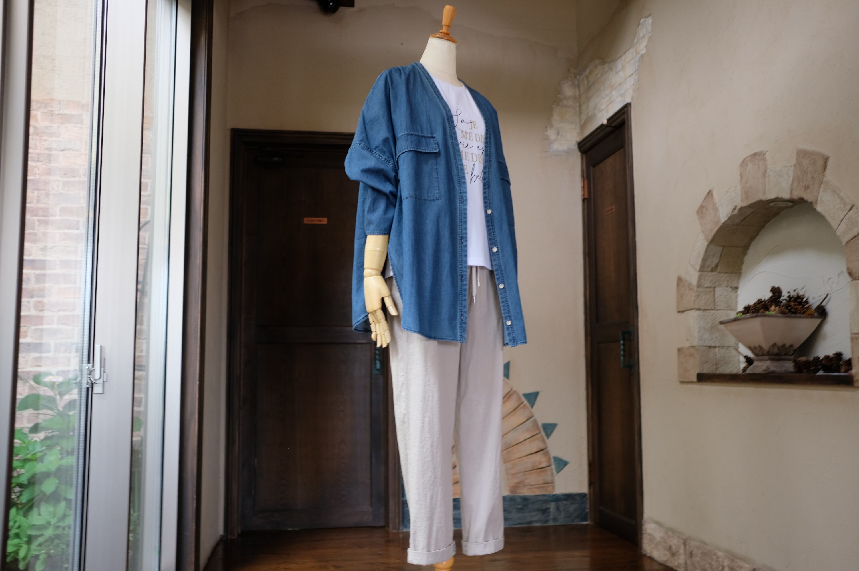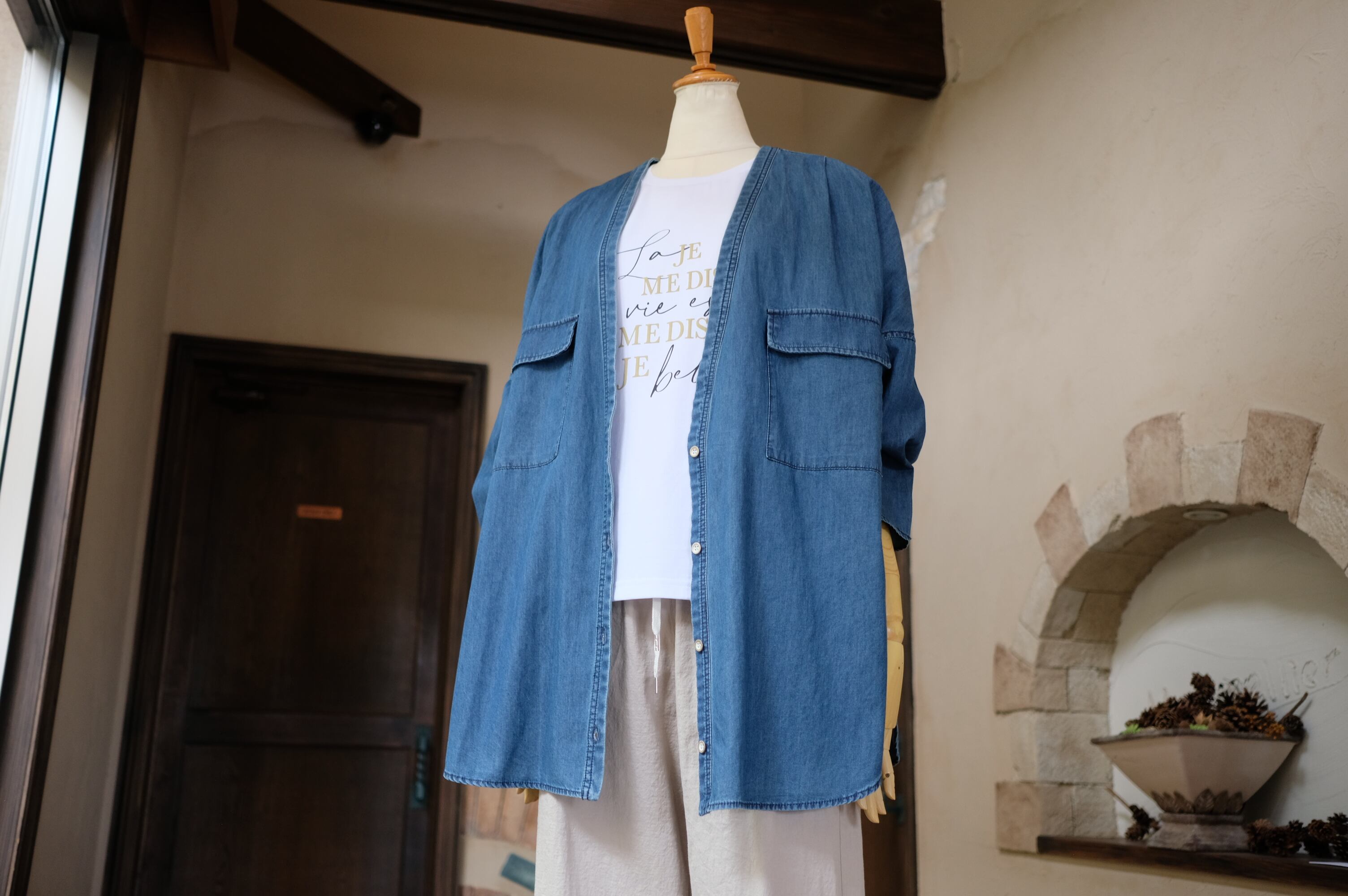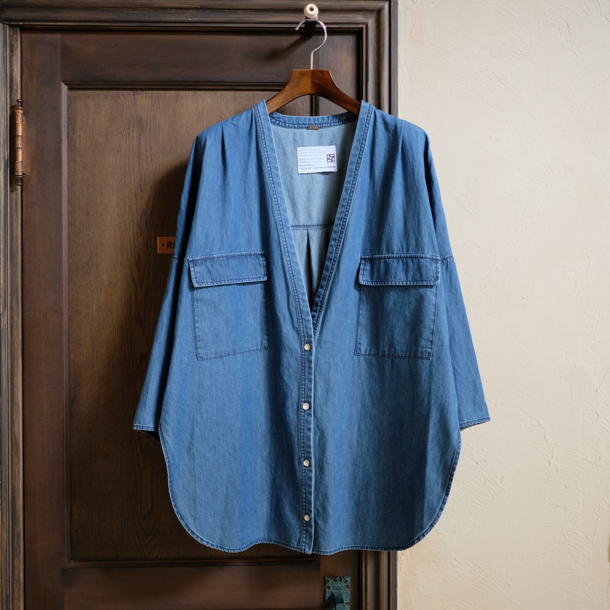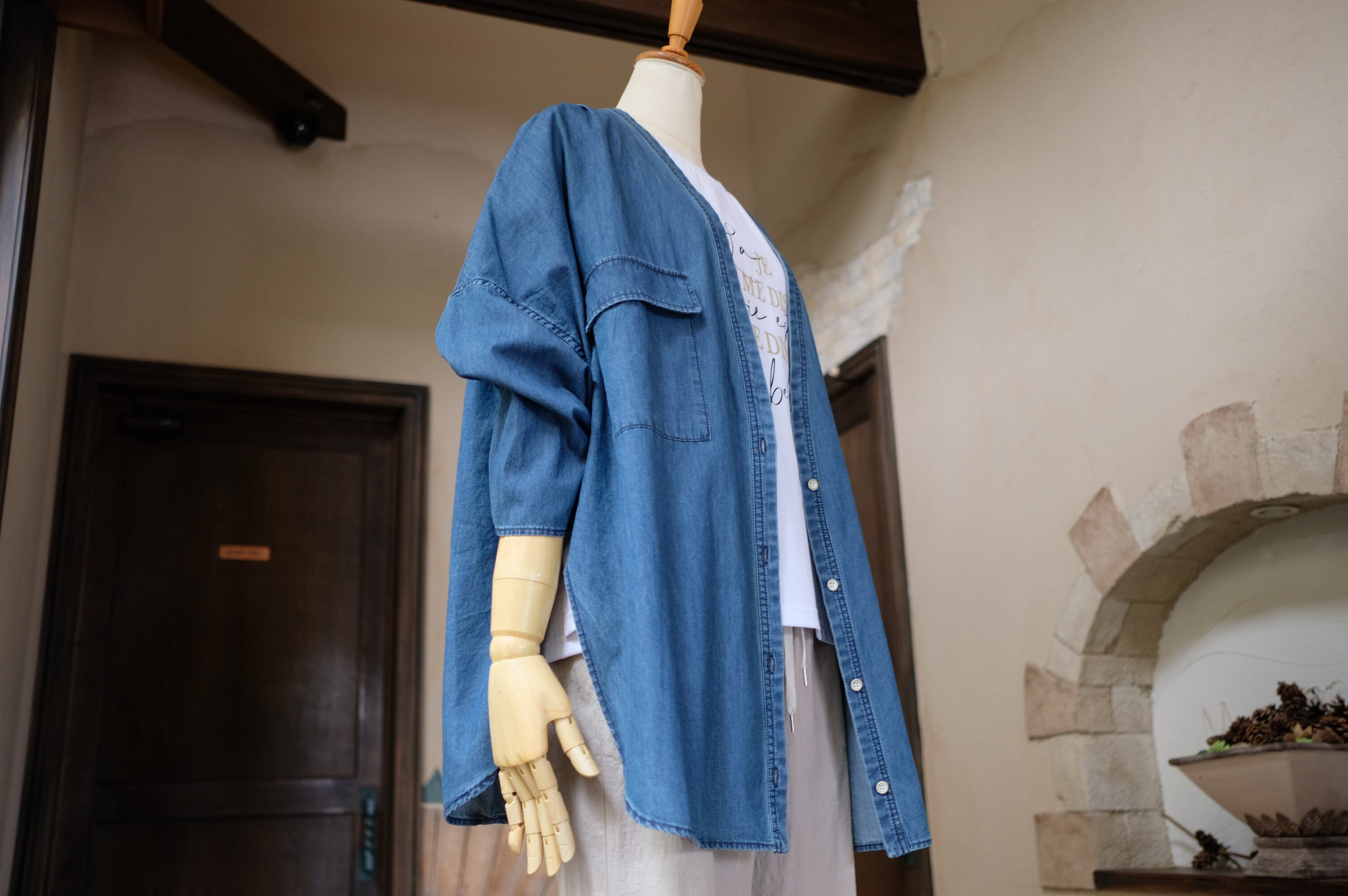 この「【PASSIONE】Vネックオーバーサイズシャツジャケット<ライトデニムブルー>」をぜひお試しください!
