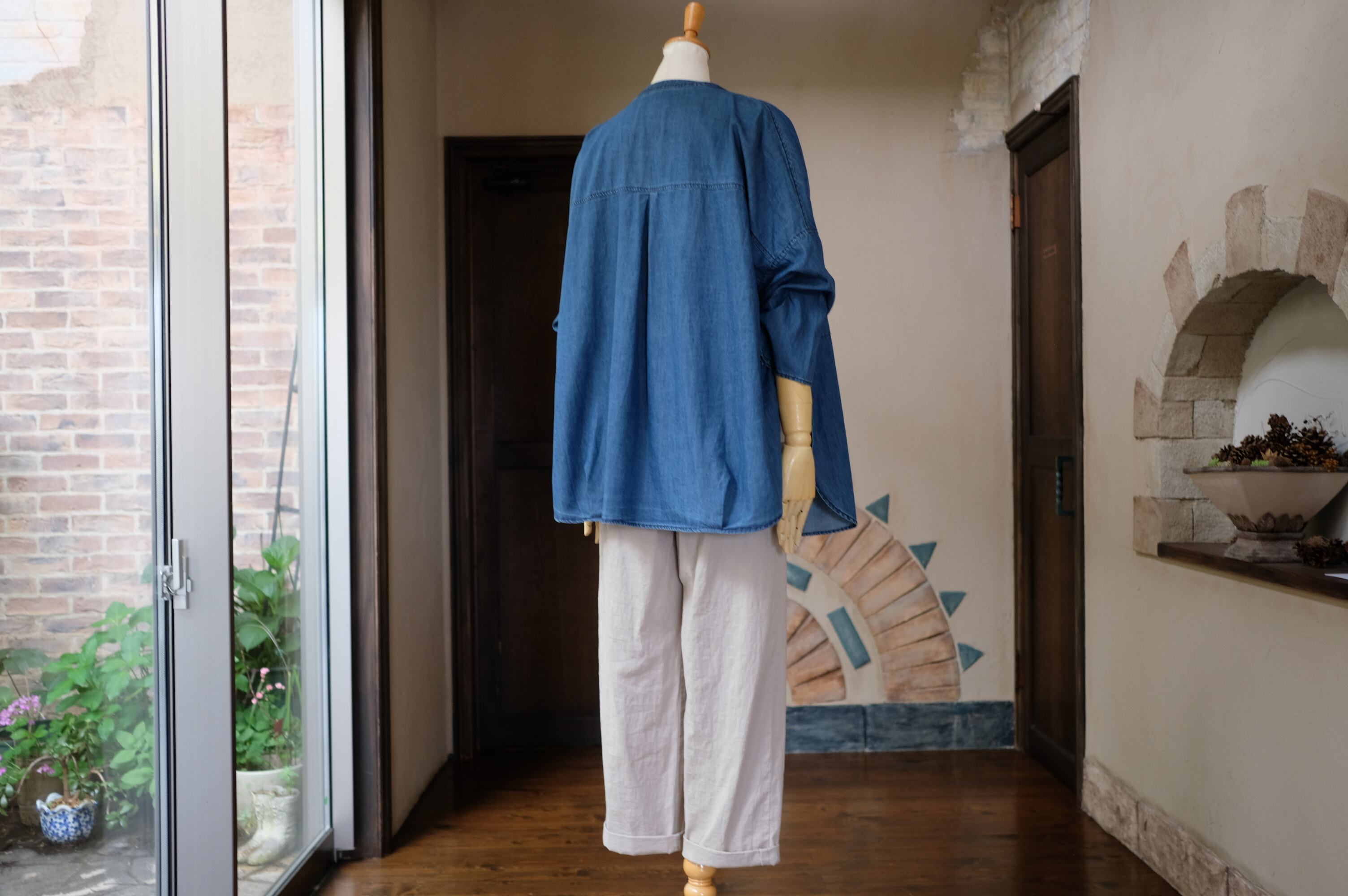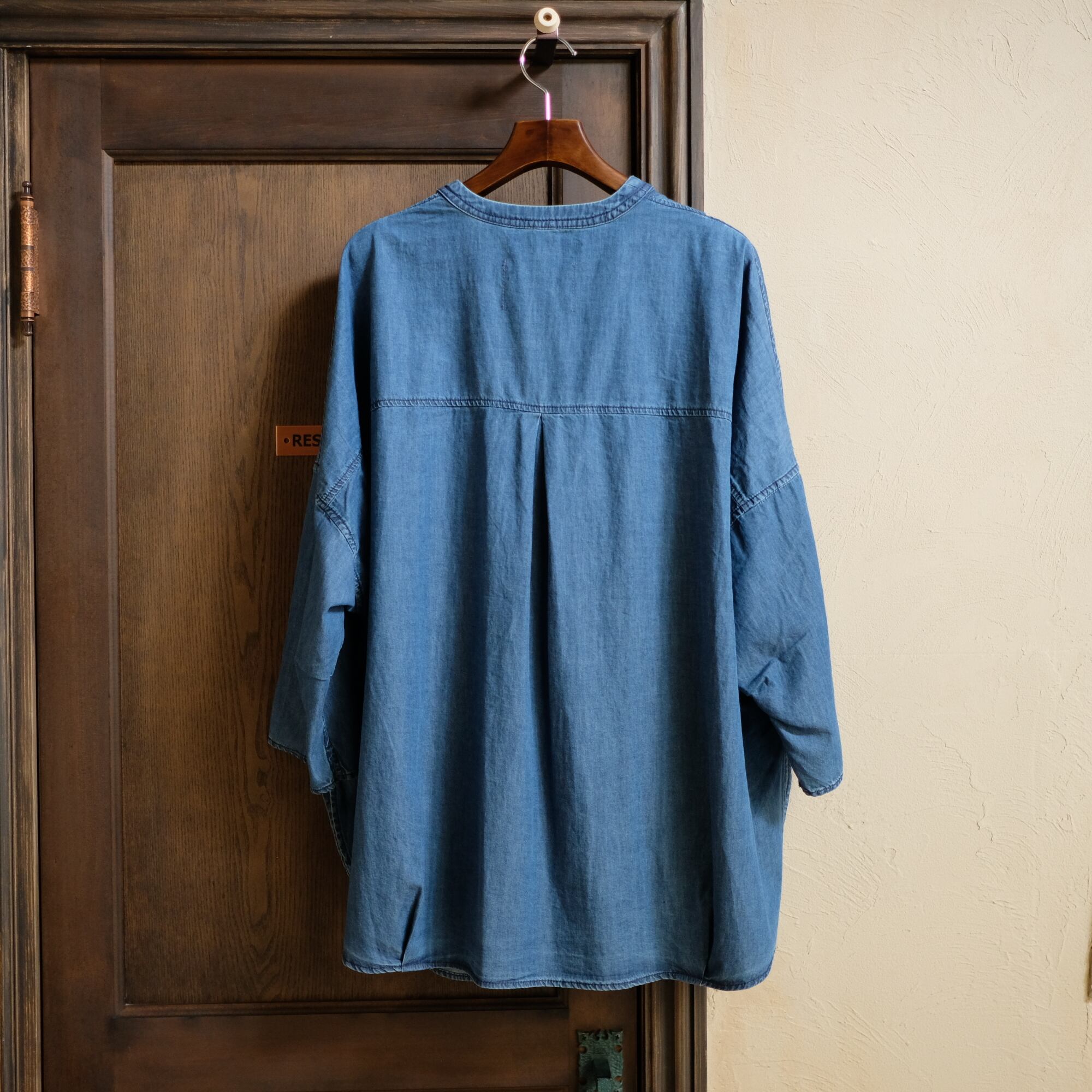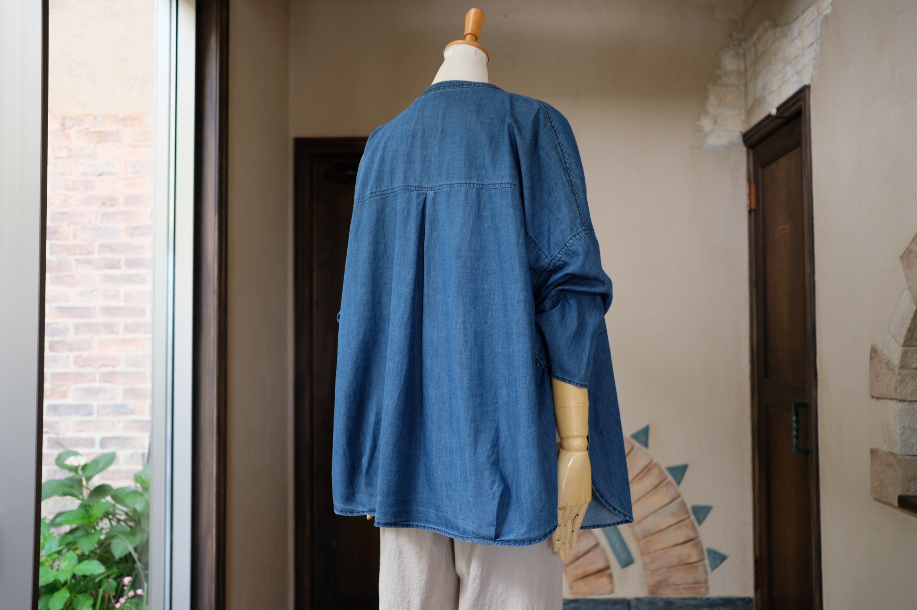 新登場の「【PASSIONE】Vネックオーバーサイズシャツジャケット<ライトデニムブルー>」は、軽やかで心地良いライトデニム素材を使用した絶妙な一枚です!深スリットとタックが生み出す抜け感のあるシルエットは、オシャレでありながらもリラックスした雰囲気を演出します。