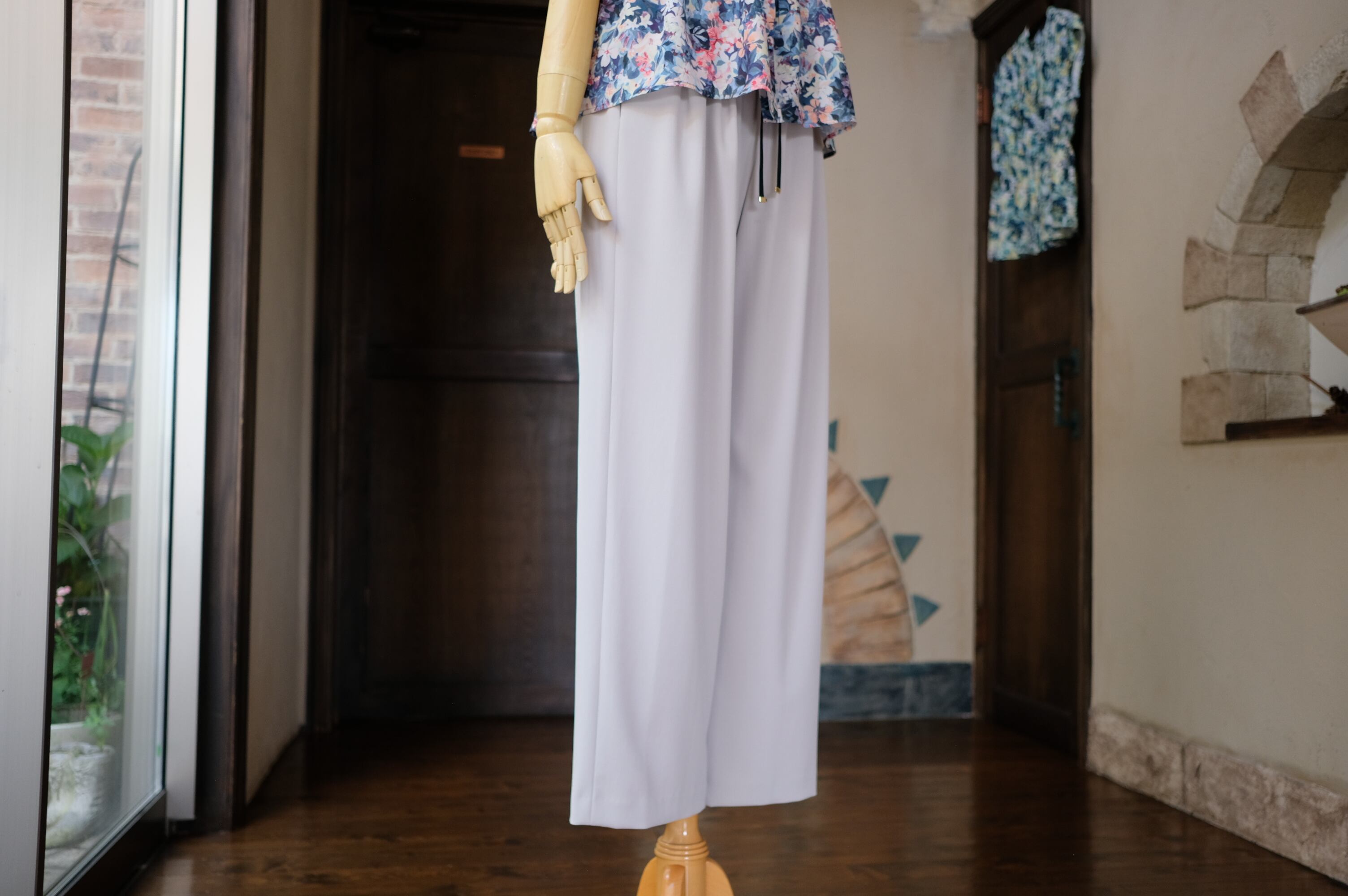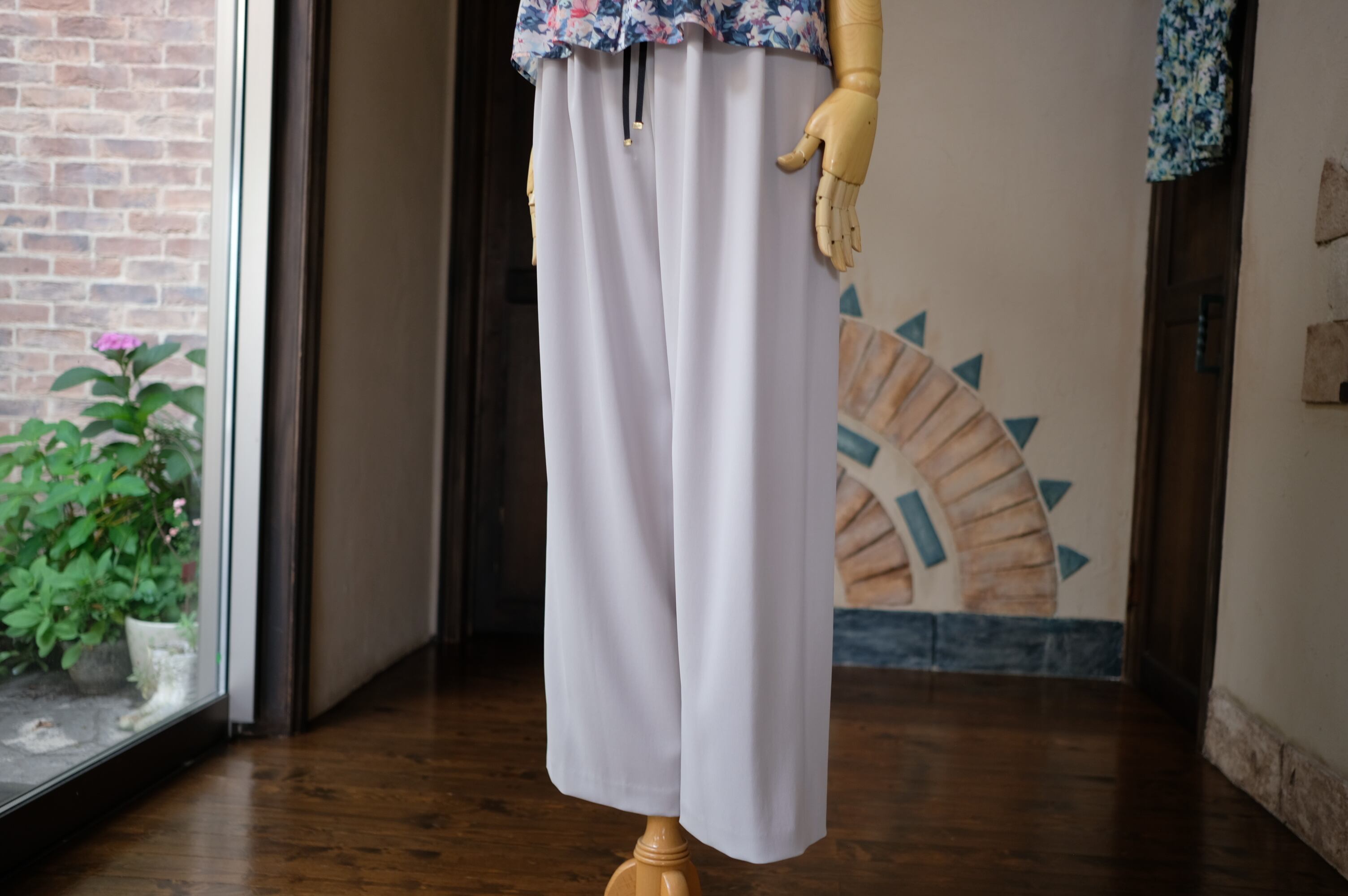 新登場の「【PASSIONE】PASSIONE」は、マットでドレープ感のあるポリエステルストレッチ素材を使用したセミワイドパンツです!ウエストは総ゴム仕様で、イージーな着用感が魅力的です。