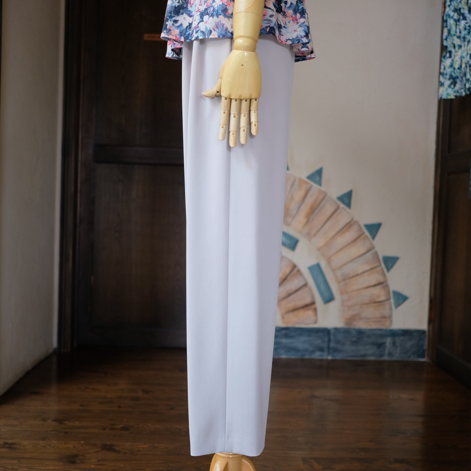 このパンツの特徴は、フロントツータックデザインによる洗練されたシルエットです。カジュアルにもフォーマルにも対応できるスタイリングが可能で、特別なお出かけや日常使いにぴったりです。さらりとした肌触りで動きやすく、長時間着用しても快適な一枚となっています!