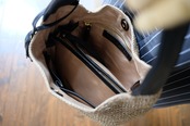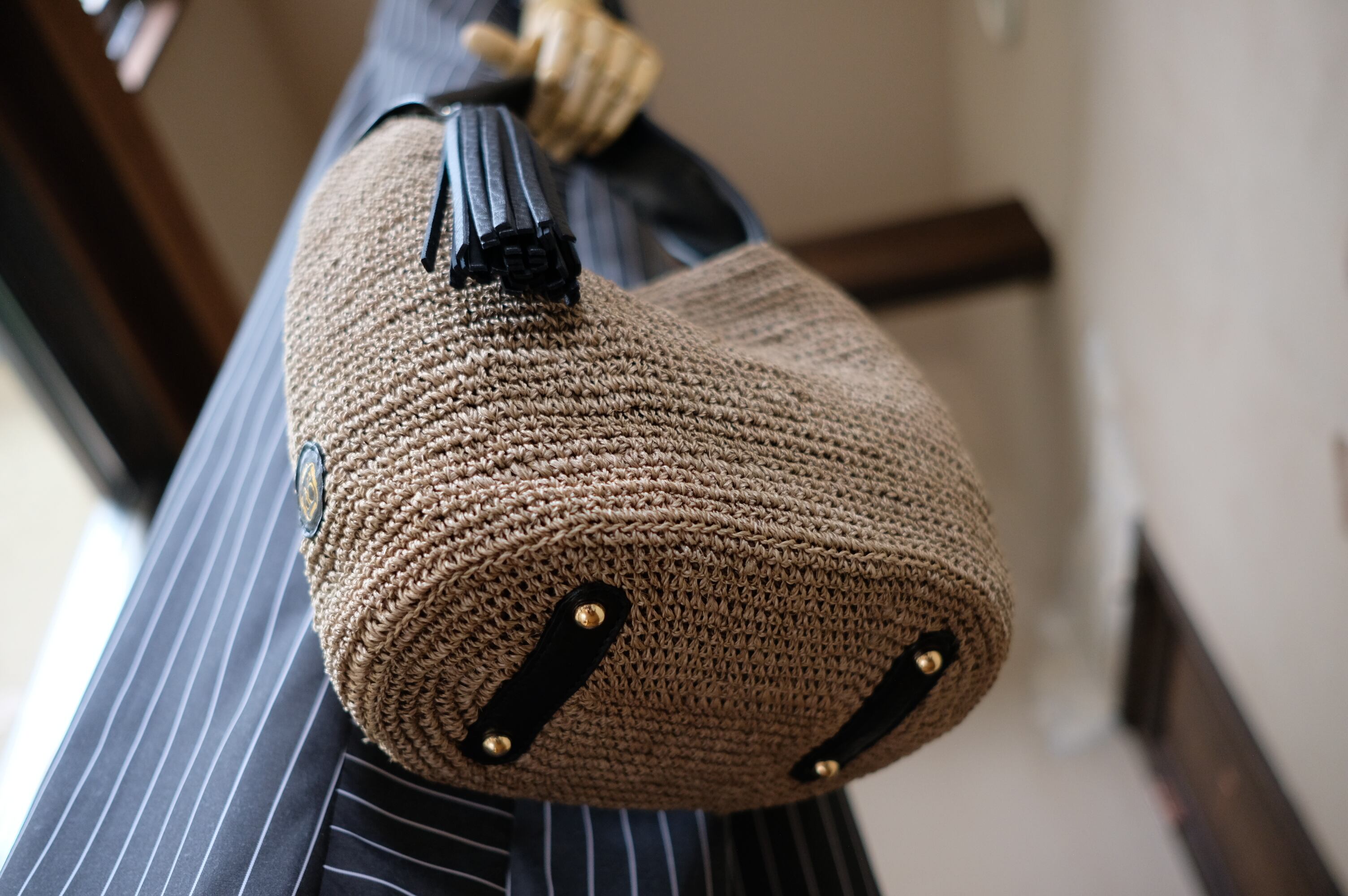 このバッグの特徴は、上質なアバカ素材を使用したしっかりとした作りと、仕切り付きで収納力が抜群な点です。長財布やポーチもすっきり収まり、機能性と美しさを兼ね備えています。特別なお出かけや、日常のちょっとした外出にも、幅広く活躍する一品です!