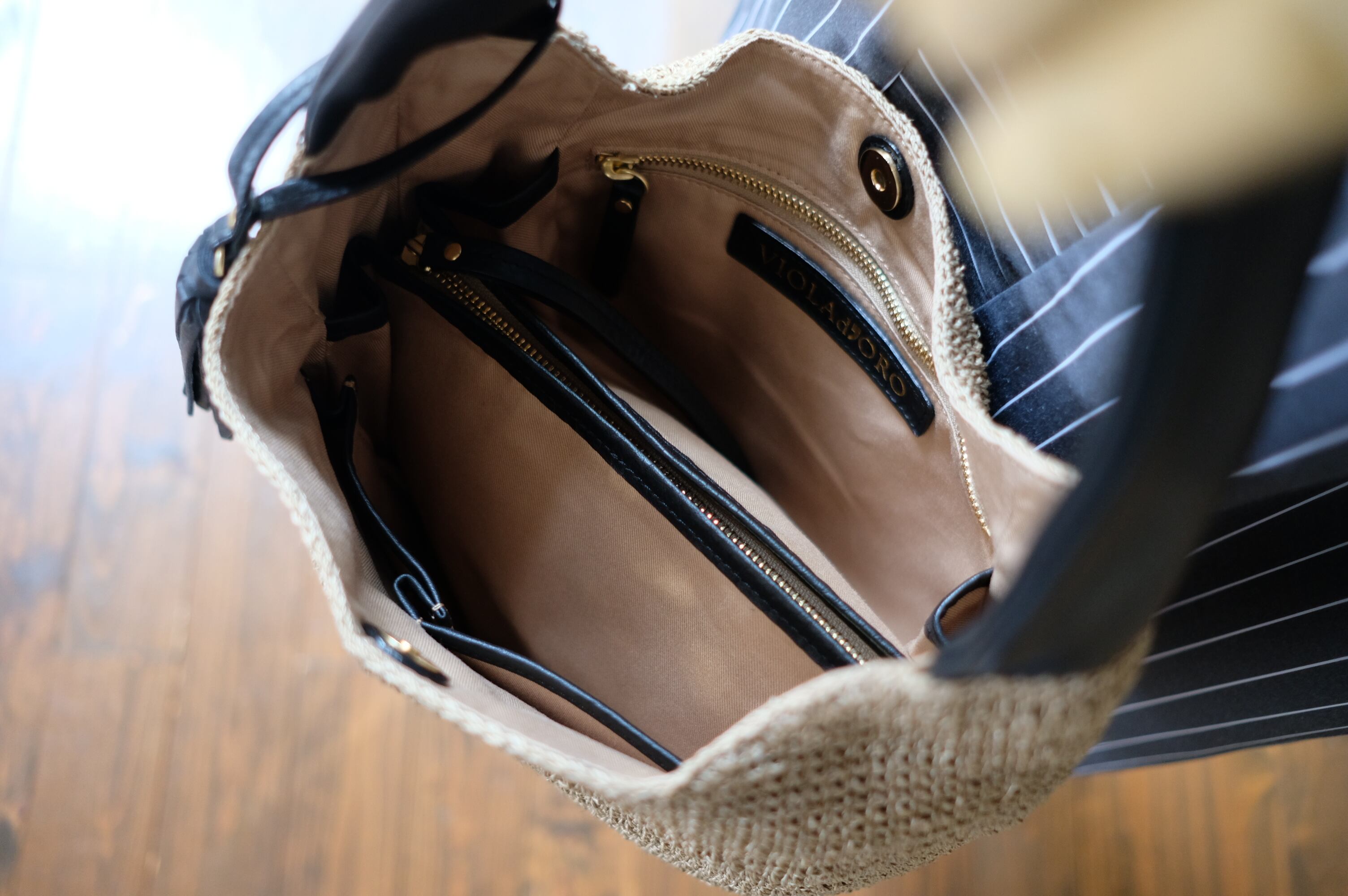 新登場の「【VIOLAd’ORO】レザーハンドルワンショルダーかごバッグ<ウォッシュドブラウン×ブラック>」は、洗練されたウォッシュドブラウンと持ち手ブラックのコンビネーションが特徴のスタイリッシュなかごバッグです!しなやかなレザーの持ち手が、カジュアルスタイルに上品さをプラスします。