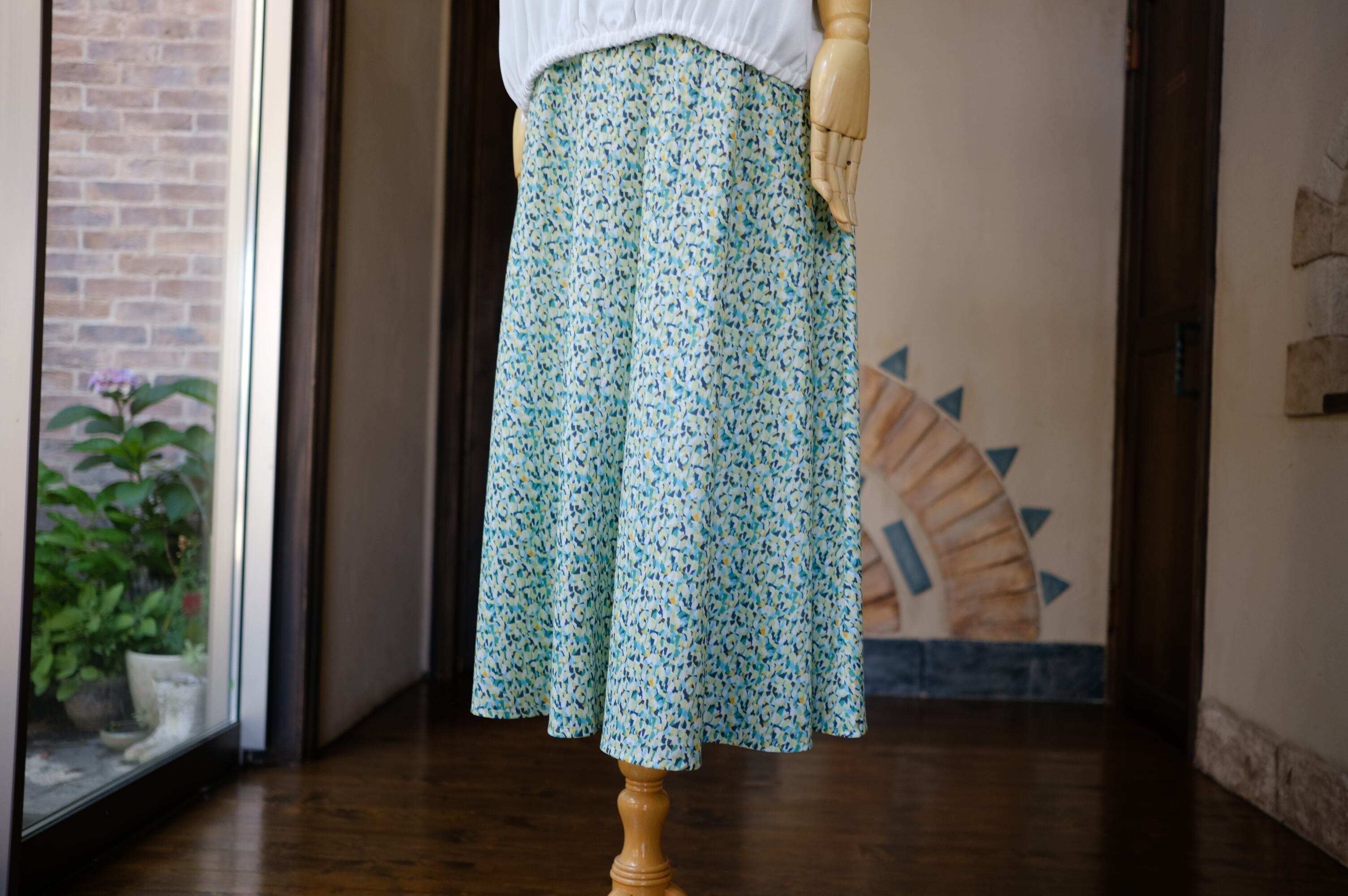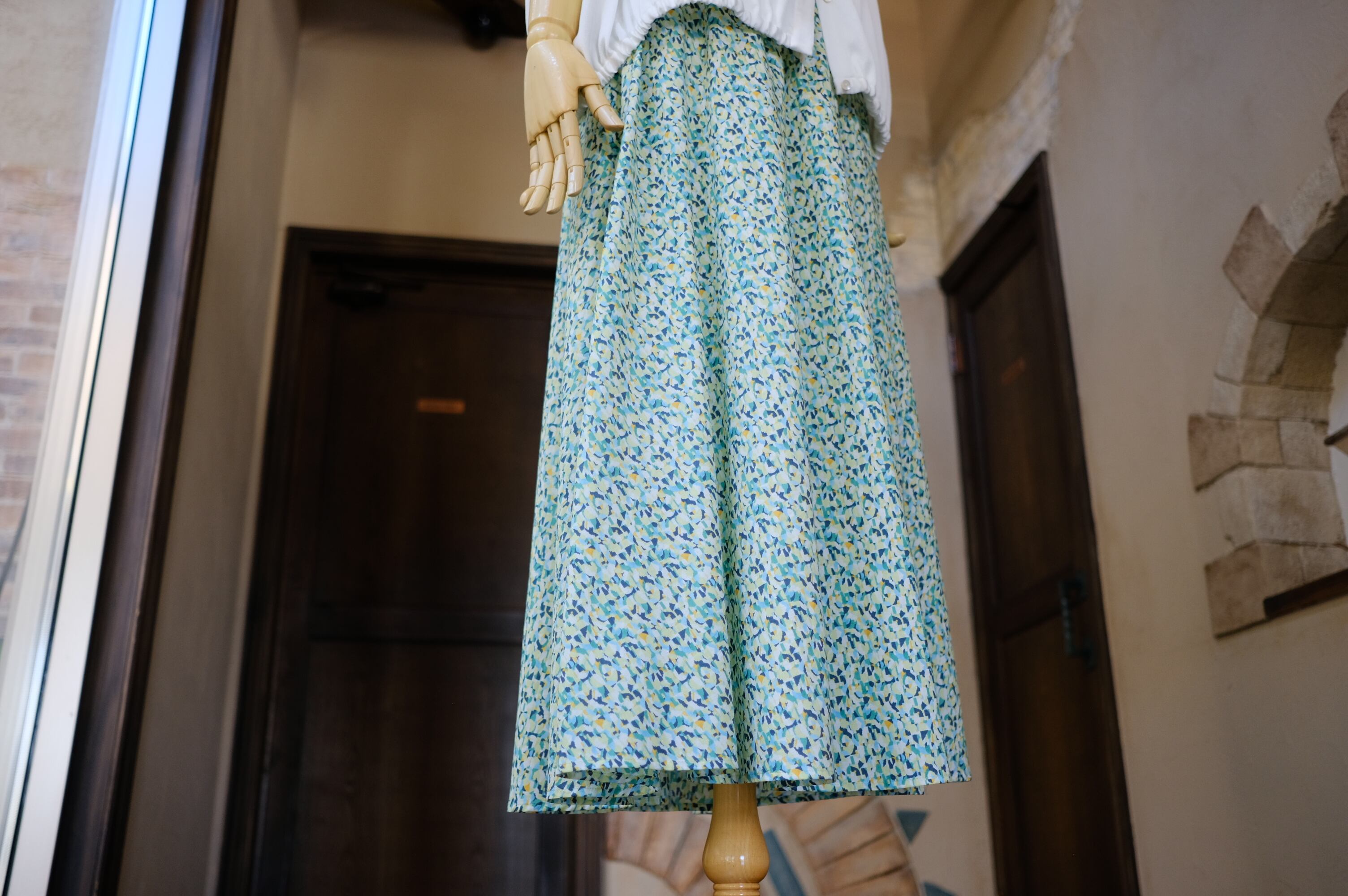 商品名:【MyLanka】コットンローンマルチカラープリントフレアースカート<グリーン系>
