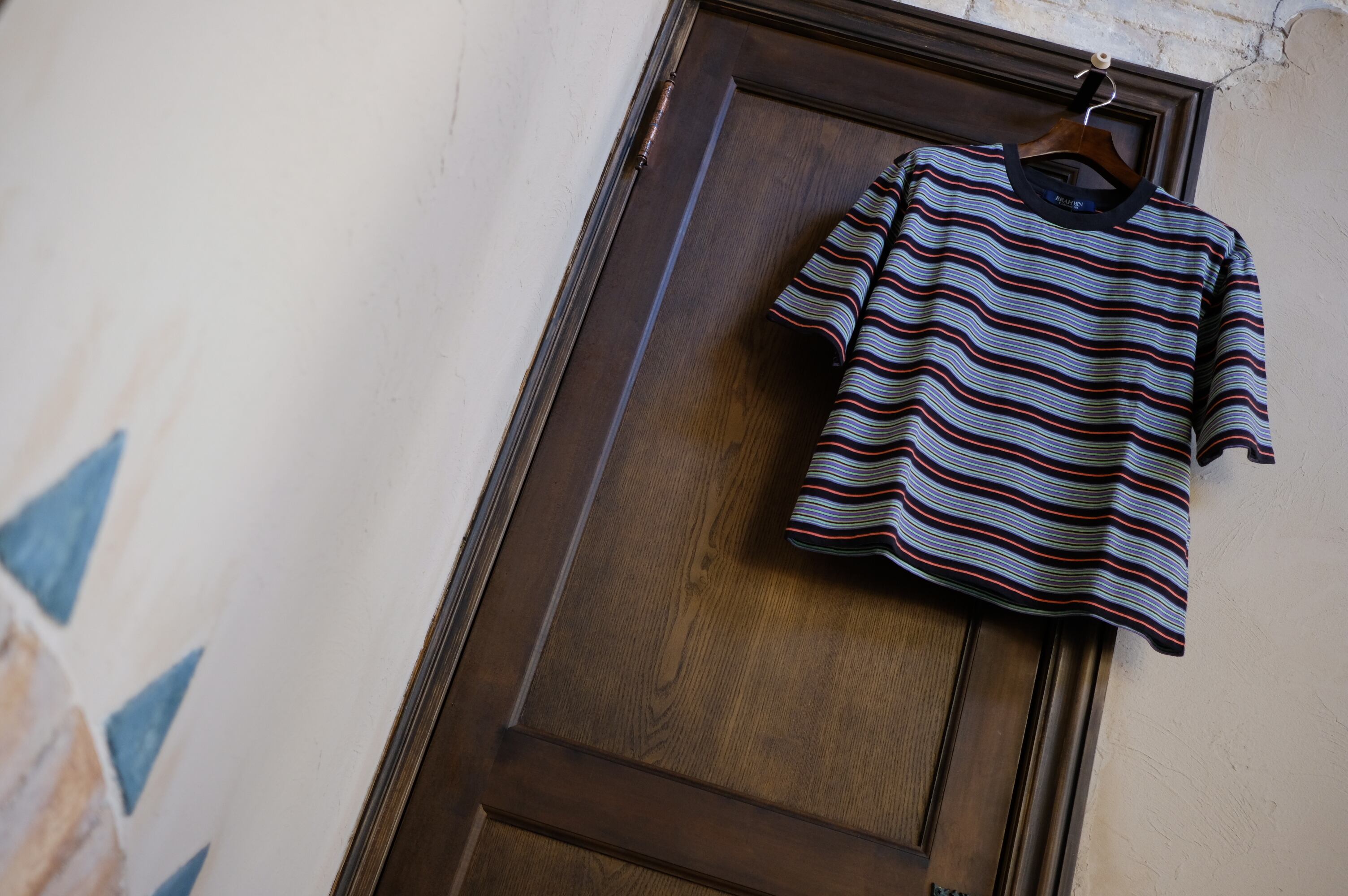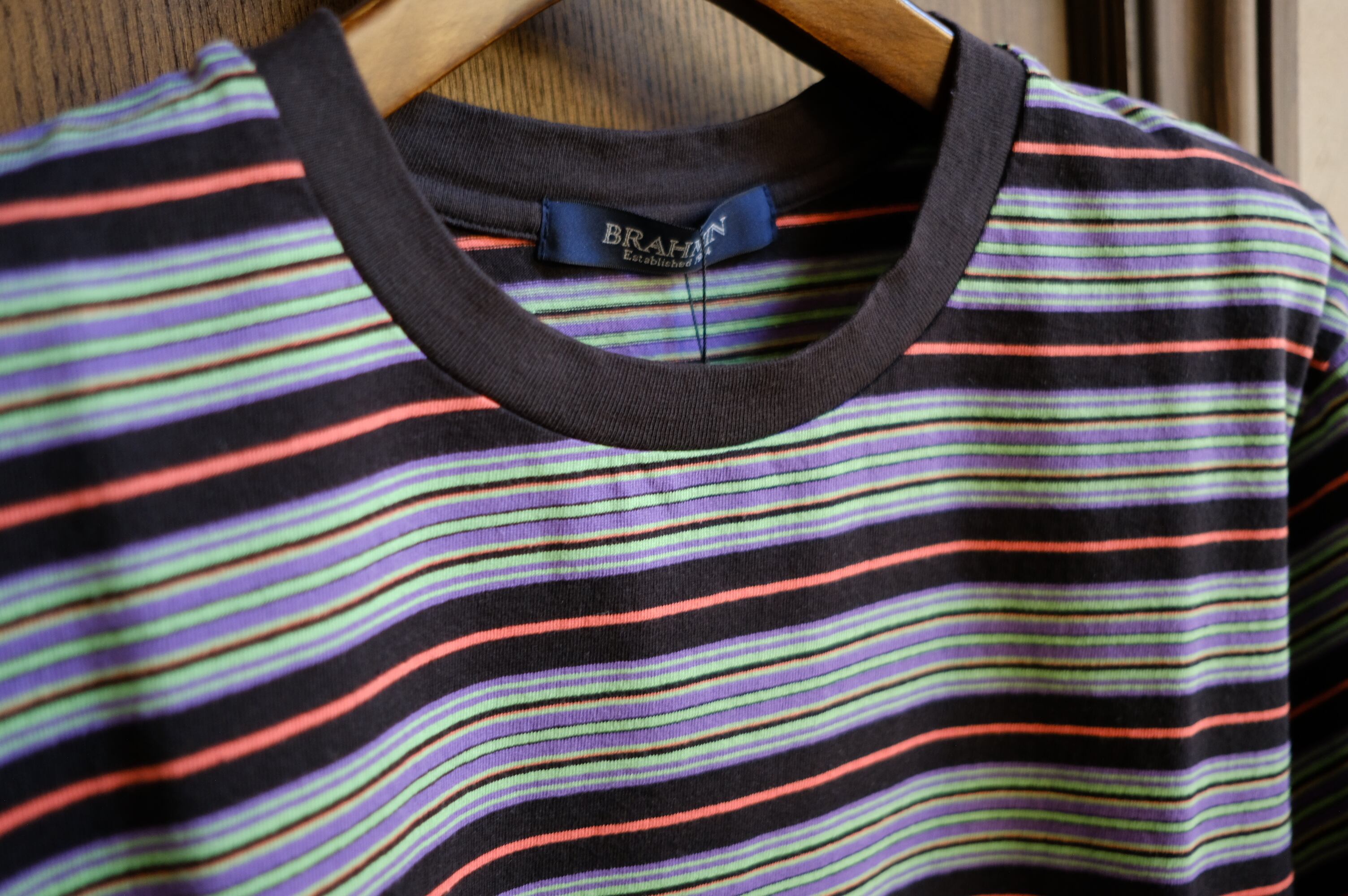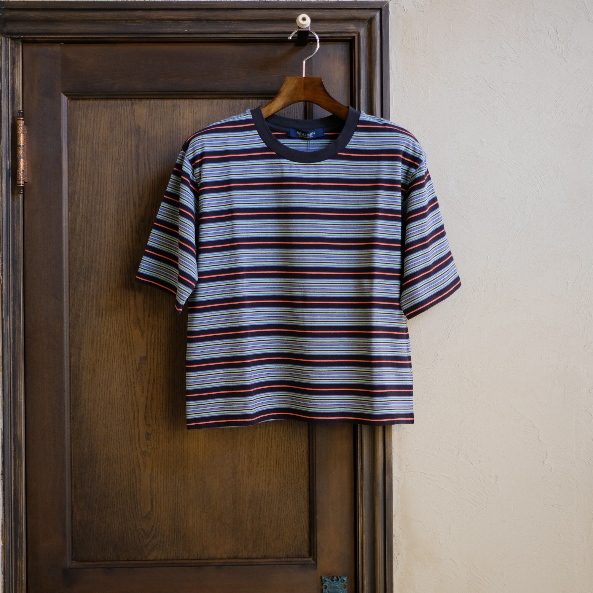 新登場の「【BRAHMIN】ショート丈マルチボーダーTシャツ」は、鮮やかな配色とショート丈が特徴のスタイリッシュなTシャツです!米綿のドライタッチ素材を使用しており、夏の暑さの中でも快適に過ごすことができます。
