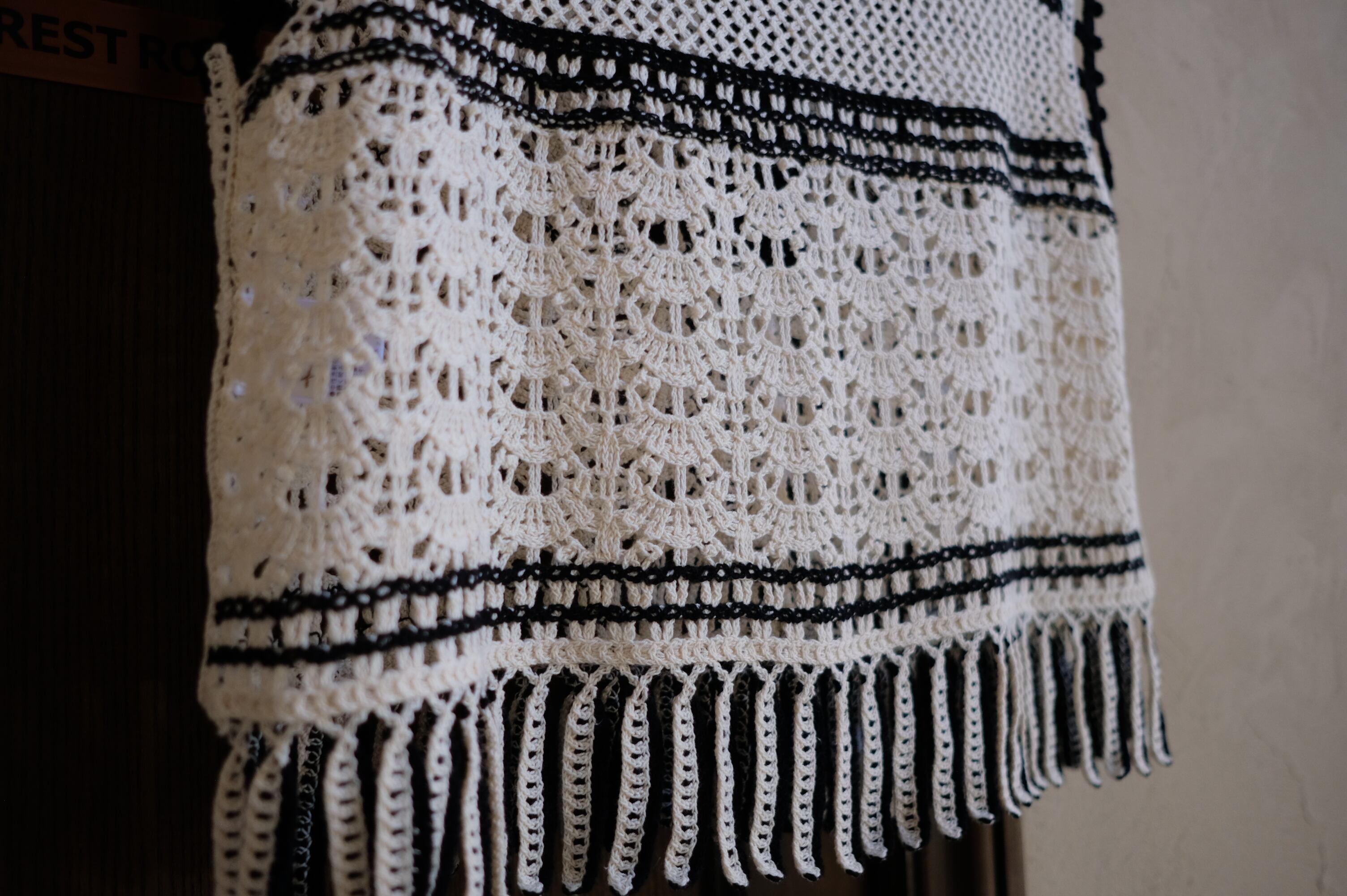 【cafune】かぎ針編みコットンレーススリーブレスプルオーバー<アイボリー×ブラック>