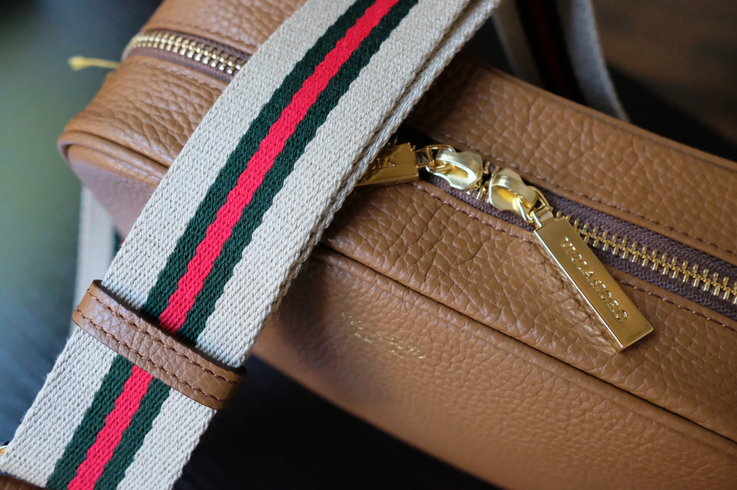 このカメラバッグの特徴は、Dカン付きのショルダーがアクセントとして機能し、実用性とファッション性を兼ね備えた仕上がりです。また、長財布も収まる実用的なサイズ感が、使い勝手の良さを提供します。グレーの上品な色合いは、手持ちのアイテムともコーディネートしやすく、スタイルを引き立ててくれます。