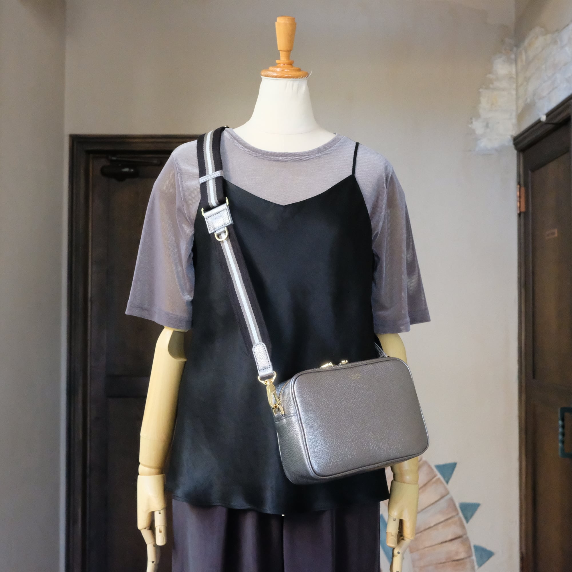 このプルオーバーの特徴は、ハーフスリーブのデザインが軽やかで、イン、アウトどちらでも重ね着を楽しむことができます。また、合わせやすいグレーとチャコールの2色展開が魅力的で、どちらのカラーもシックな雰囲気を演出します。カジュアルなお出かけにも、少しフォーマルなシーンにも対応可能な万能アイテムです。