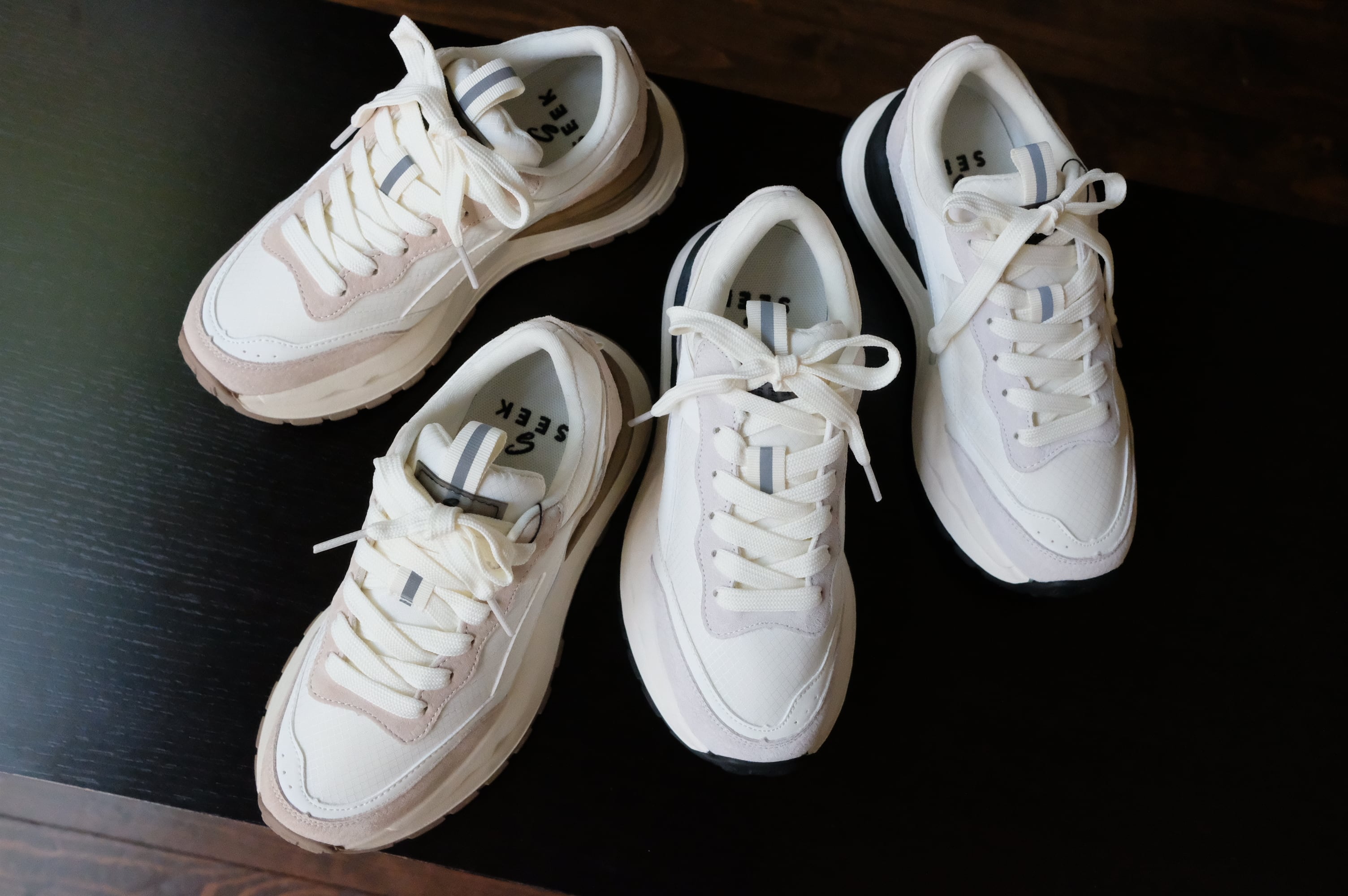 新登場の「【SEEK】フェイクスエードコンビ凸凹ソールスニーカー<Type①>」は、フェイクスエードを取り入れた洗練されたデザインのスニーカーです!革新的な凹凸ソールが特徴で、スタイリッシュさと快適さを両立させています。