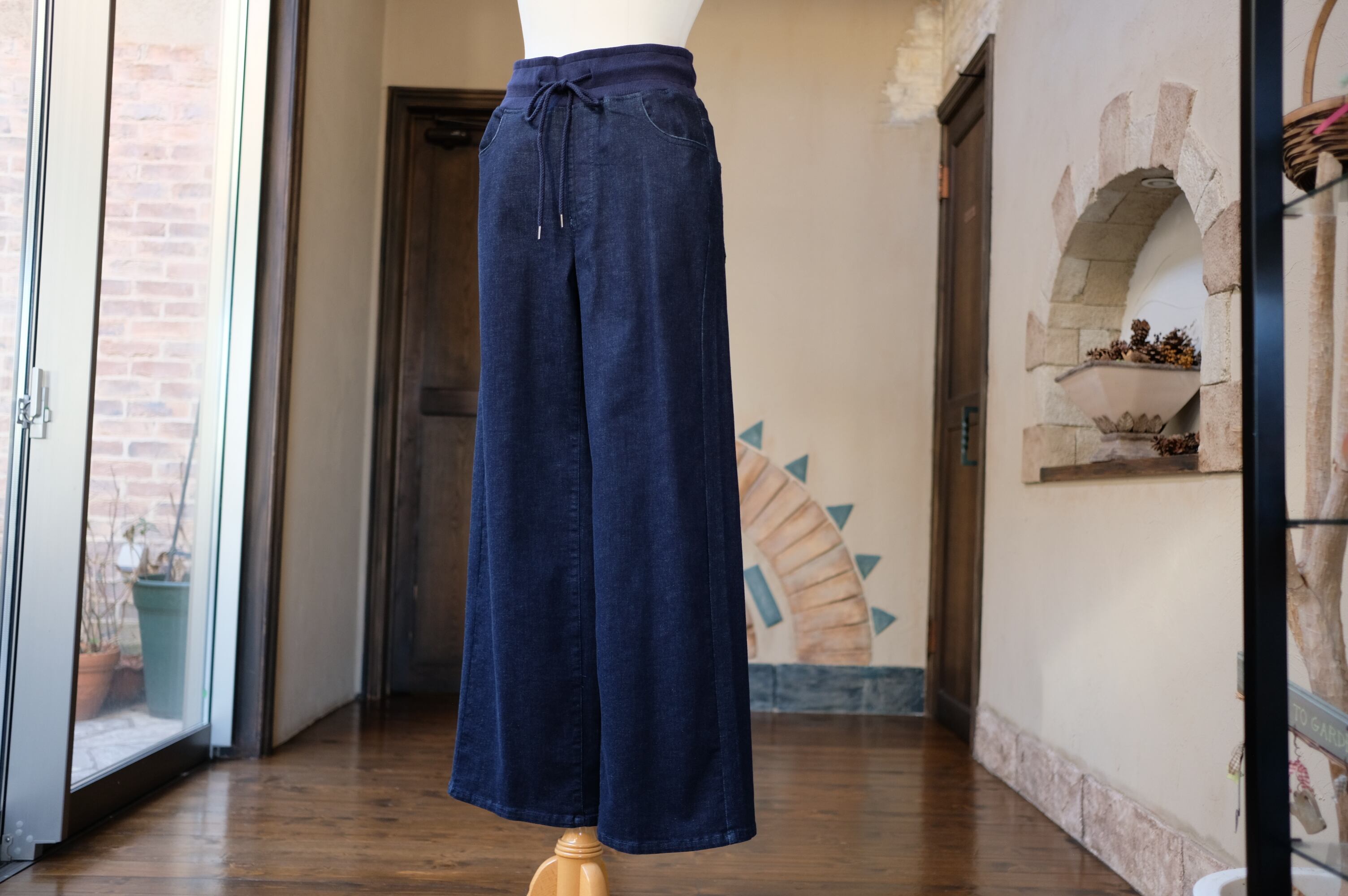 この秋も人気の継続販売商品!「PASSIONE ウエストリブストレートシルエットストレッチデニム」は、幅広いスタイルにマッチする万能なデニムです!コットンポリエステルポリウレタンを使用し、ストレッチ性が高く、柔らかな肌触りが特長です。ウエストリブ仕様のゴム入りシルエットは、優れた穿き心地を提供し、スッキリとしたストレートラインが美しい印象を演出します。