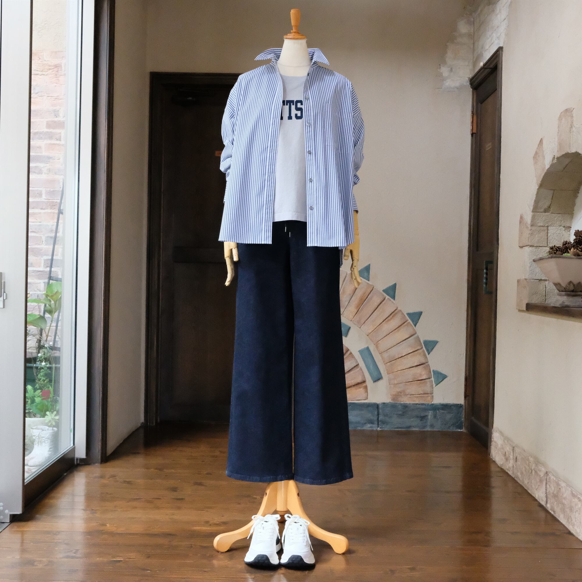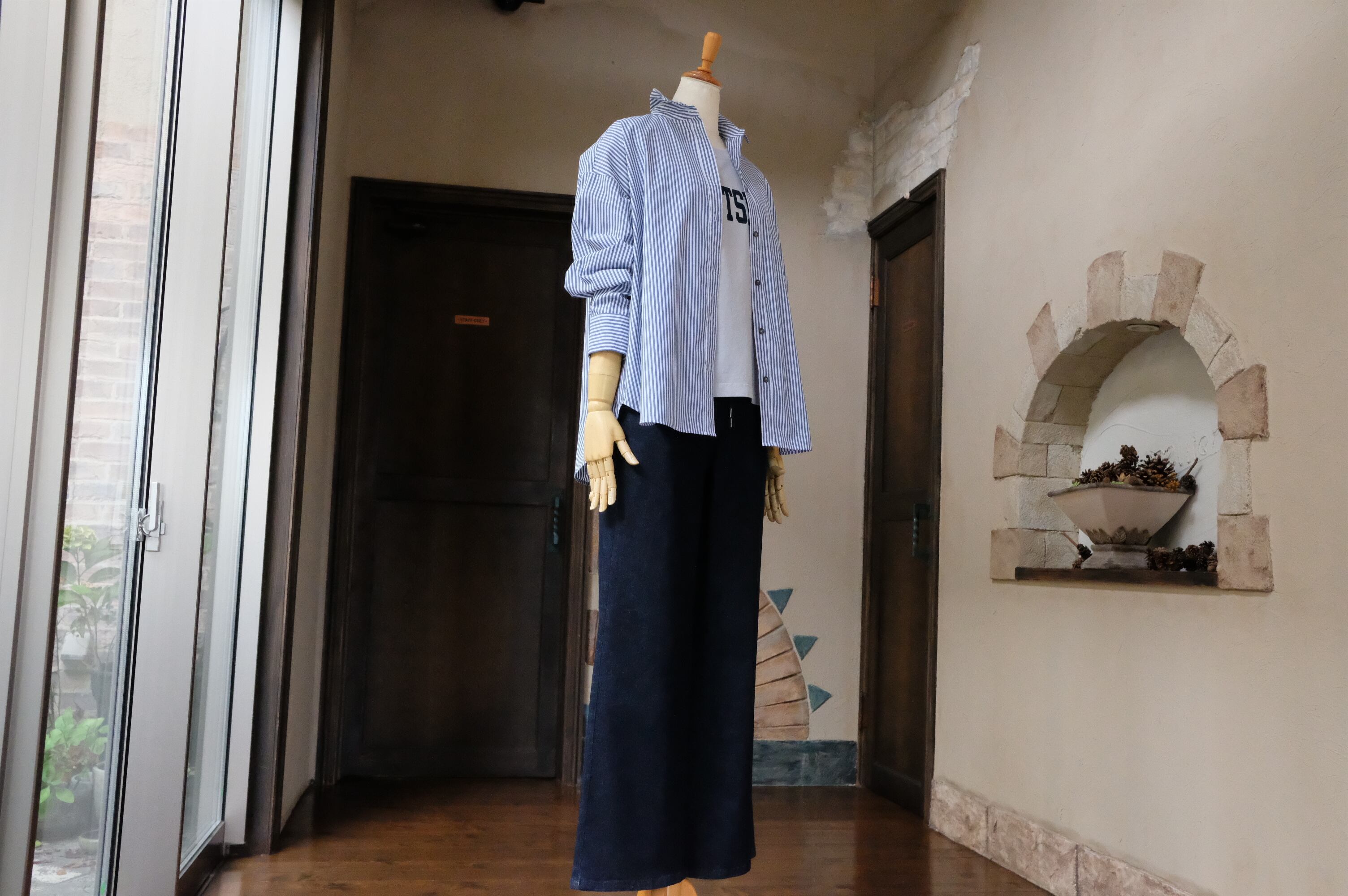 新登場の「【MyLanka】バックラインテープデザイン ストライプシャツ<ネイビー×ホワイト>」は、後ろ姿に差がつくラインテープ付きヨークデザインが魅力のシャツです!機能性ストライプ素材を使用しているため、軽やかな着心地で秋の装いに抜け感をプラスします。