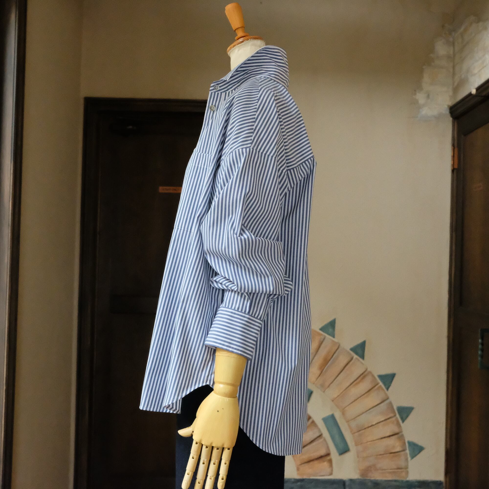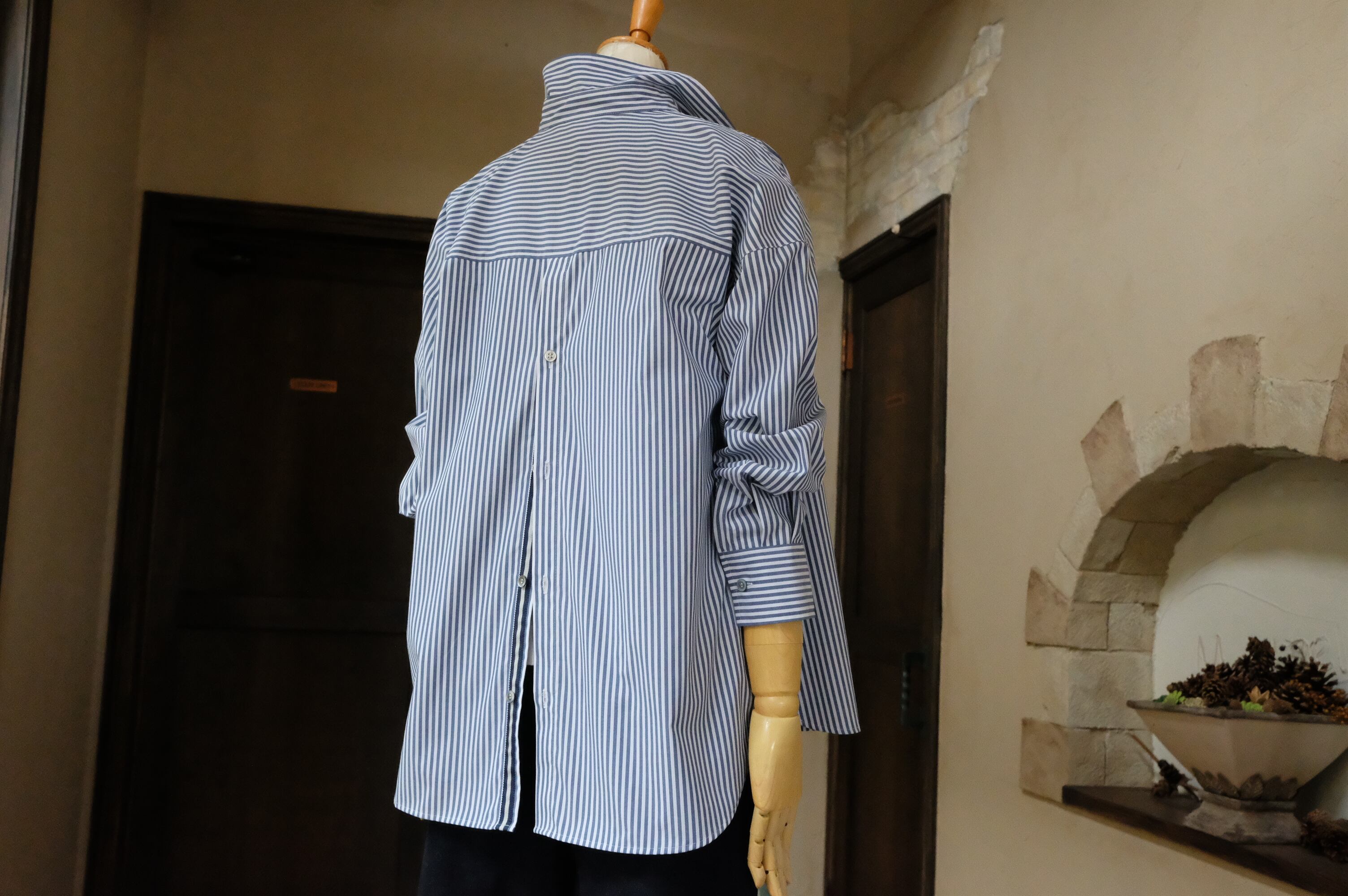 【MyLanka】バックラインテープデザイン ストライプシャツ<ネイビー×ホワイト>
