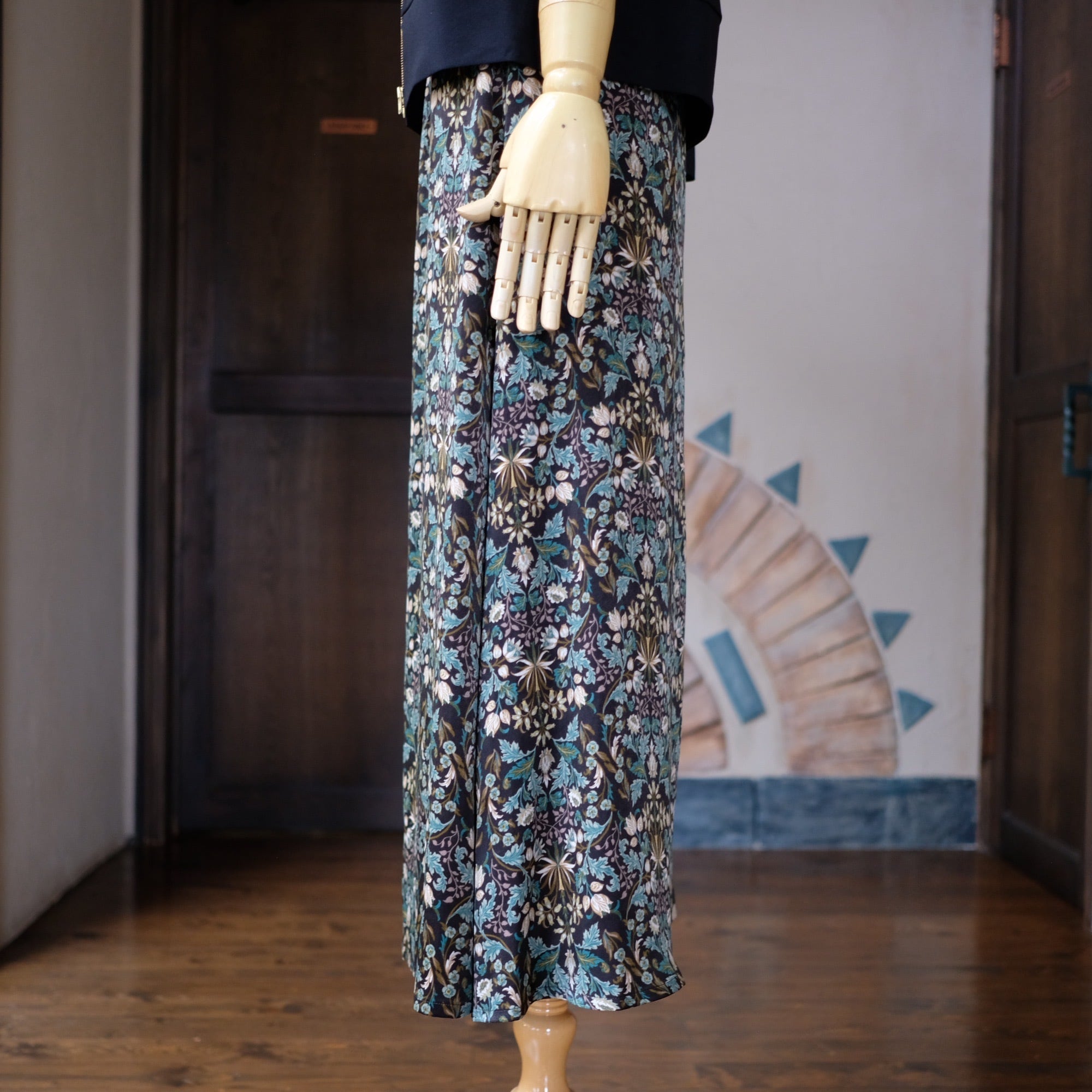 【MyLanka】マイクロサテンボタニカルプリント Aラインフレアースカート<ブラックベース>