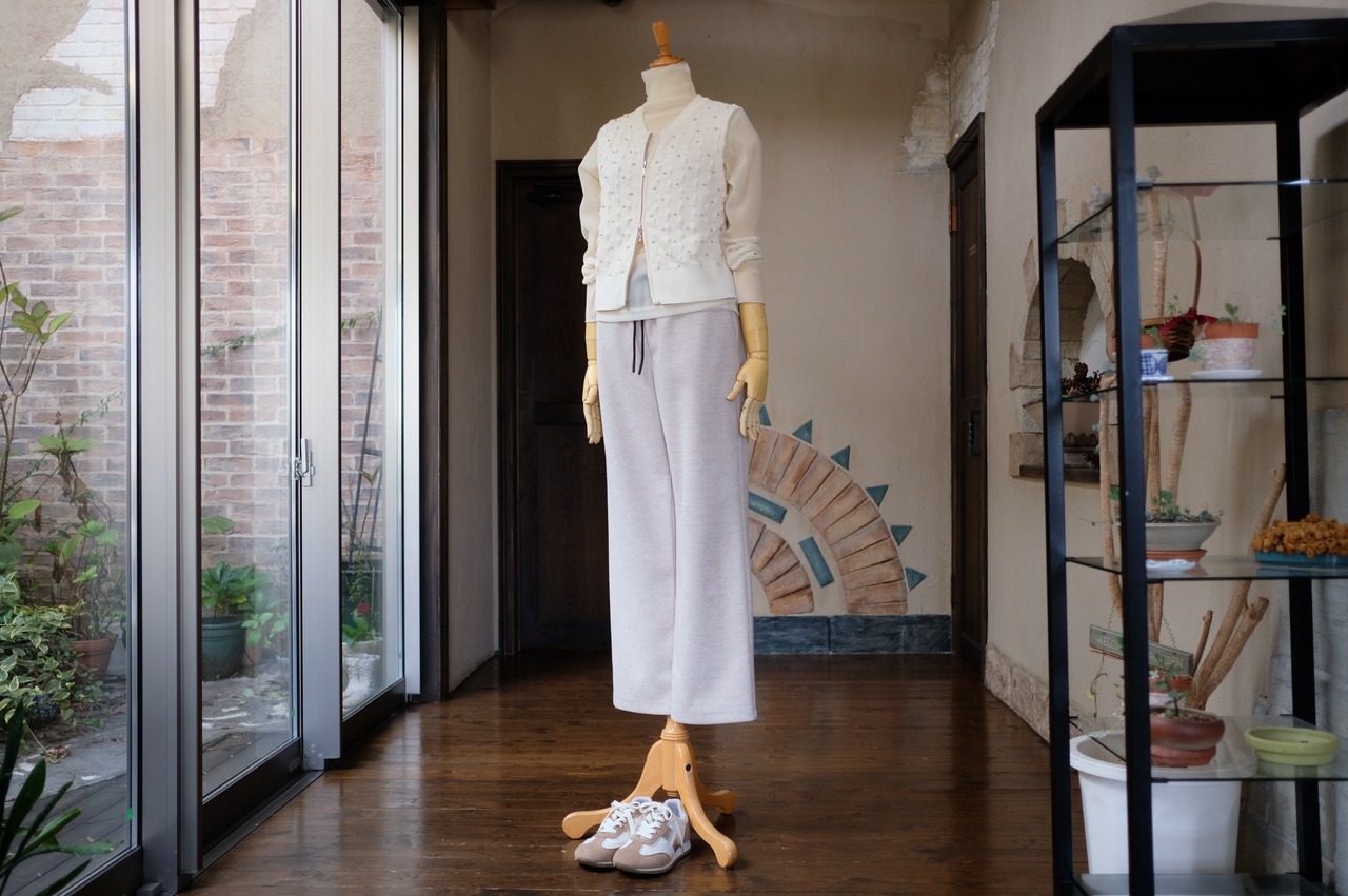 このイージィパンツは、ストレッチ性とウエストリブ仕様により、快適な穿き心地を実現しています。デイリーカジュアルからちょっとしたお出かけまで、幅広いシーンで活躍するアイテムです。シンプルなトップスと合わせれば、シックなスタイルが楽しめます。このパンツをワードローブに加えることで、快適かつスタイリッシュな秋冬コーディネートをお楽しみください!
