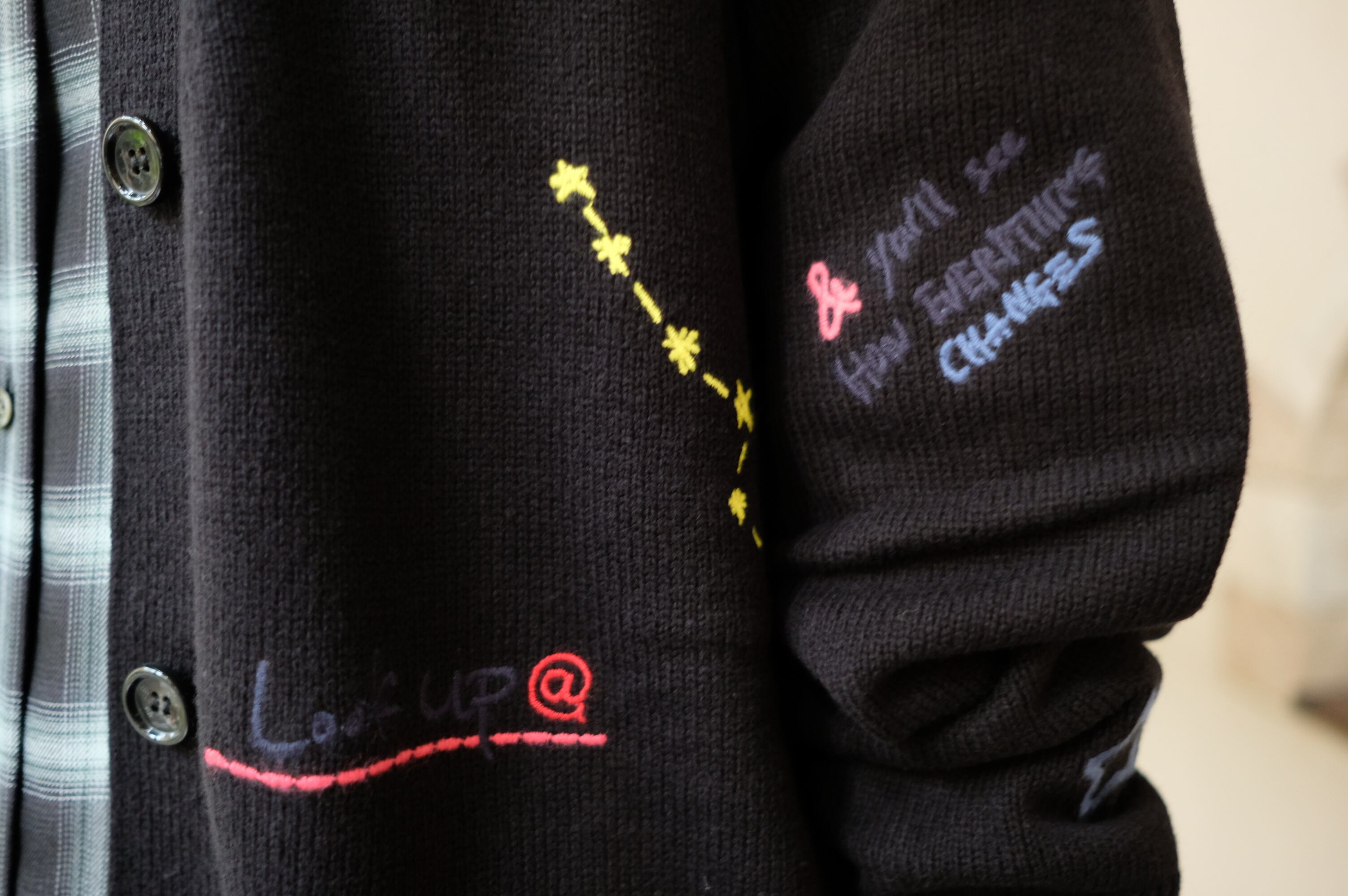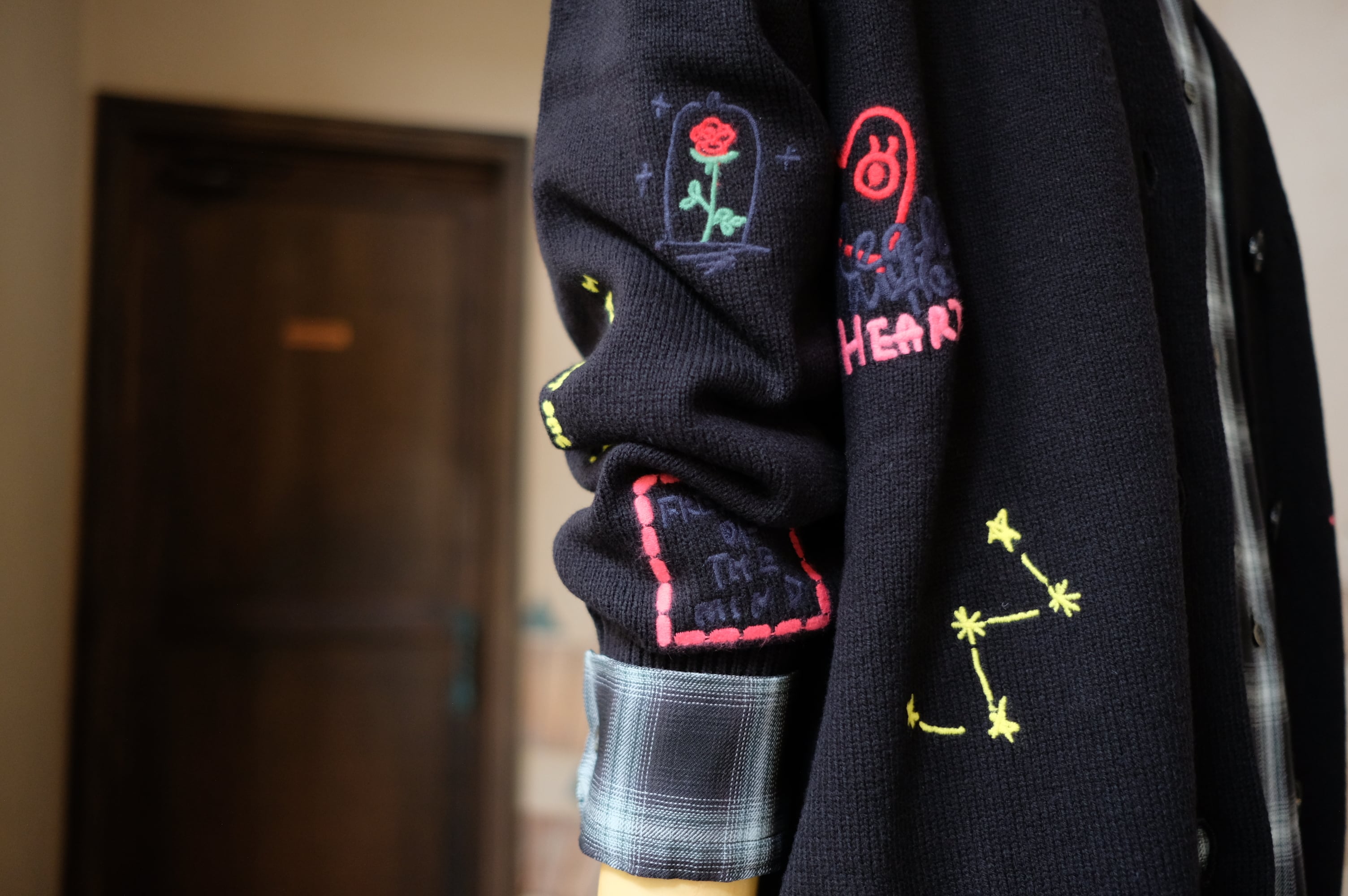 商品名:【BRAHMIN】『星の王さま』キャラクターやメッセージ刺繍Vネックロングカーディガン<ブラック>