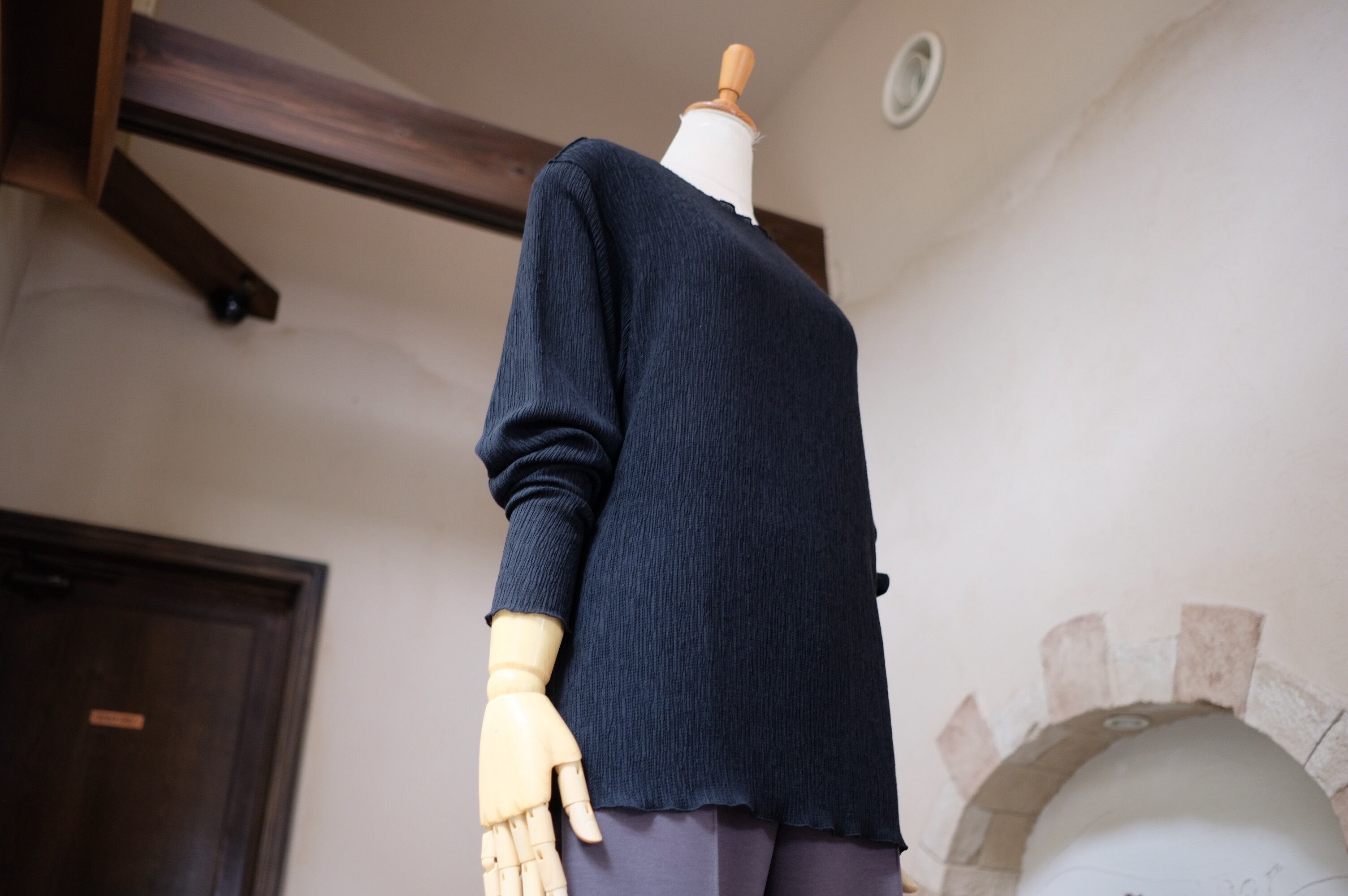 このカットソーは、軽やかな素材感と洗練されたデザインが魅力で、カジュアルなデニムやスカートから、キレイめパンツまで幅広いスタイルに多彩にコーディネートできます。オフィスから普段使いまで、様々なシーンで活躍するアイテムです。このカットソーをワードローブに加えて、秋冬のスタイルを楽しんでください!