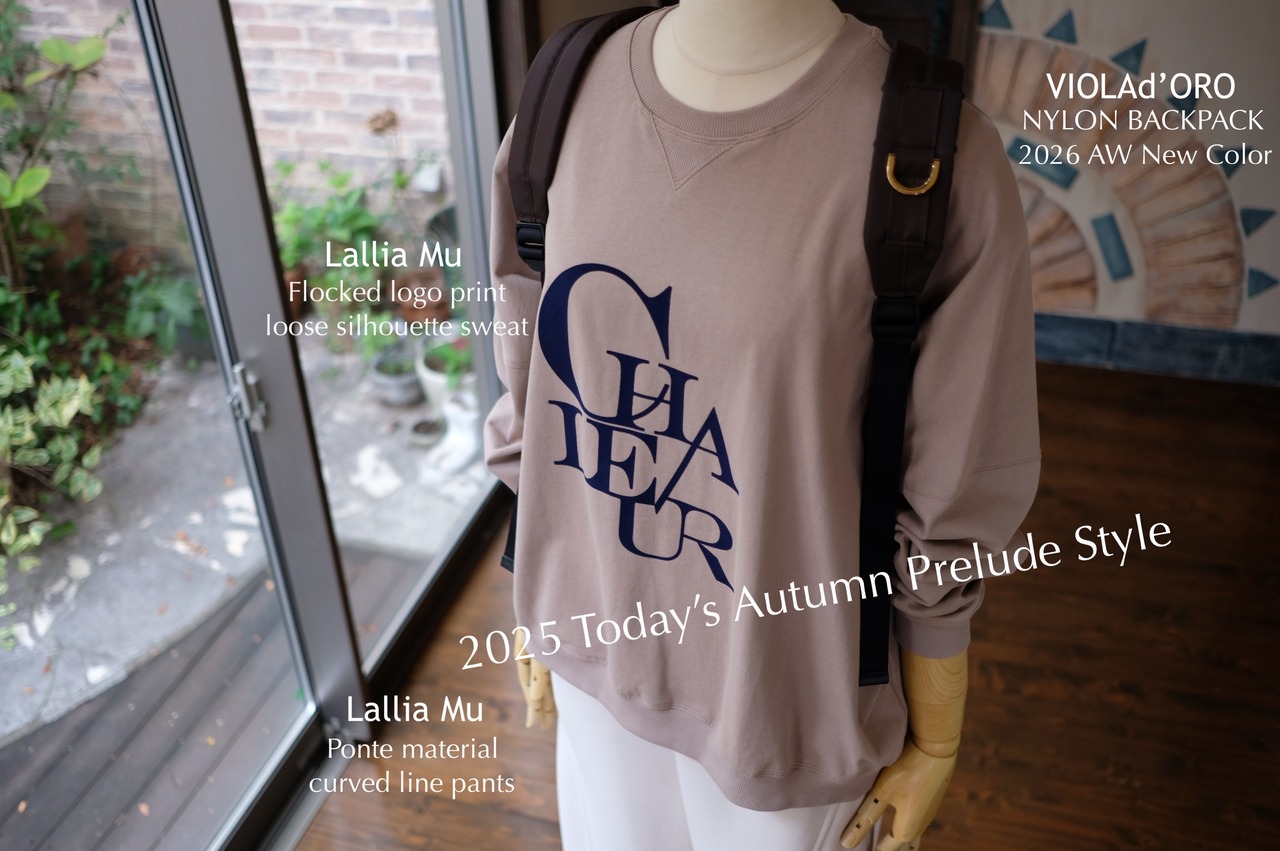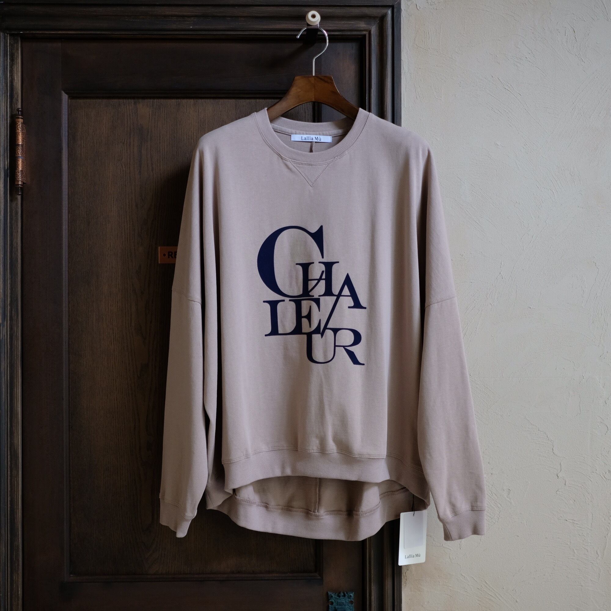 【Lallia Mu】フロッキーロゴプリントルーズシルエットトレーナー