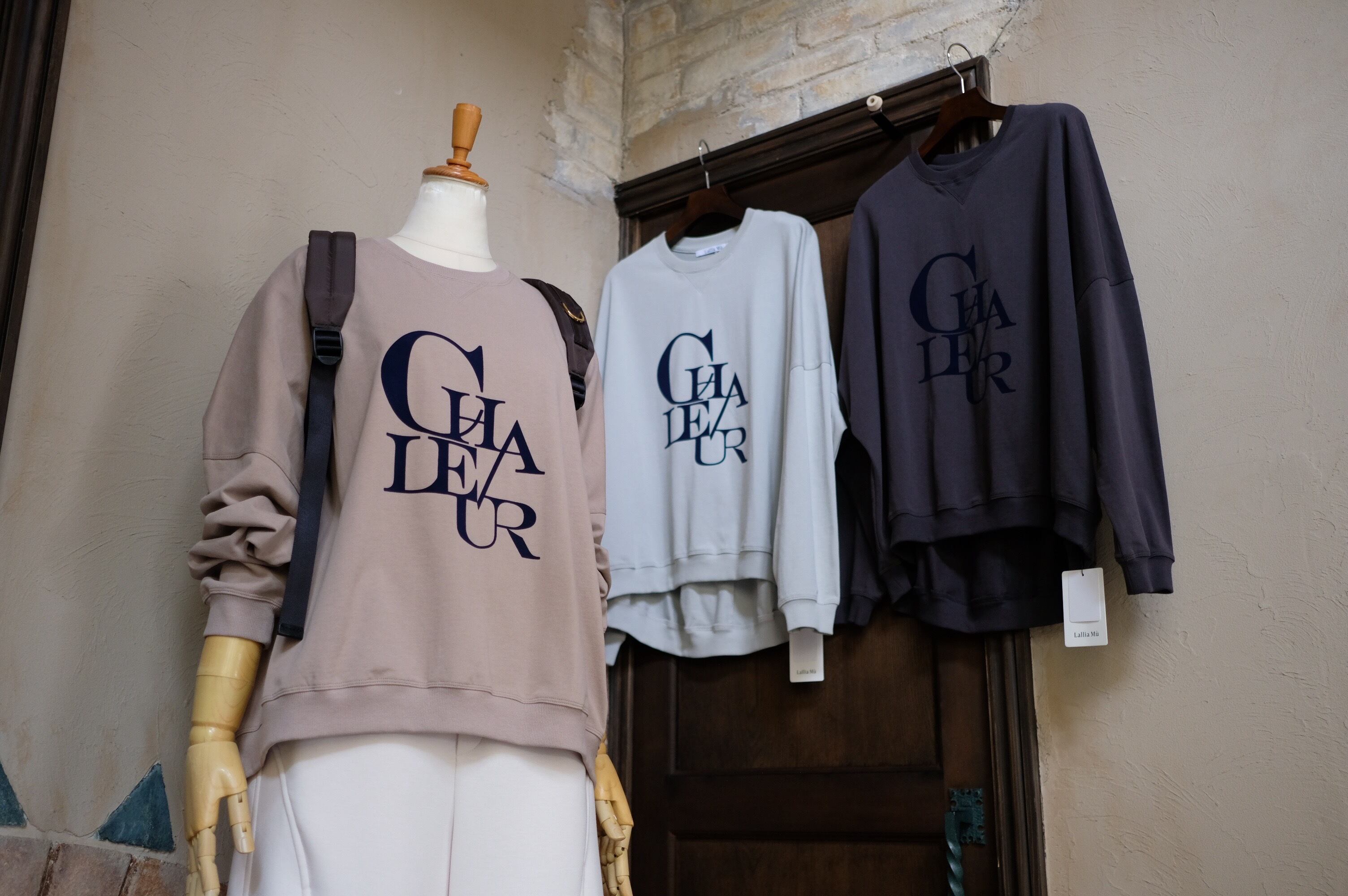 このトレーナーには、仏語のロゴ“chaleur=情熱”があしらわれており、シンプルながらも存在感を放ちます。インに暖かタートルカットソー合わせで秋が深まりまで活躍◎ カジュアルなコーディネートはもちろん、ちょっとしたお出かけにもぴったりな一枚です。このトレーナーをクローゼットに加えて、秋冬のおしゃれを楽しんでください!