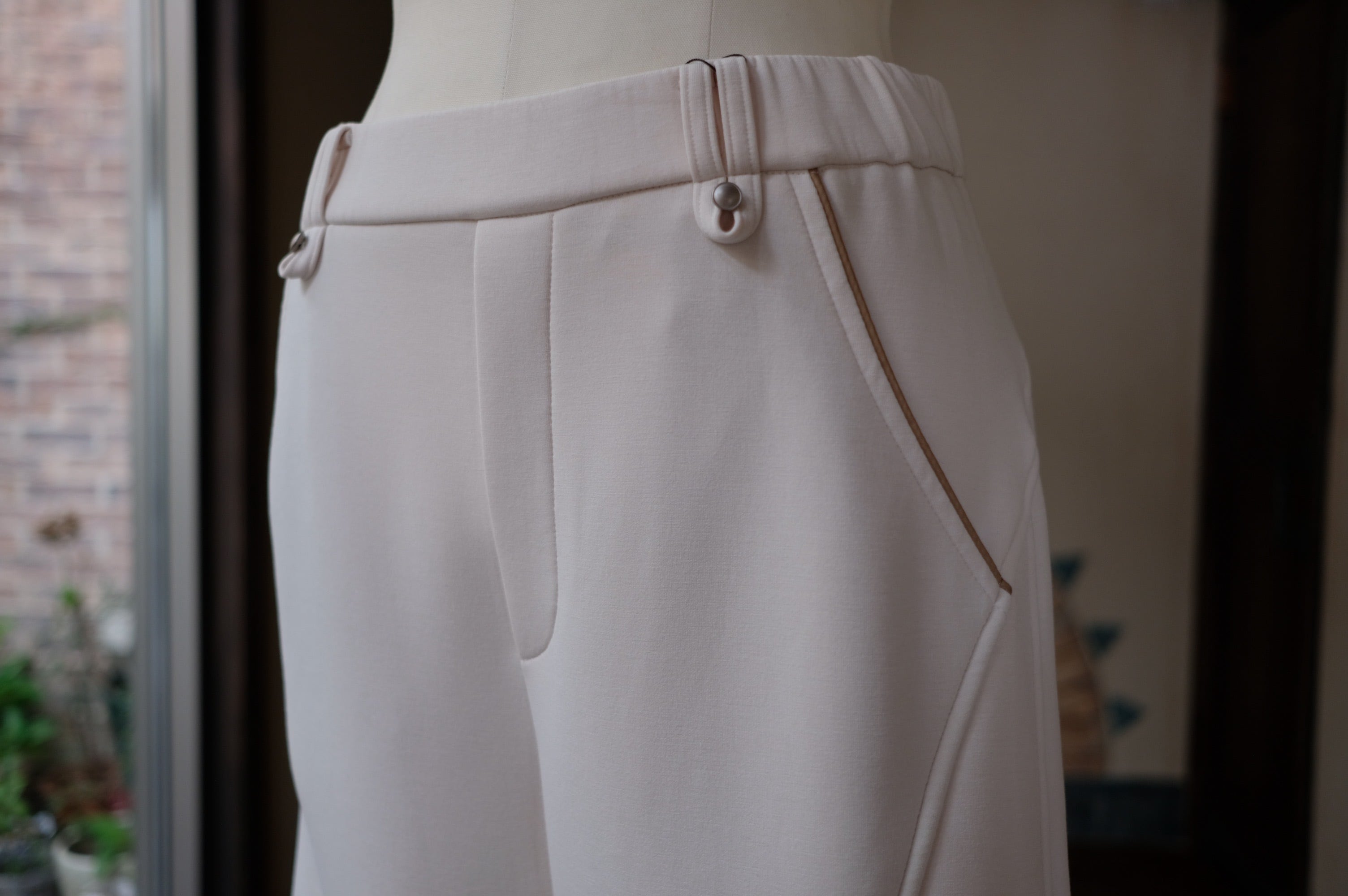 商品名:【Lallia Mu】ポンチ素材カーブラインパンツ<アイボリー>