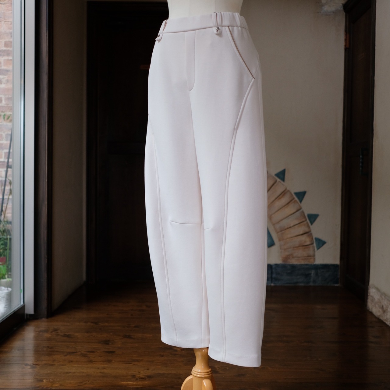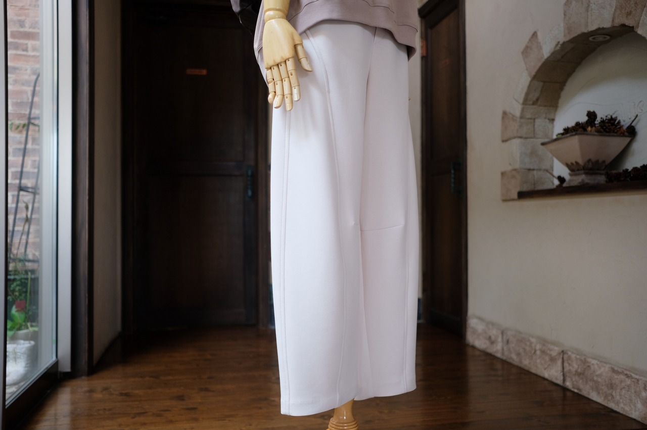 【Lallia Mu】ポンチ素材カーブラインパンツ<アイボリー>