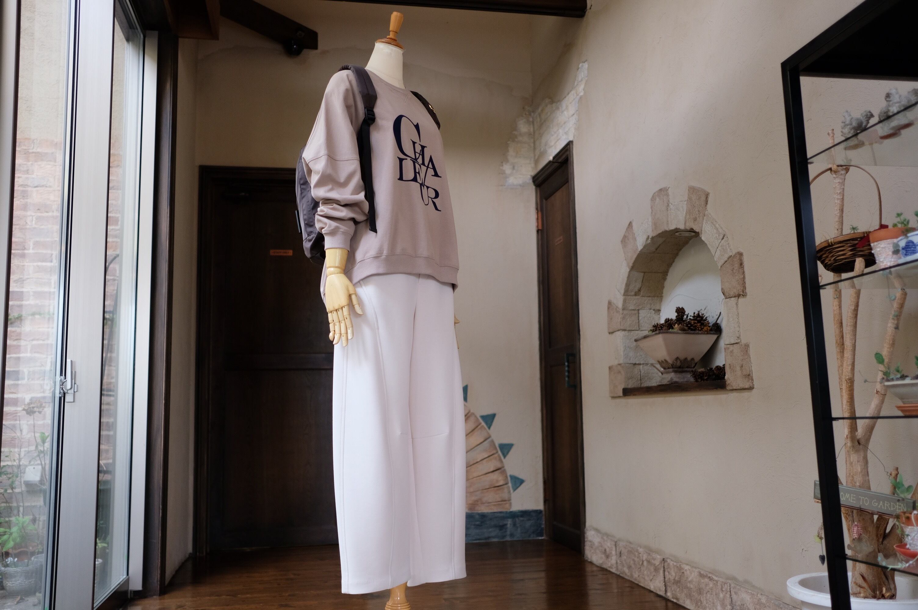 新登場の「【Lallia Mu】ポンチ素材カーブラインパンツ<アイボリー>」は、楽なのにきちんと見える美シルエットが魅力のアイテムです!ウエスト総ゴム&プルオン仕様により、はきやすさと快適な着心地を実現しつつ、程良くトレンド感を添えたデザインが特徴です。