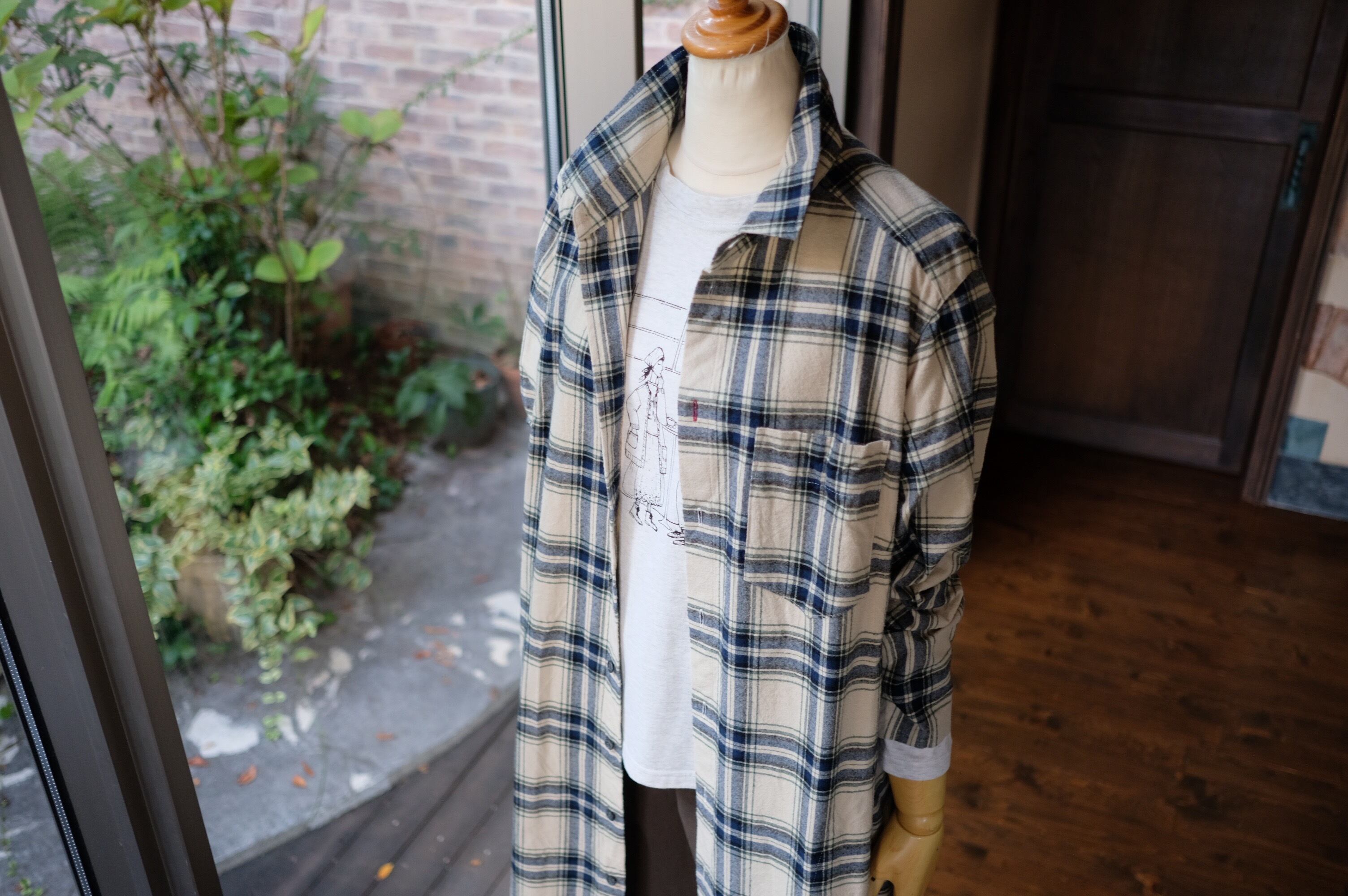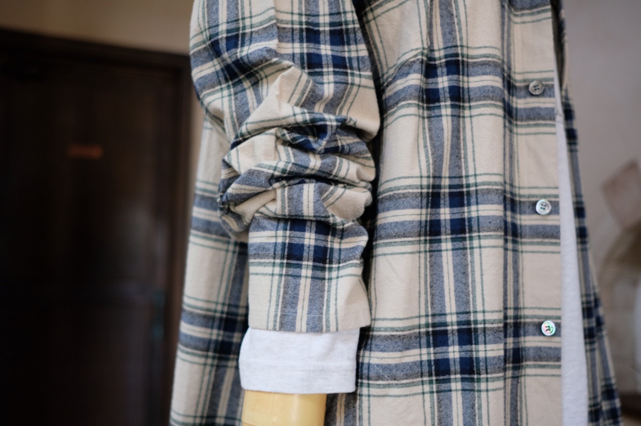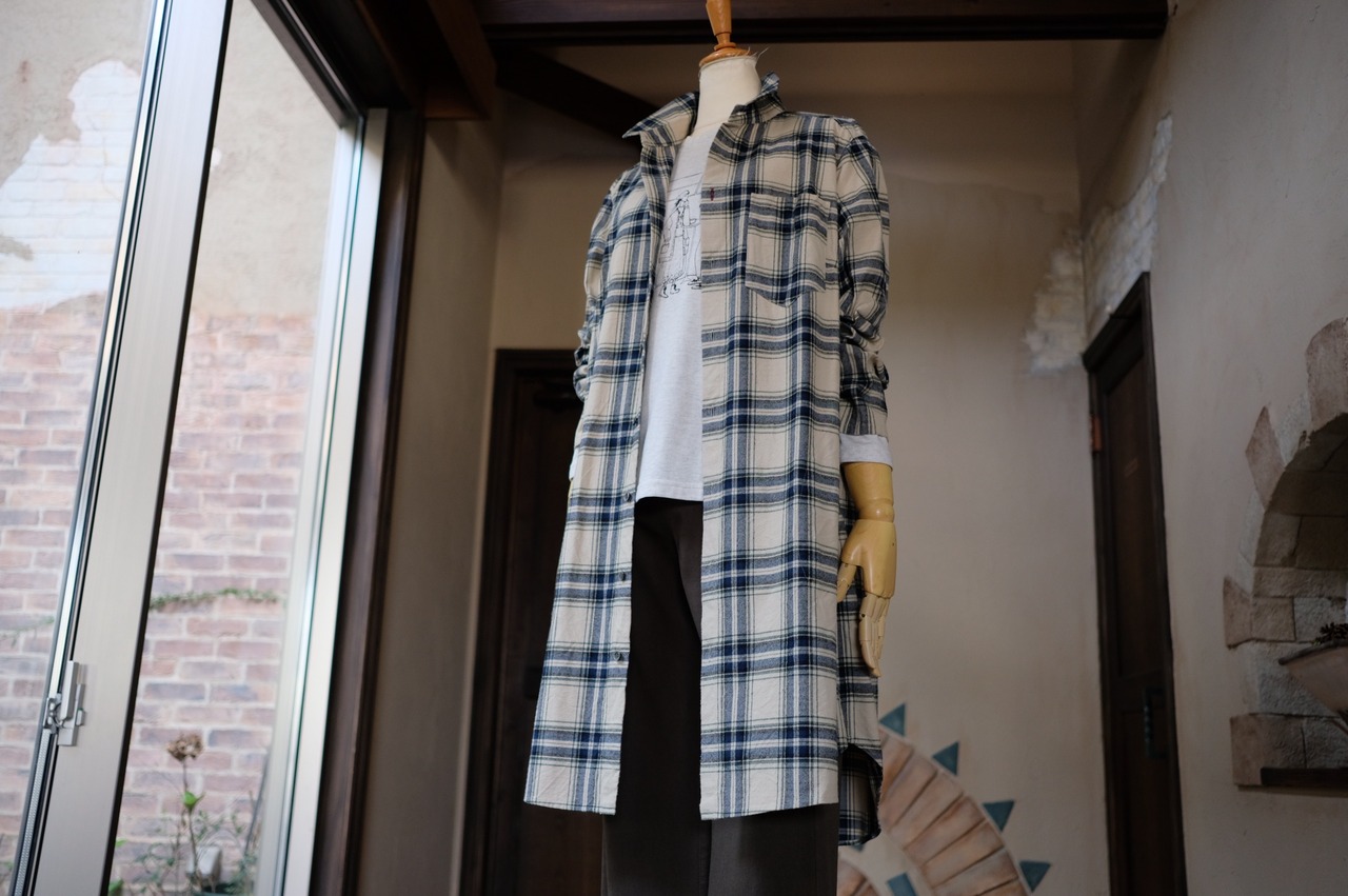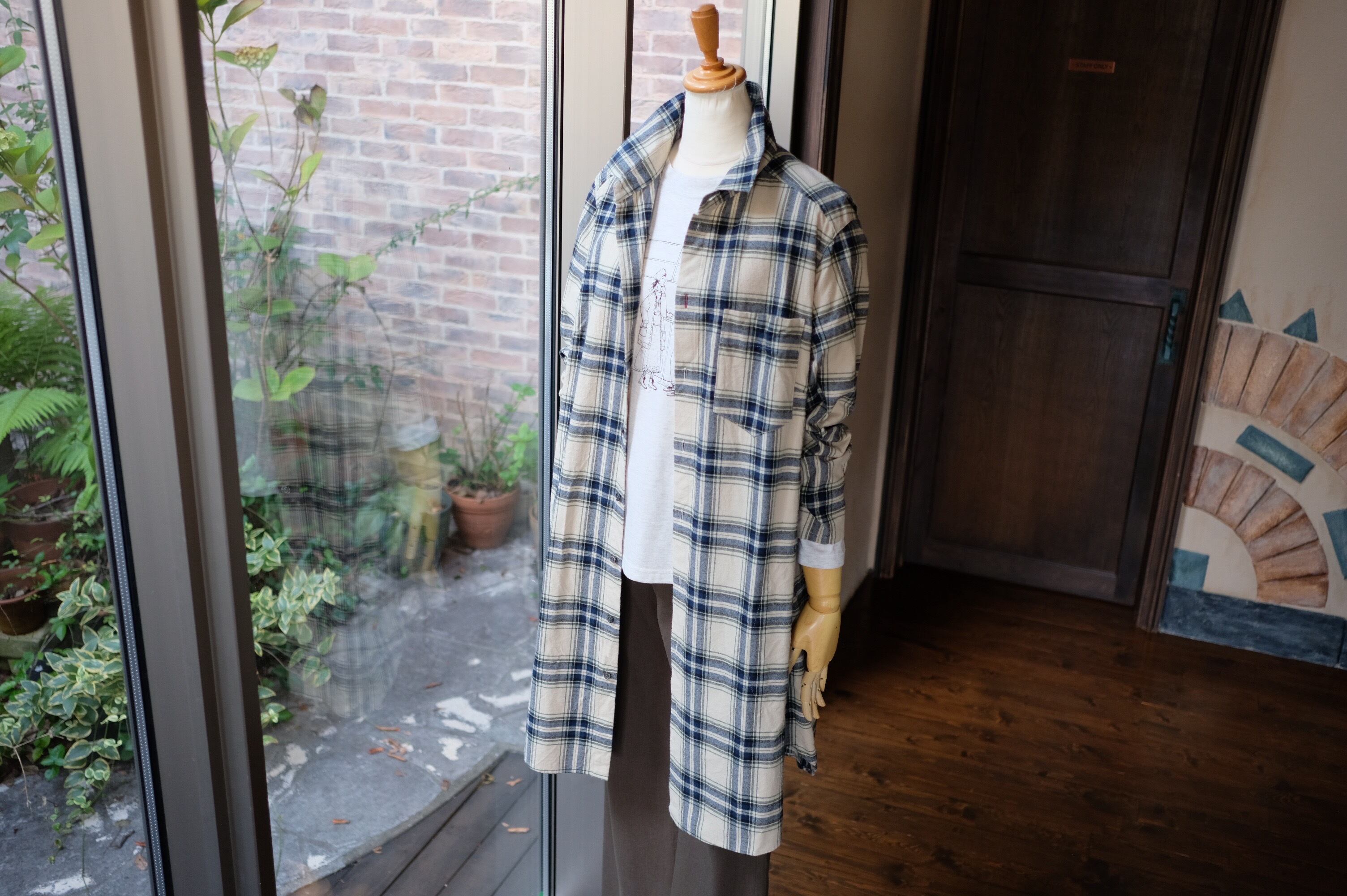 【CO’s】ヴィンテージ風表起毛先染めチェックロングシャツ<ライトベージュベース>