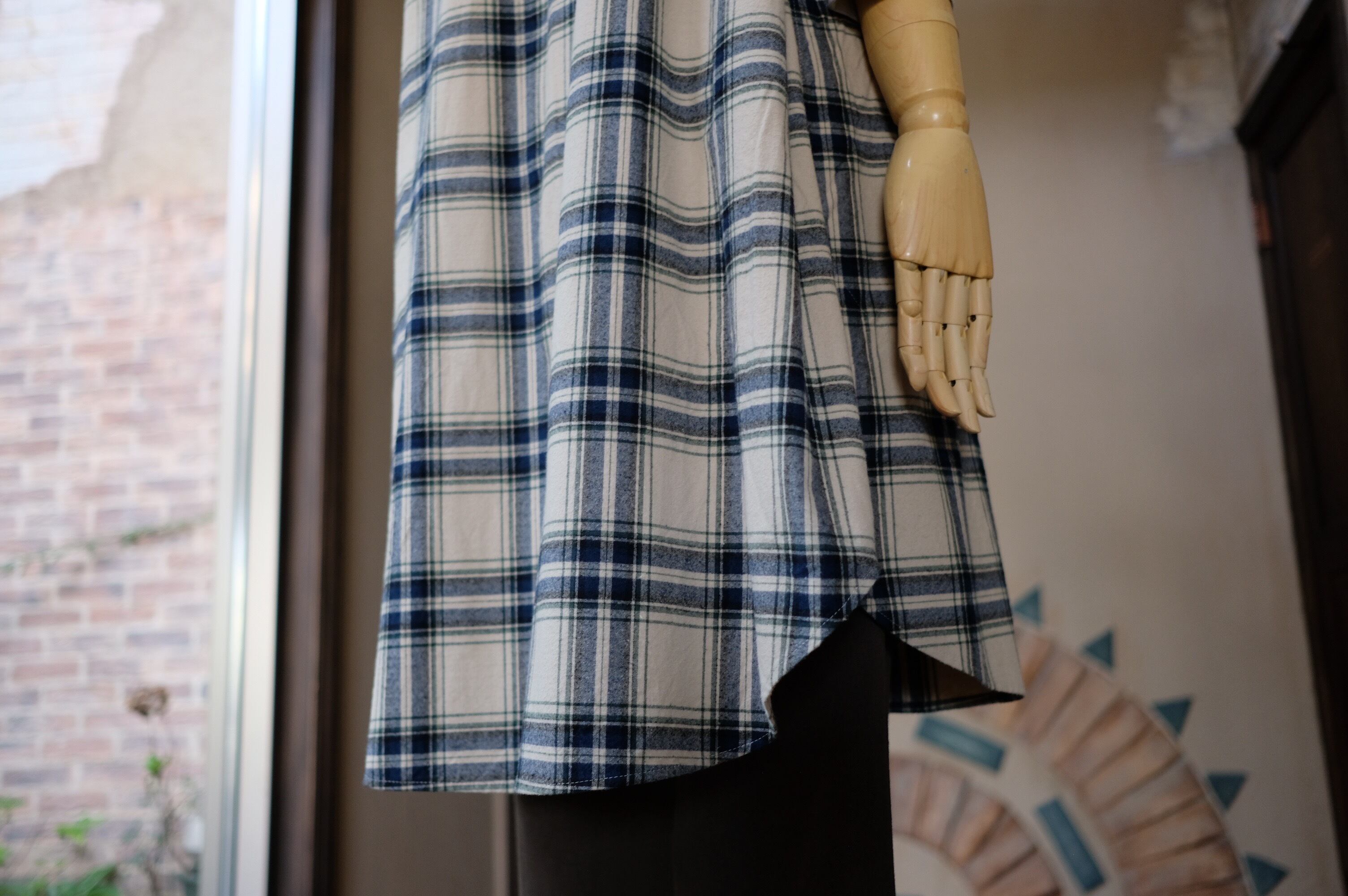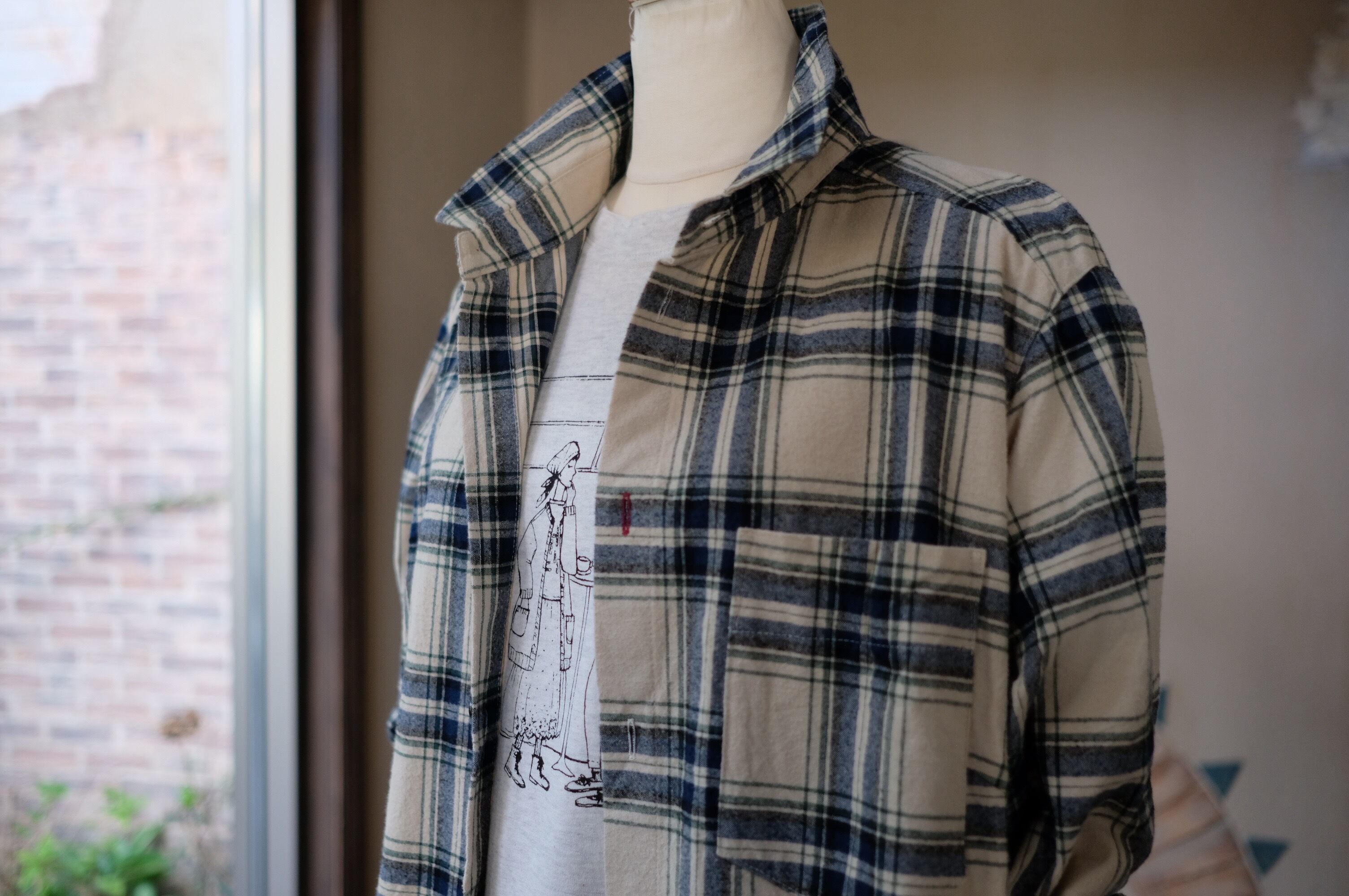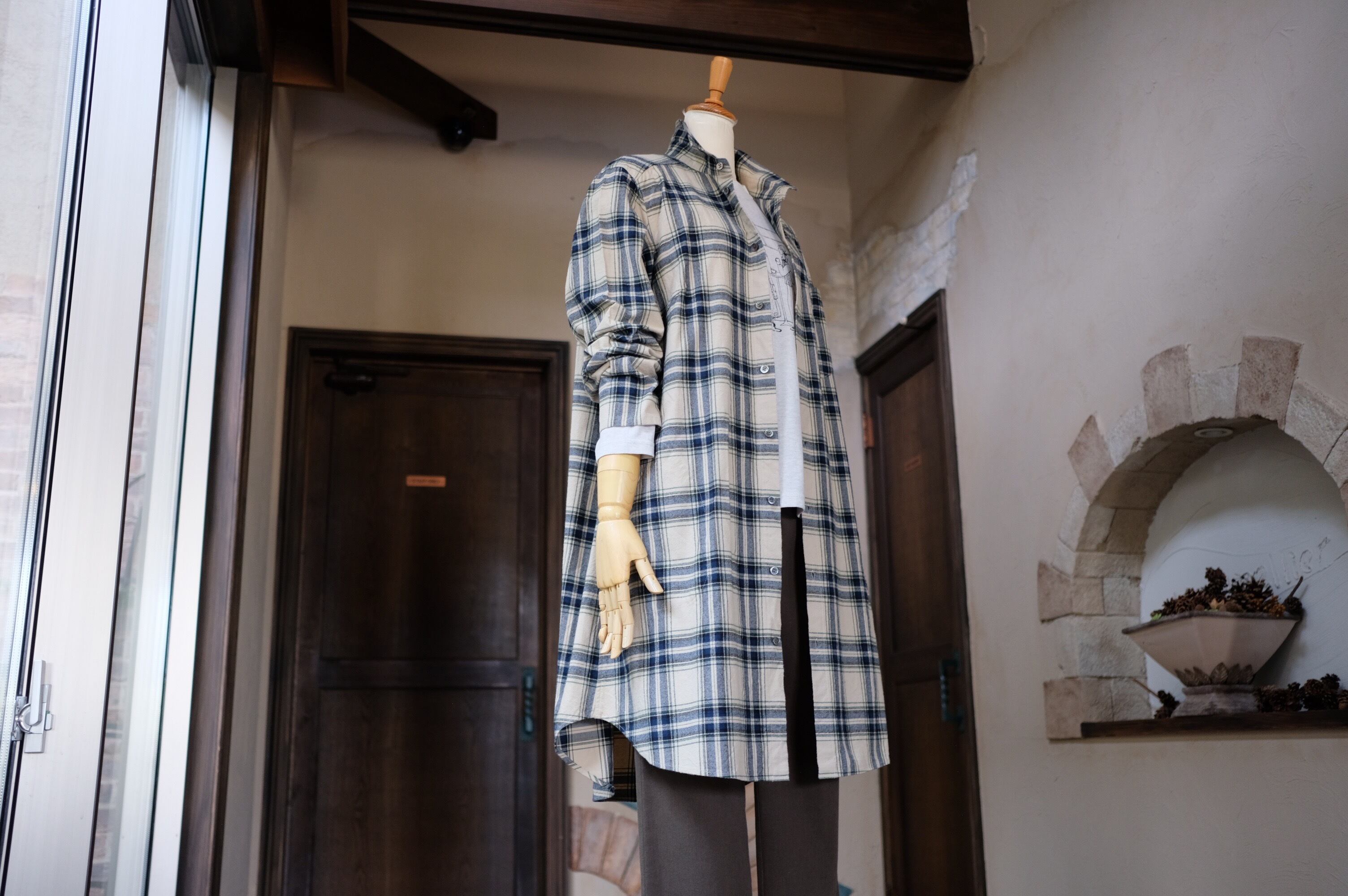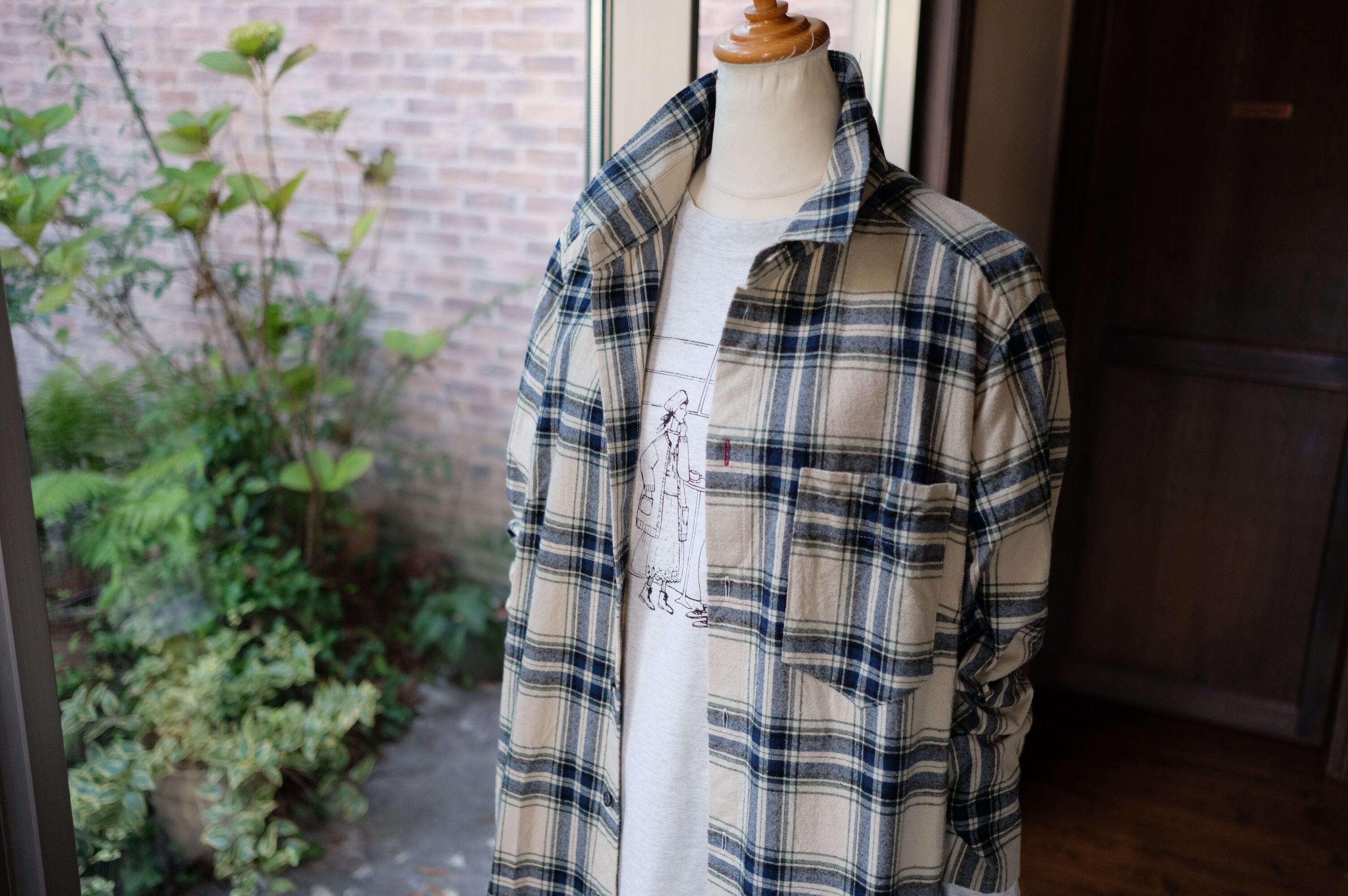 【CO’s】ヴィンテージ風表起毛先染めチェックロングシャツ<ライトベージュベース>