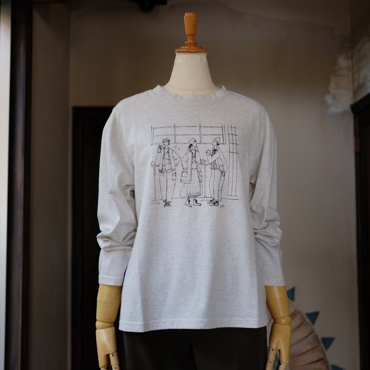 【CO’s】デザイナーオリジナルイラスト ”Three Womanプリント”長袖Tシャツ<オートミール>