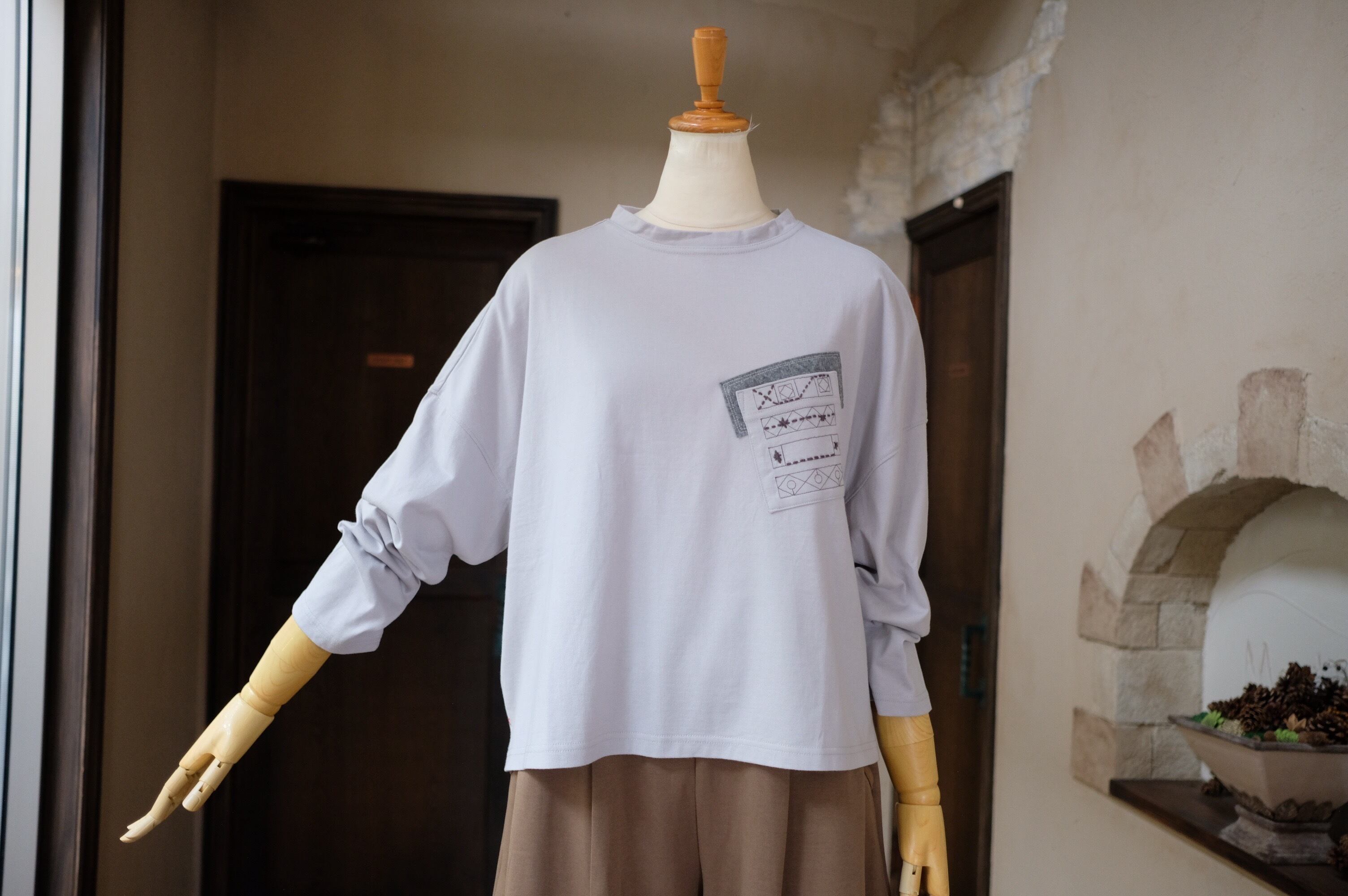 このTシャツは、日常のカジュアルスタイルにぴったりで、デニムやスカートとの相性も抜群です。シンプルなデザインながら、細部にこだわりが感じられ、お友達とのお出かけや休日のリラックスタイムに最適なアイテムです。この刺繍胸ポケットショート丈Tシャツをワードローブに加えて、毎日のコーディネートをお楽しみください!