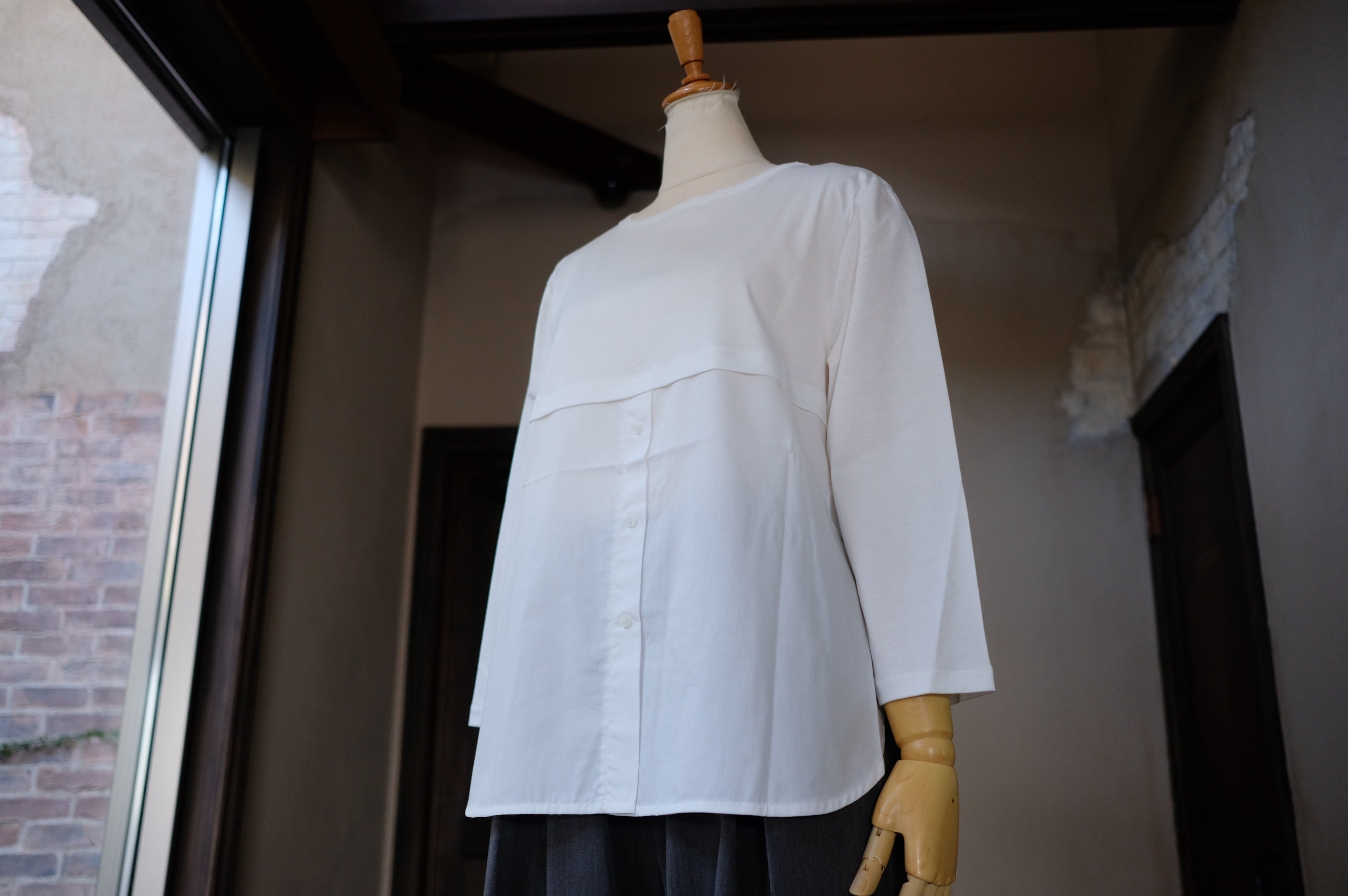商品名:【klassiek】カットソー × シャツドッキングプルオーバー<オフホワイト>