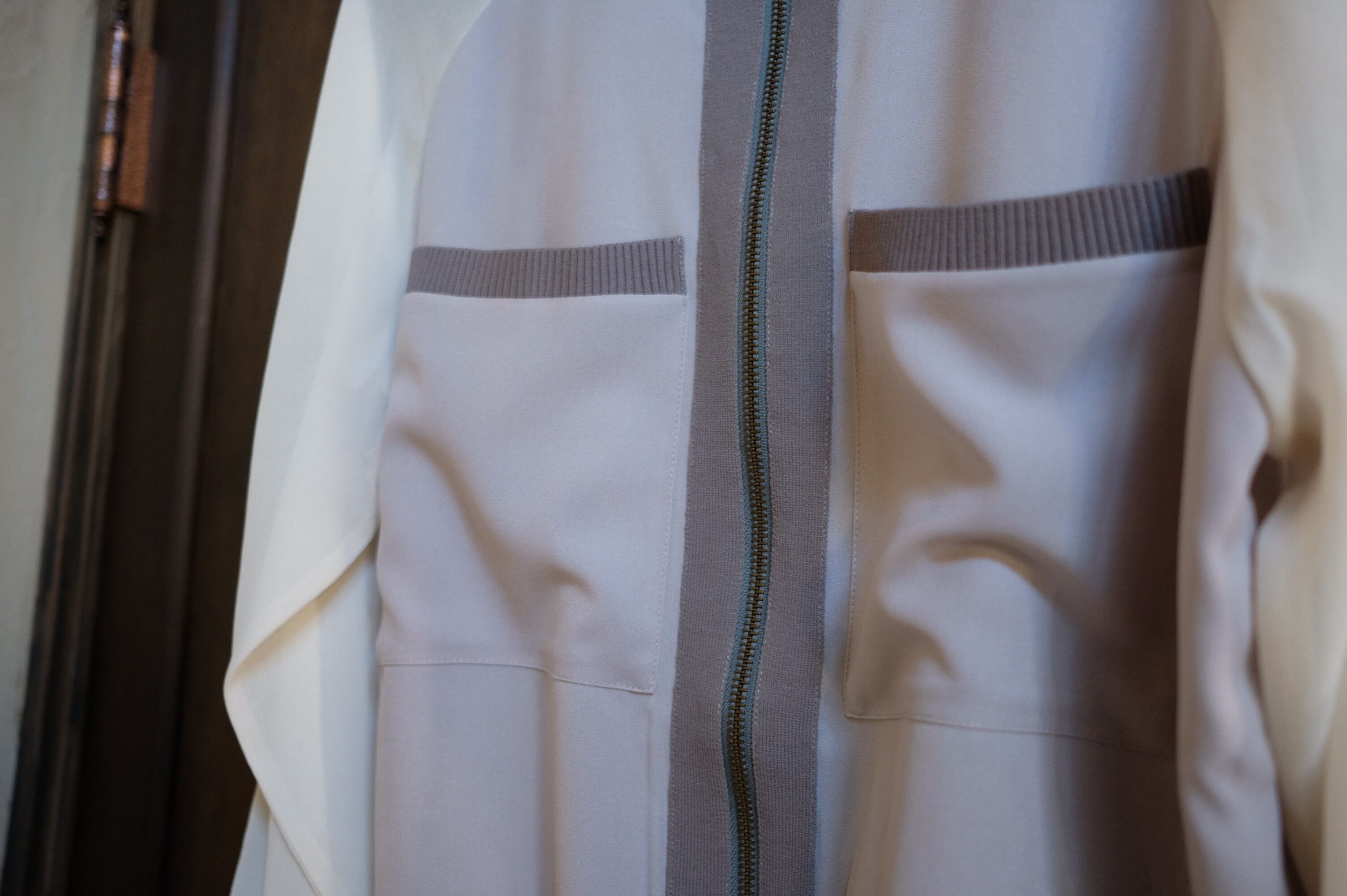 新登場の「【PAREATSU】異素材コンビフロントジップブルゾン」は、ジョーゼット×シフォン×ニットの異素材配色が映える、秋にぴったりの羽織です!シワになりにくい特性を持つジップブルゾンは、快適さとスタイルの両方を兼ね備えています。軽やかな素材感で、さまざまなコーディネートに合わせやすく、デイリースタイルに新たなエッセンスを加えます。