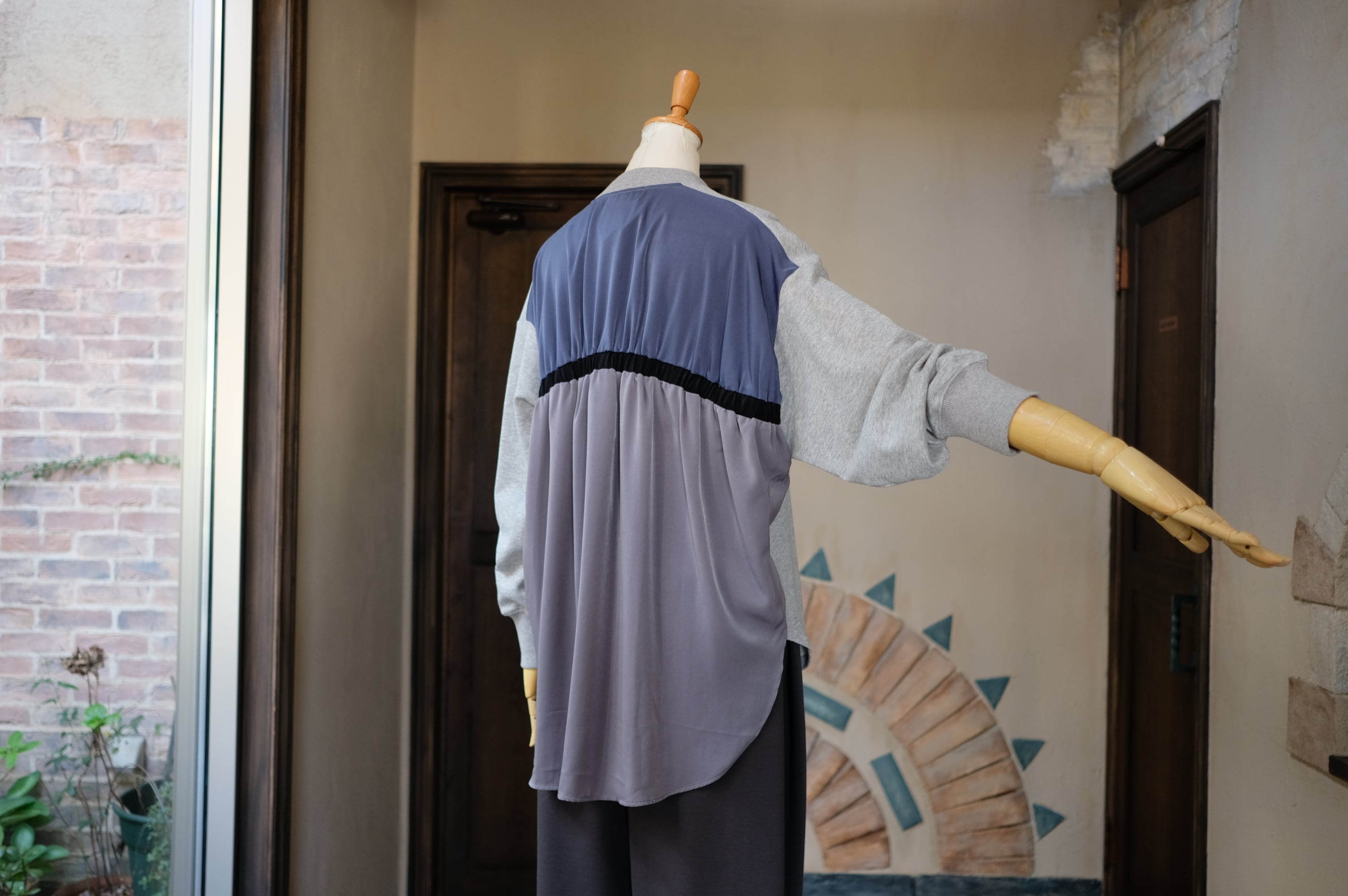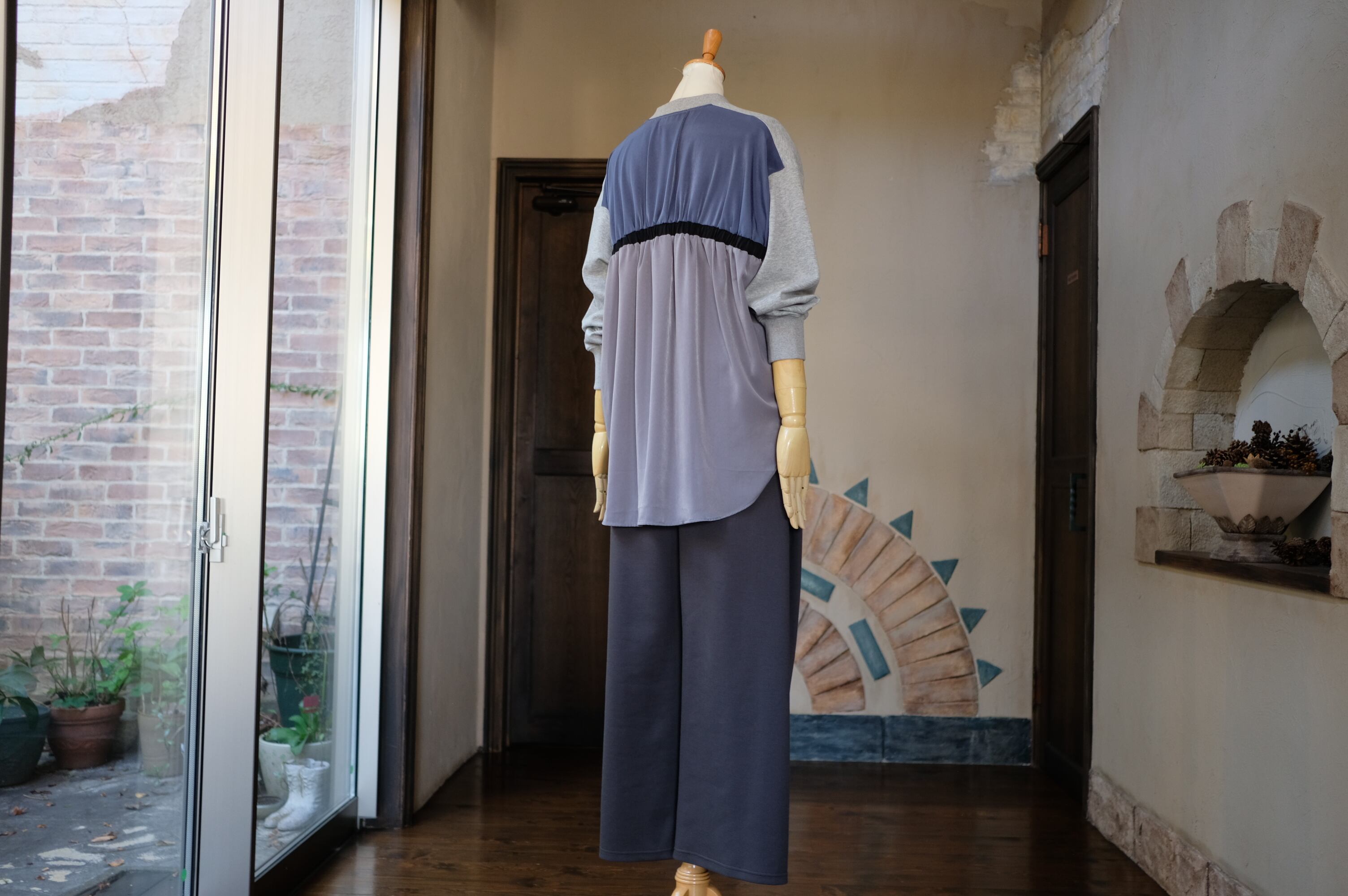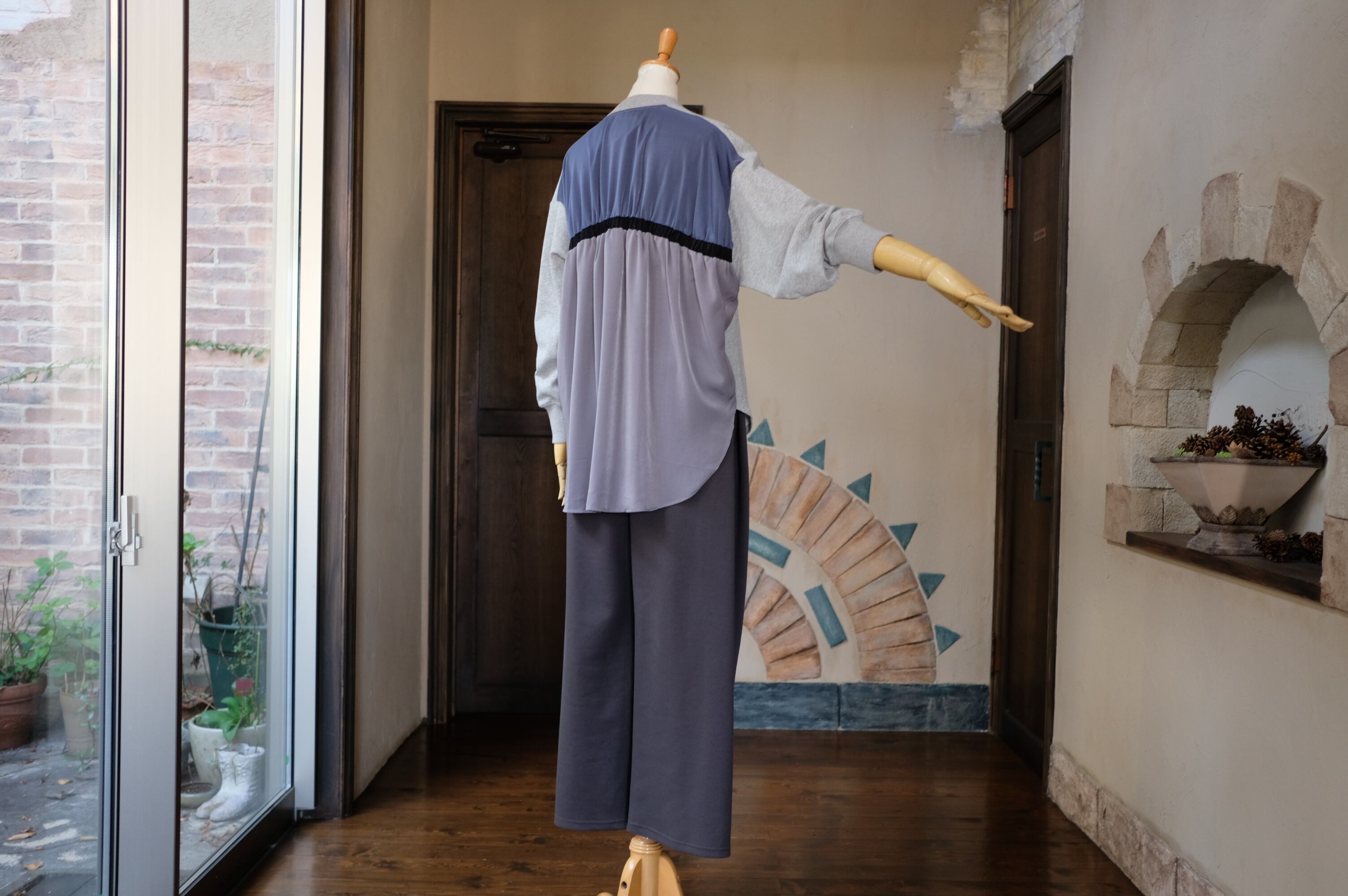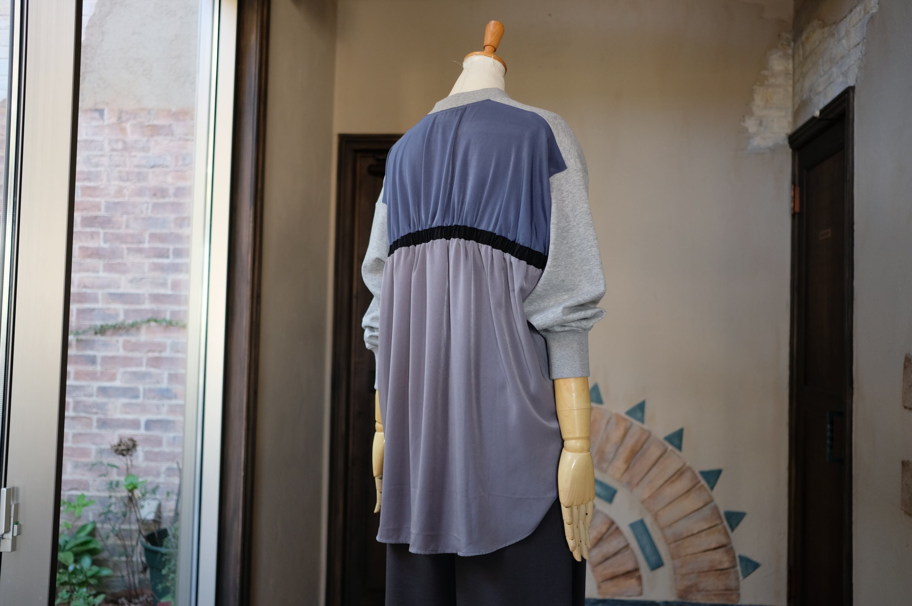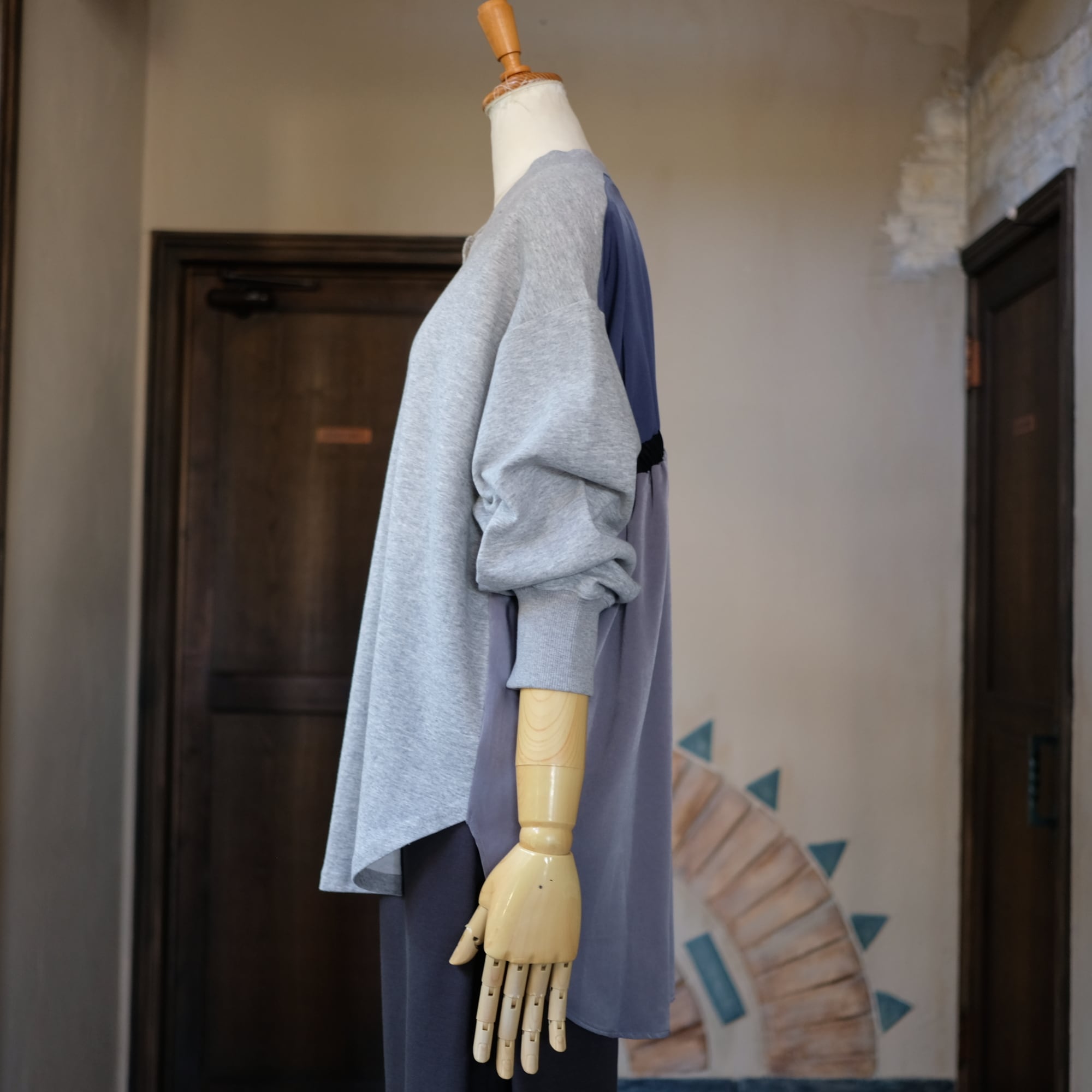 【MyLanka】キーネックドッキングデザインプルオーバー<TOPグレー>