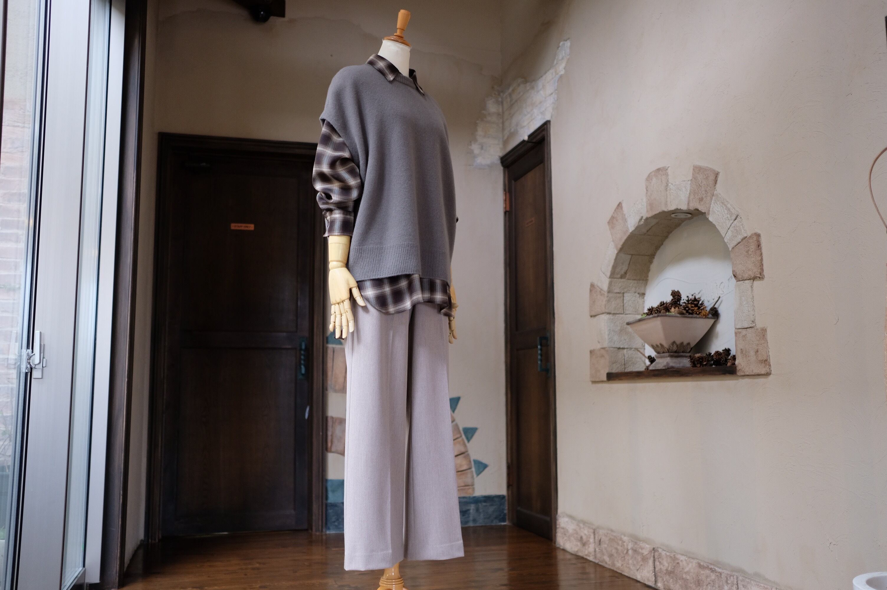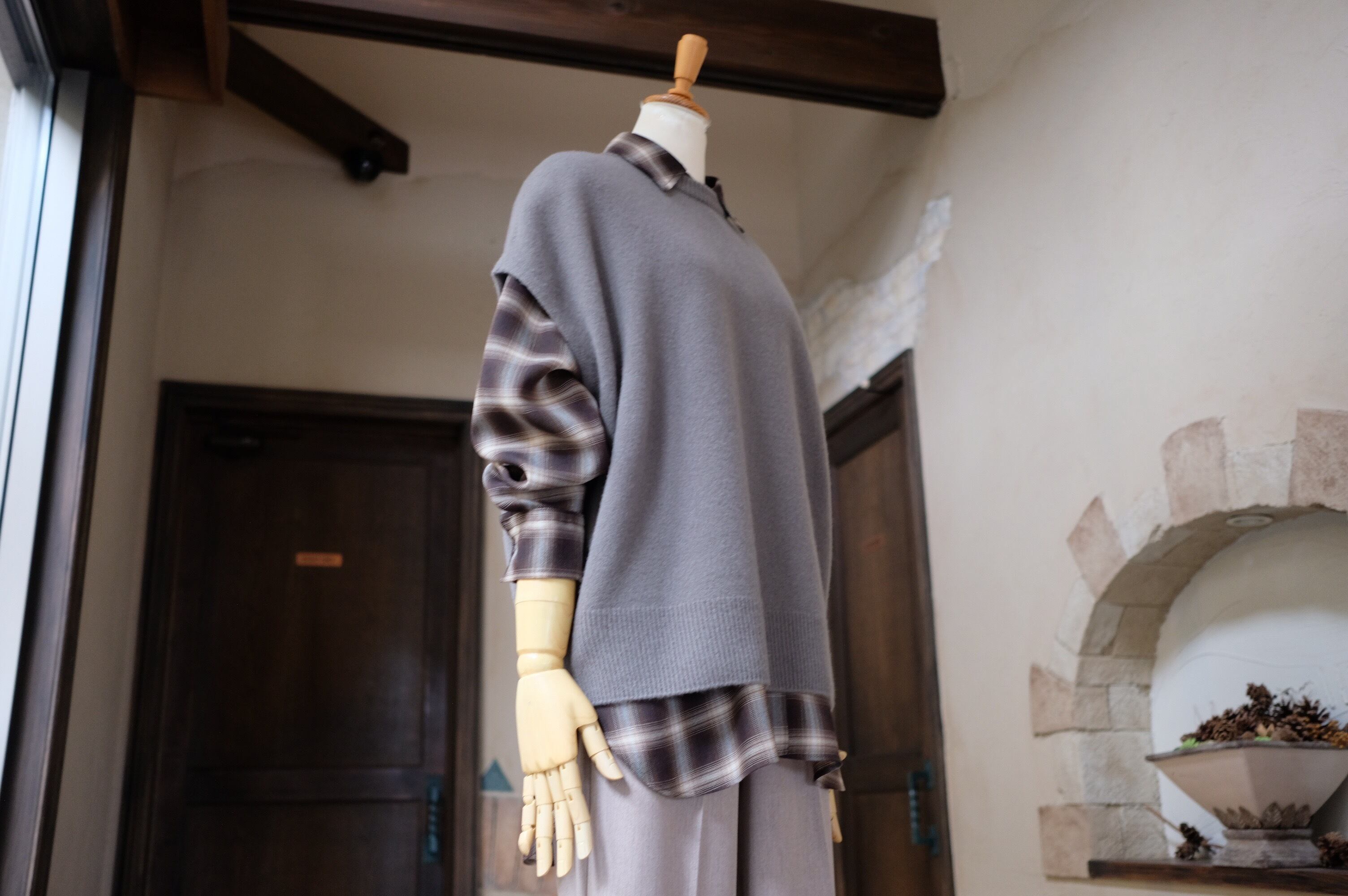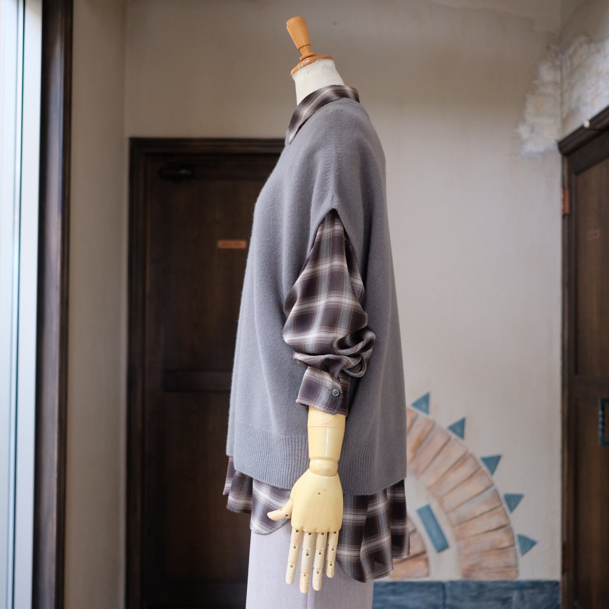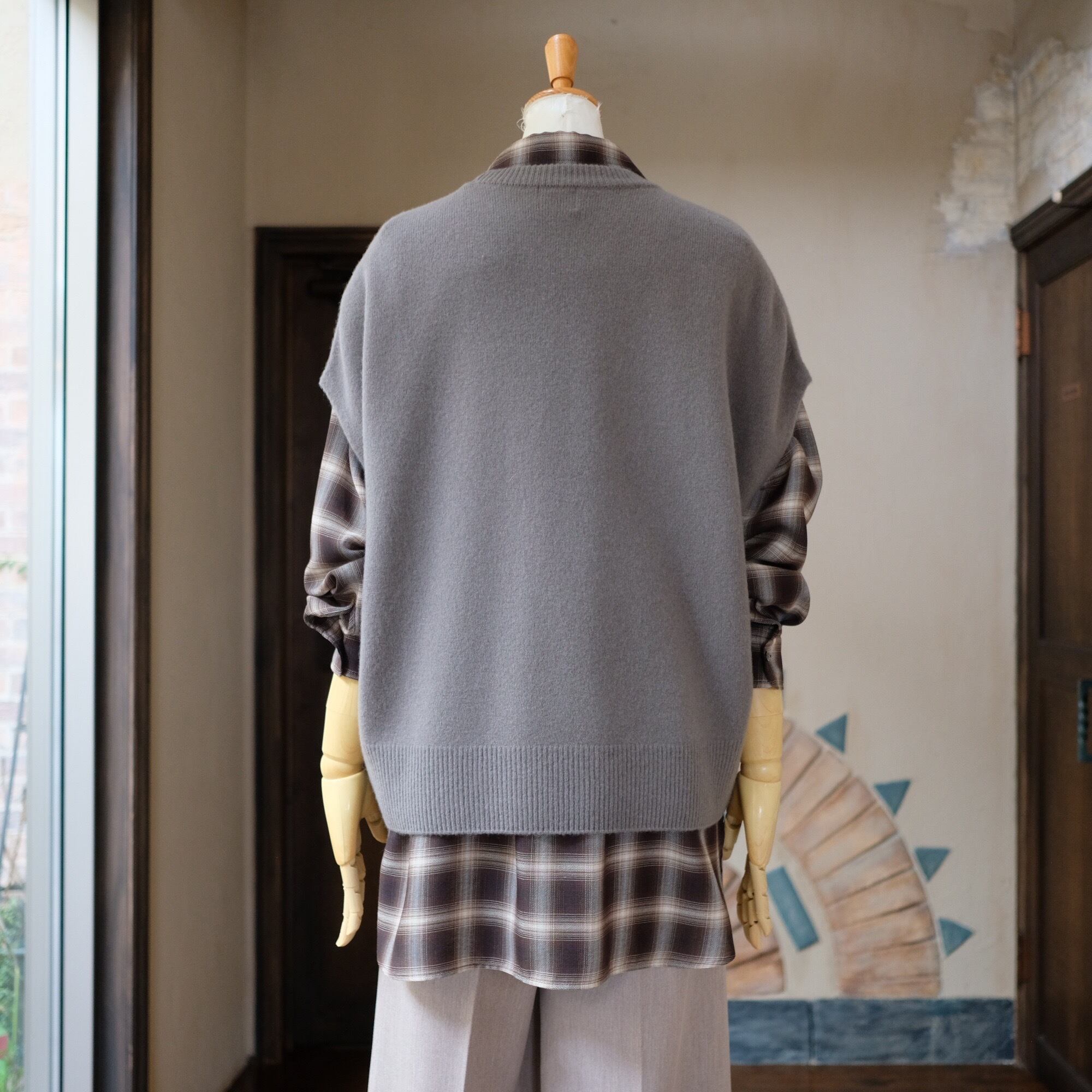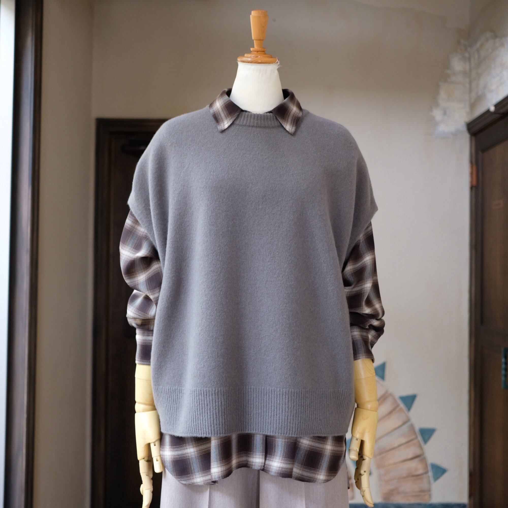 このニットベストは、オーバーサイズのシルエットとフレンチスリーブのデザインが絶妙に組み合わさり、リラックスしたスタイルを実現します。レイヤードスタイルとしても使えるアイテムで、カジュアルな日常使いからおしゃれなお出かけまで、幅広く活躍することが期待できます。温かみのあるウールが心地よく、冬の装いにぴったりの一品です。