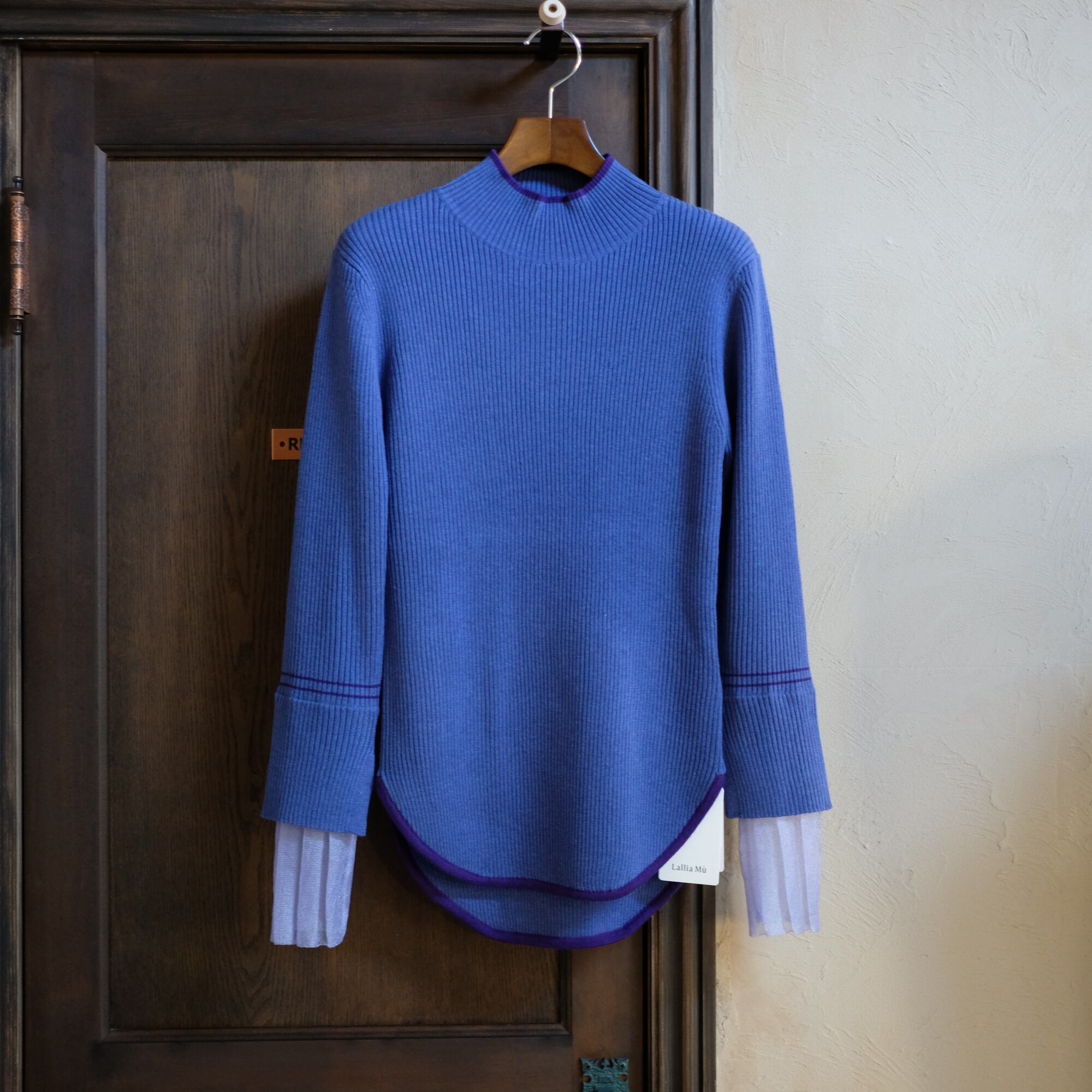 商品名:【Lallia Mu】シアープリーツカフハイネックリブニットプルオーバー