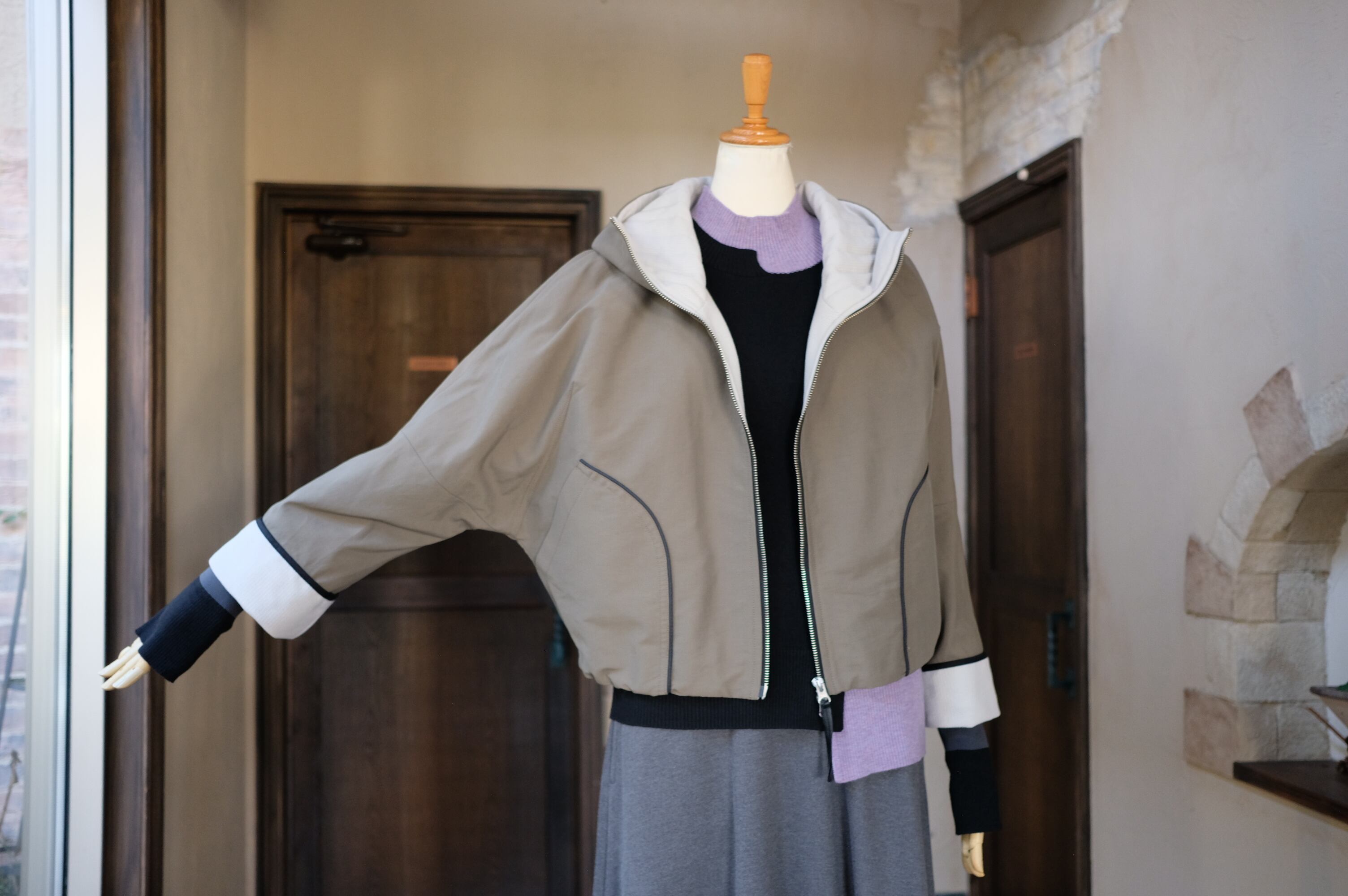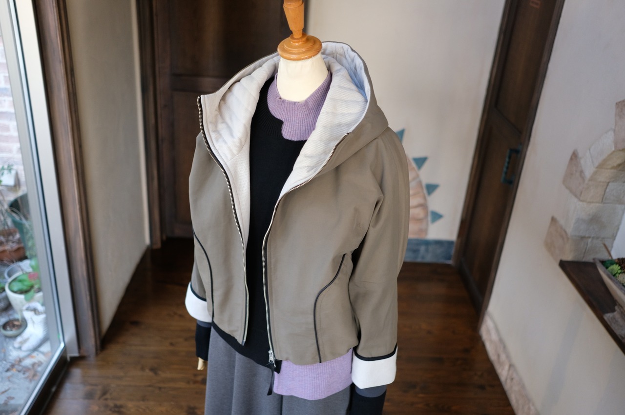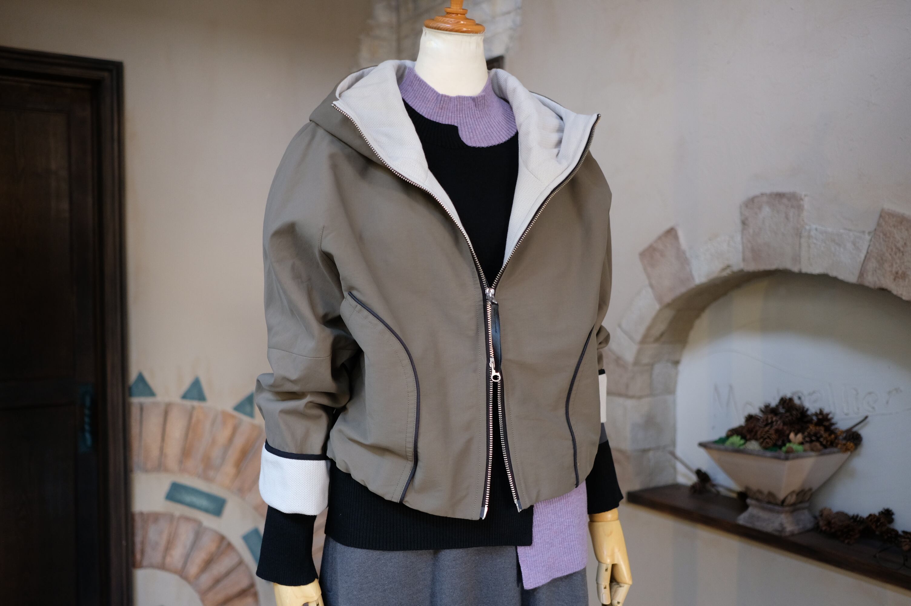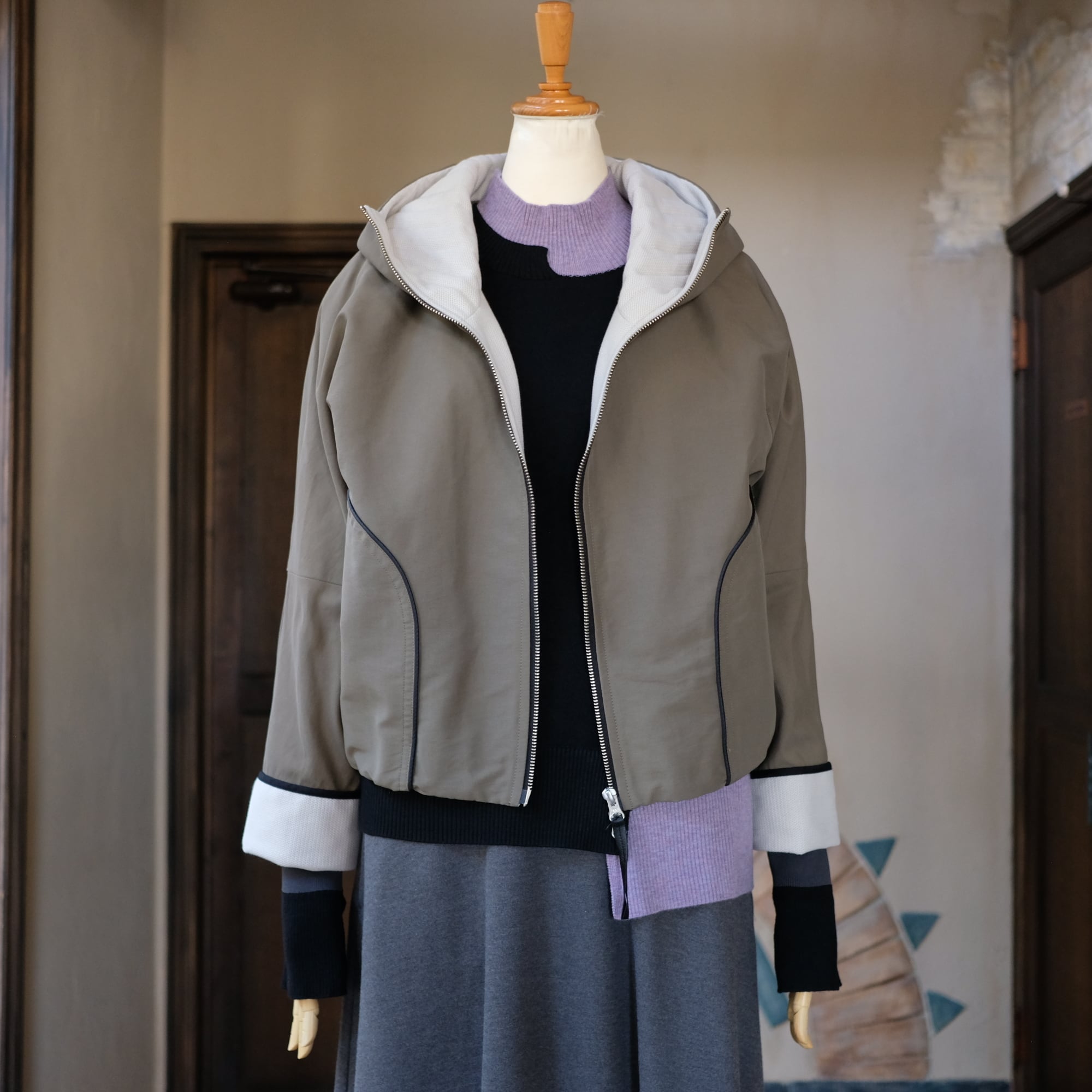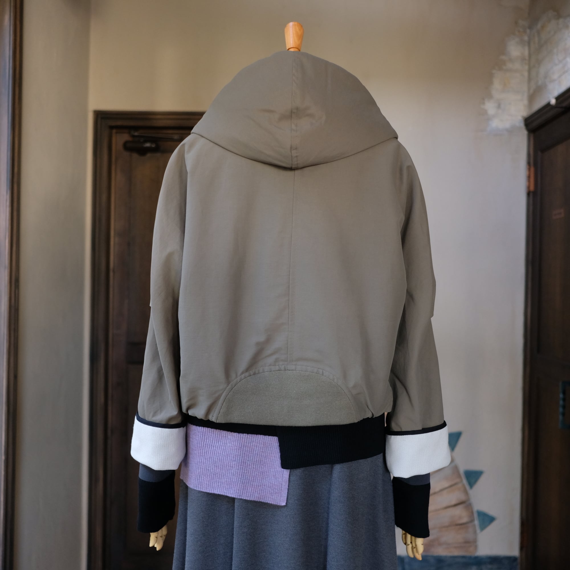 【Lallia Mu】キルトフードショートブルゾン<カーキ>