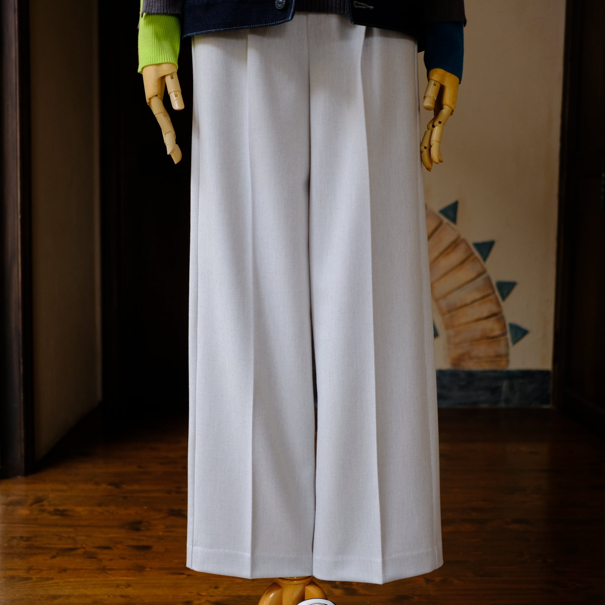 新たなシーズンに向けて、「【PAREATSU】微起毛メランジセンタープレスセミワイドパンツ」が登場です!両面が微起毛した冬対応素材を使用したこのパンツは、柔らかな肌触りが魅力で、寒い季節に最適な一着です。ウエストは後ろゴム仕様で、ストレッチ性もあり快適な穿き心地。