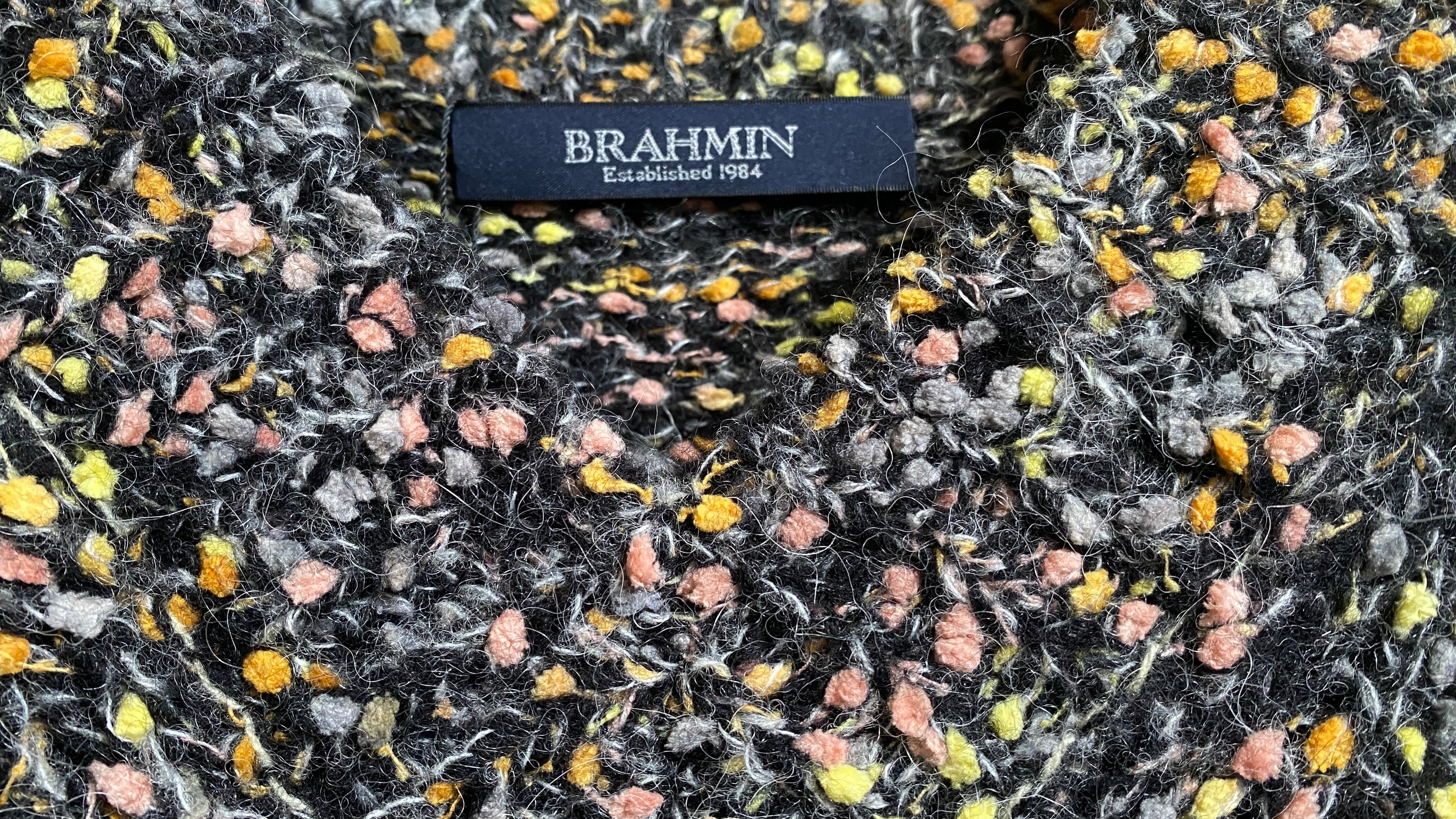 新たなシーズンに向けて、上質感あるプレミアムなニット「【BRAHMIN】Vネックカラーネップニットプルオーバー」が登場です!洗練されたブラック系ベースに、アルパカ混の軽暖素材とウールネップを織り交ぜたこのニットは、毛足感と色彩のコントラストが映える主役アイテムです。Vネックデザインは顔周りをスッキリ見せ、女性らしさを引き立てます。