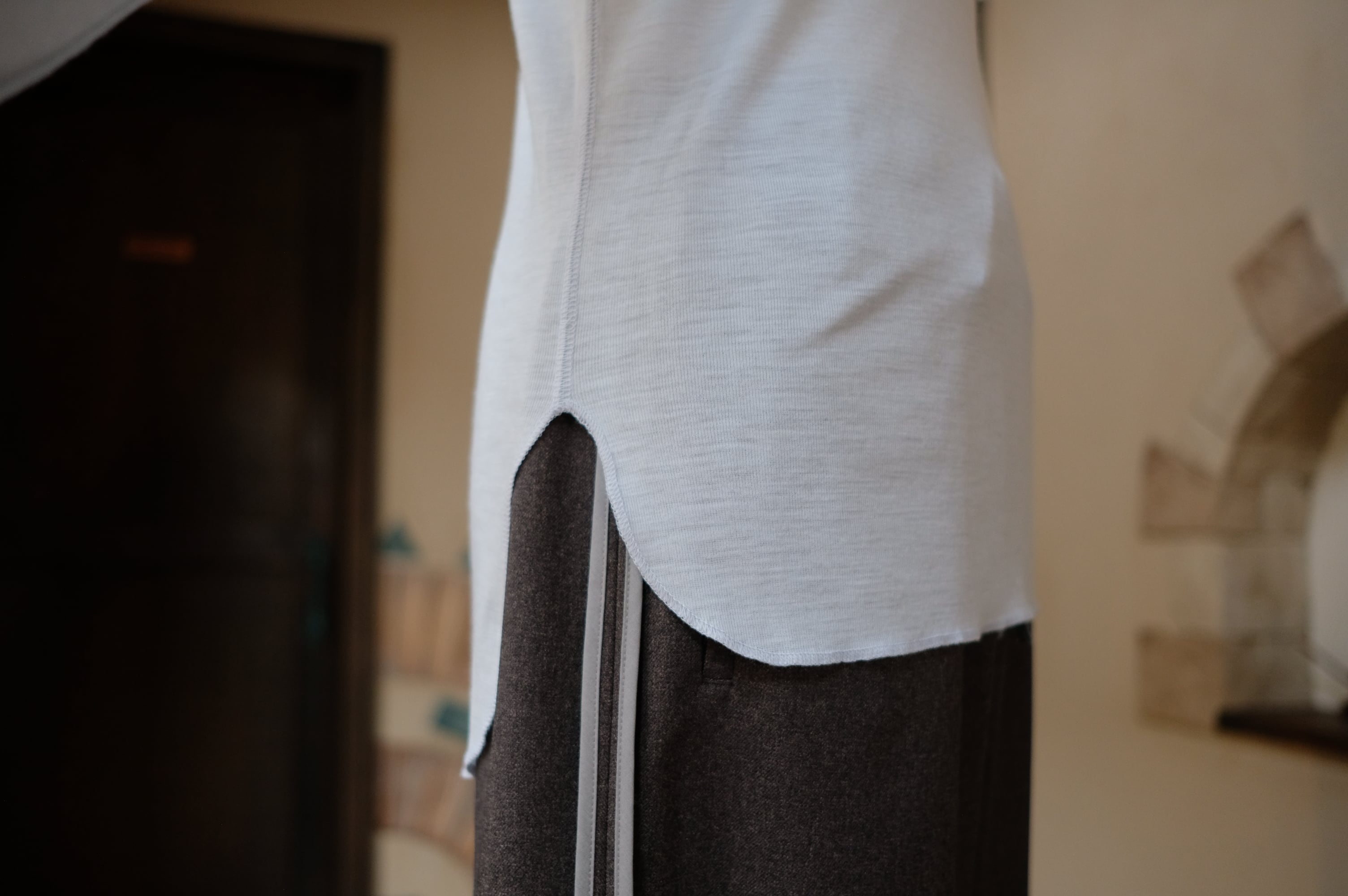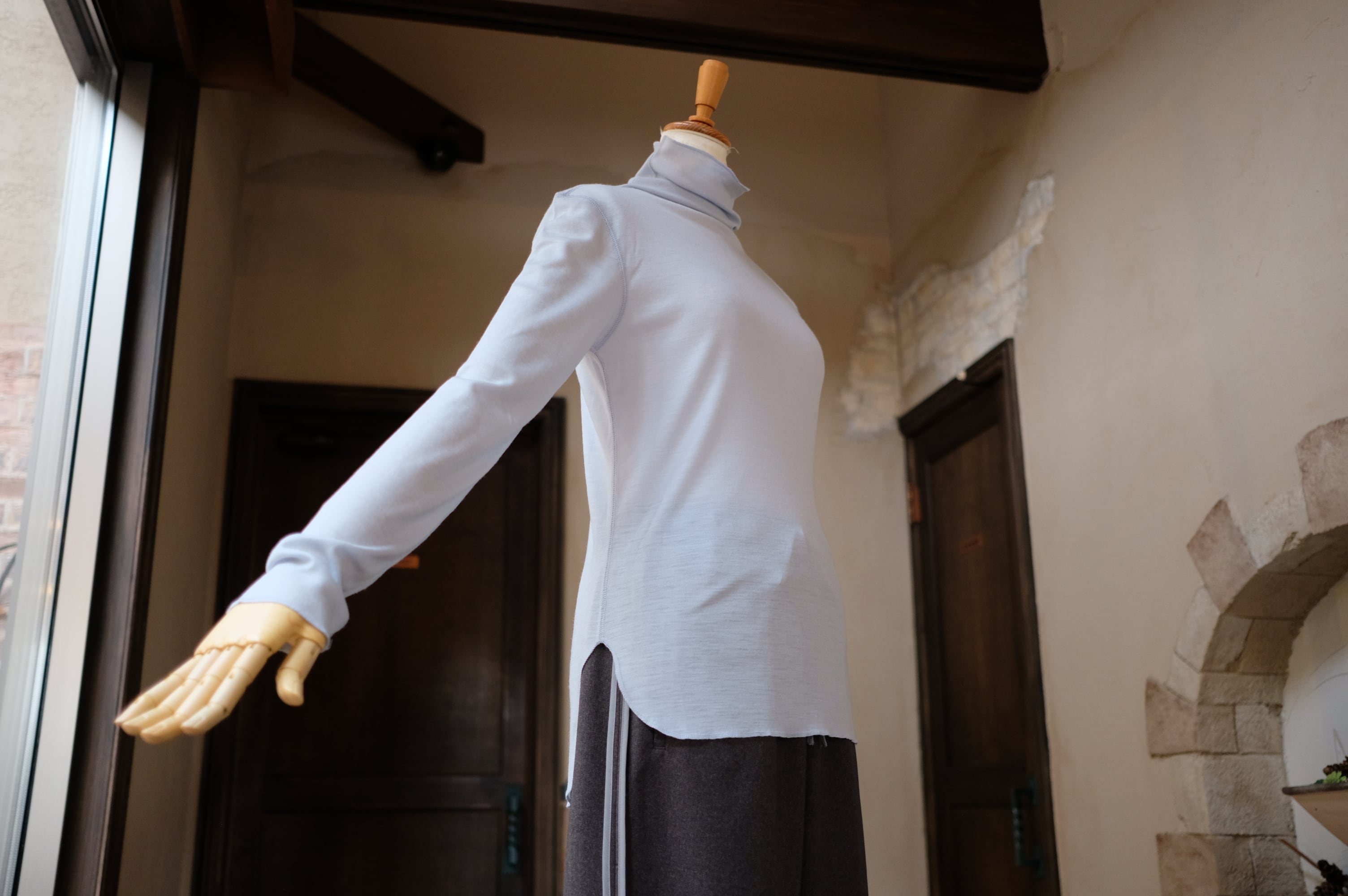 新たなシーズンに向けて、「【klassiek】ハイゲージウールジャージィインナーカットソー」が登場です!極薄ウールジャージィを使用し、優れた伸縮性と快適さを実現したこのインナーは、ボトルネックと裾ラウンド&サイドスリットのデザインが魅力です。
