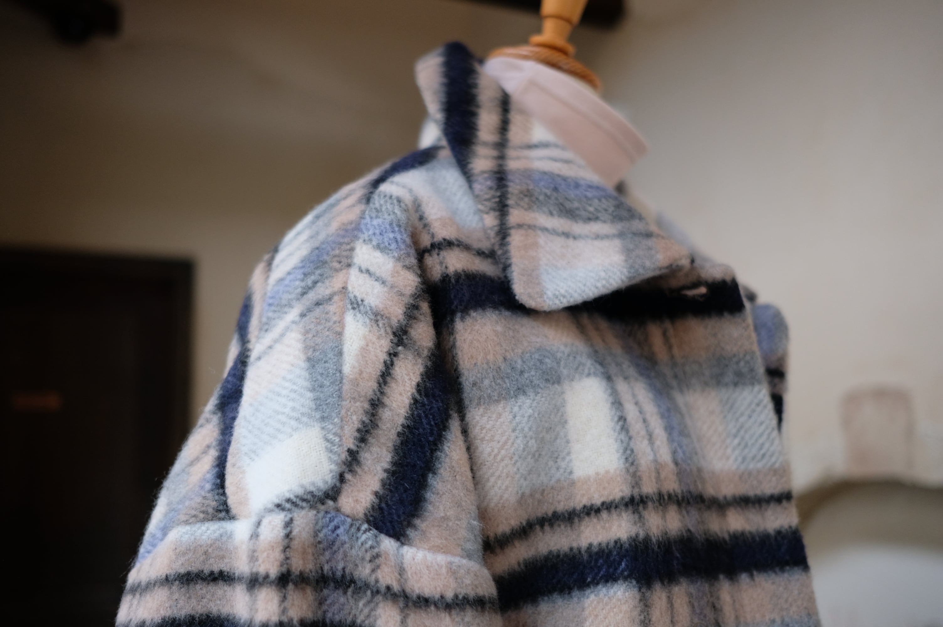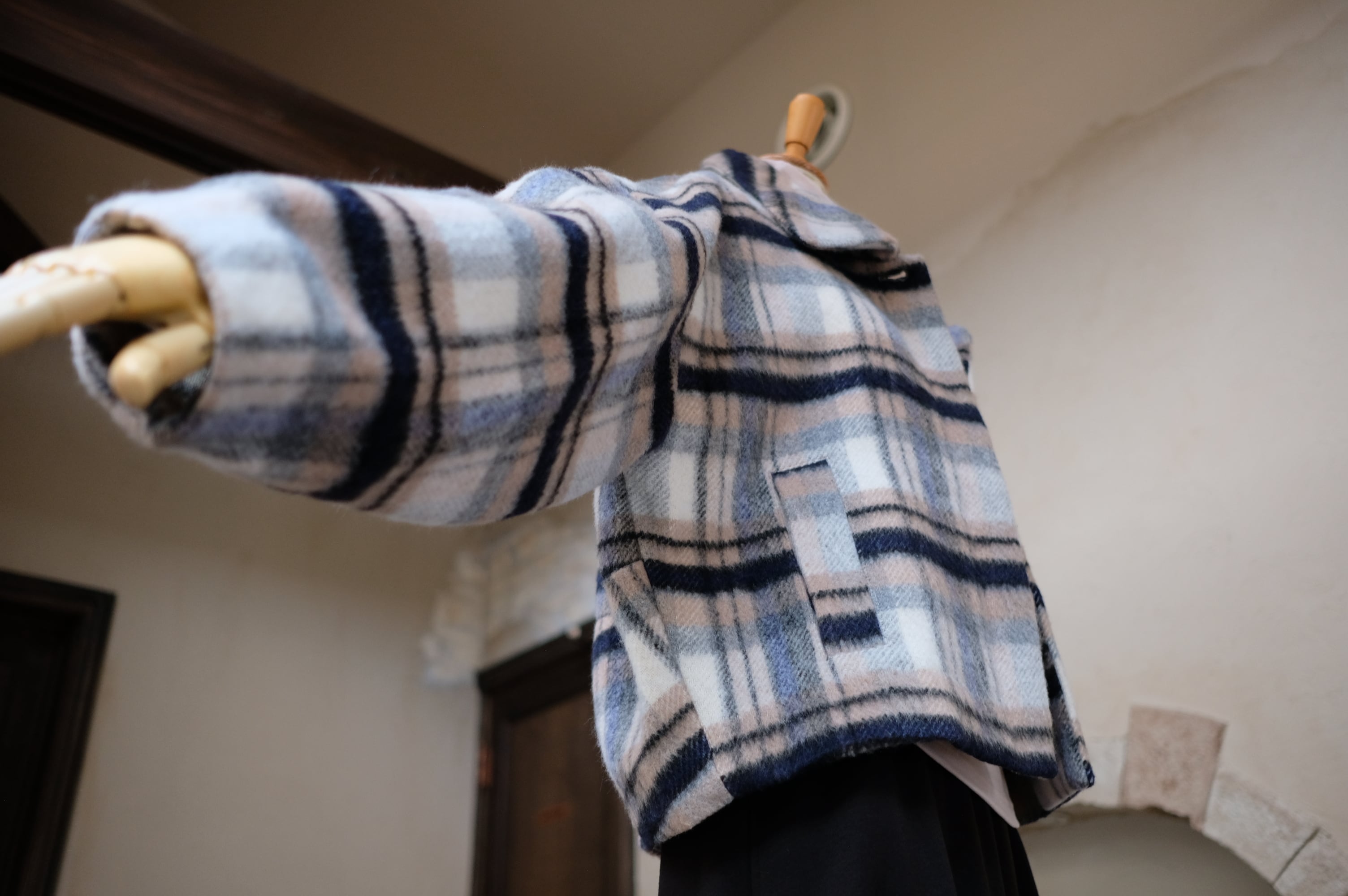 新たなシーズンに向けて、「【alta moda Fellini】表起毛チェック衿付きショートコート」が登場です!ウール混の表起毛素材を使用し、軽量でありながら温かさを保持するこのショートコートは、ゆとりある身幅と特徴的な袖デザインが魅力です。