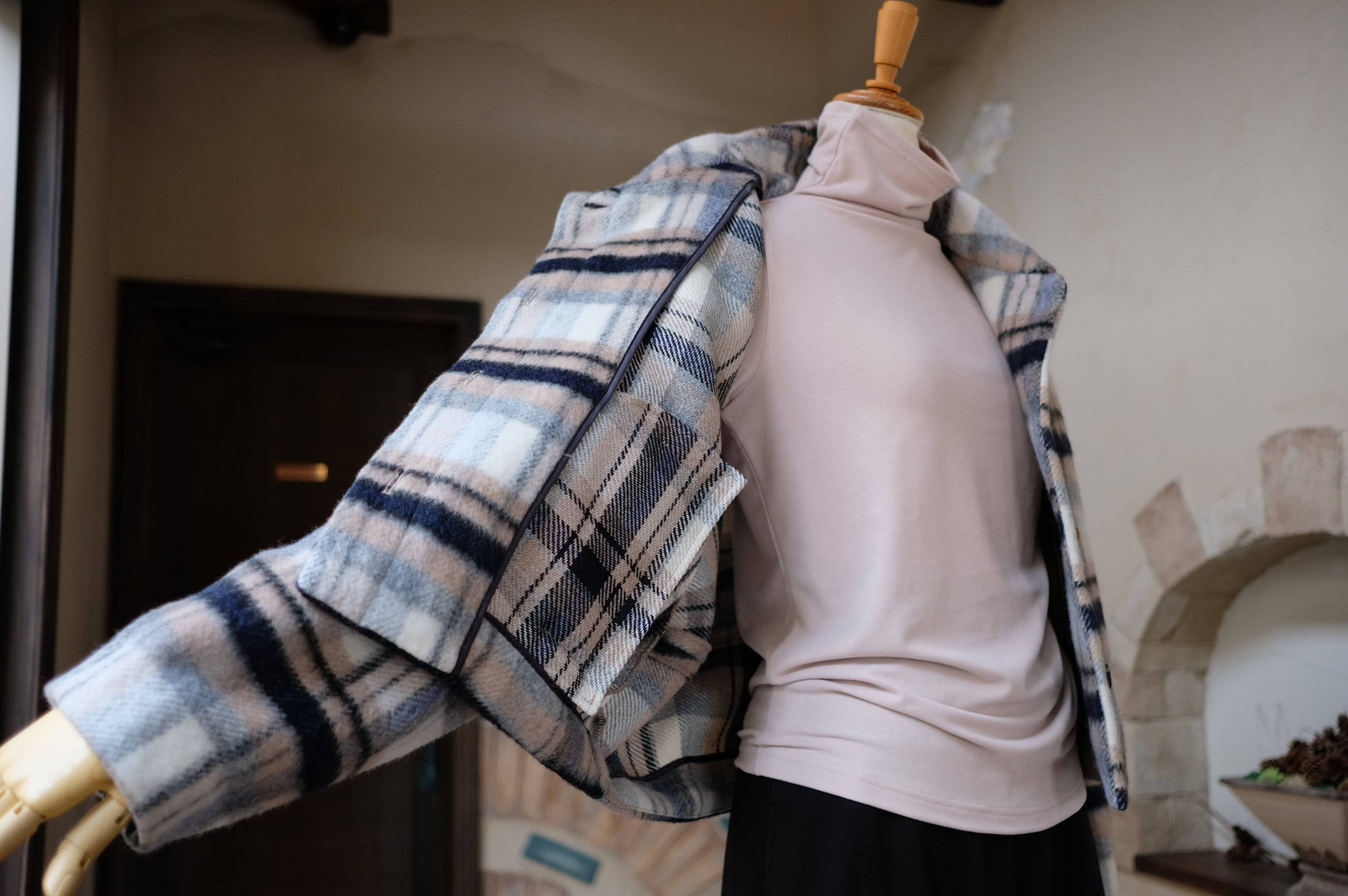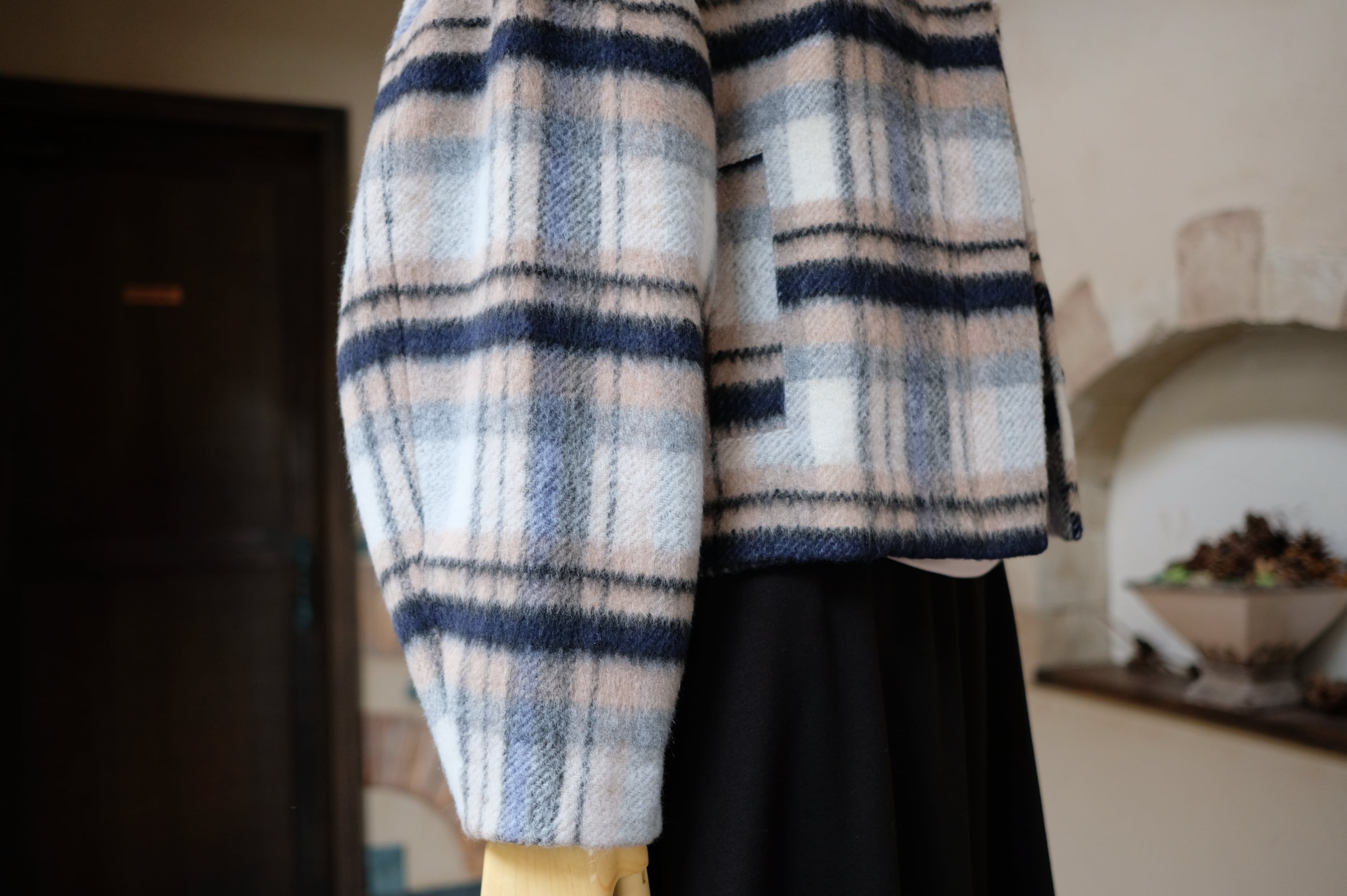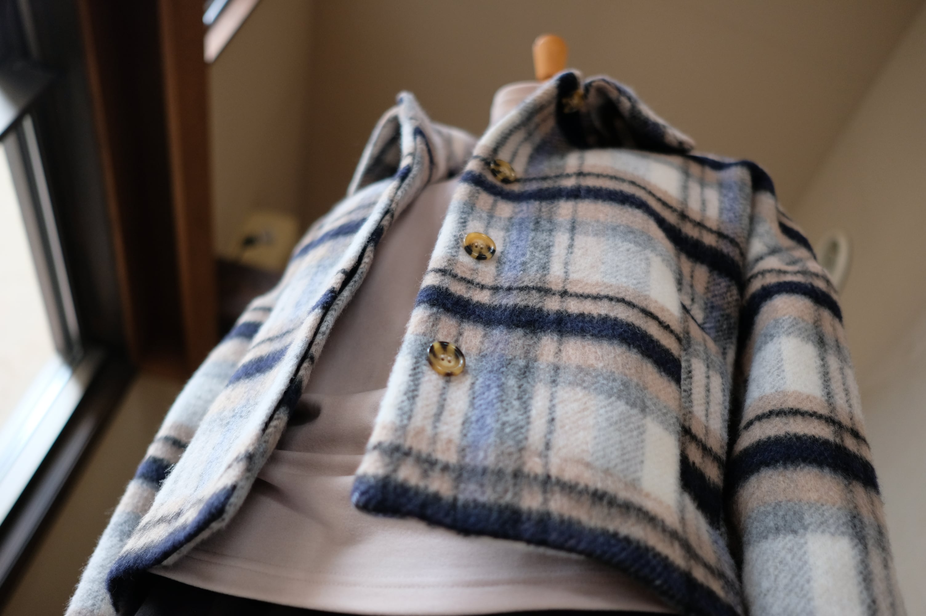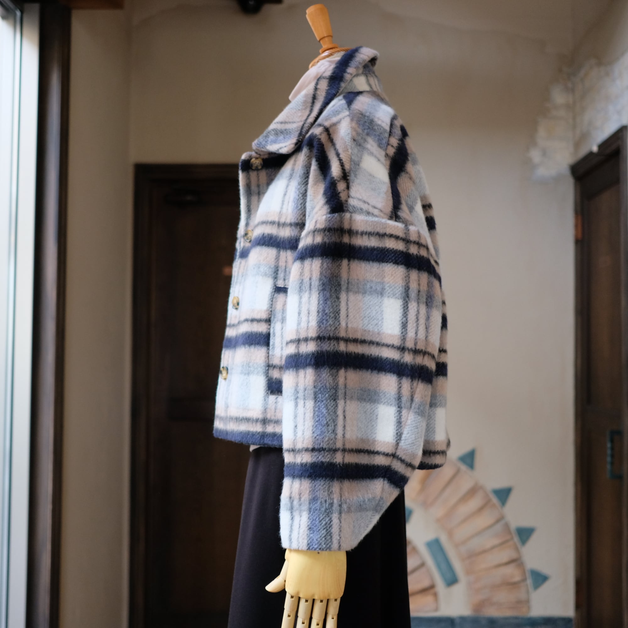 衿付きのチェック柄デザインは、カジュアルなコーディネートからお出かけスタイルまで幅広く活躍します。羽織りやすさを追求し、リラックスした着心地を実現。ぜひこのショートコートを取り入れて、あなたのコーディネートをさらに魅力的にしてみてください。