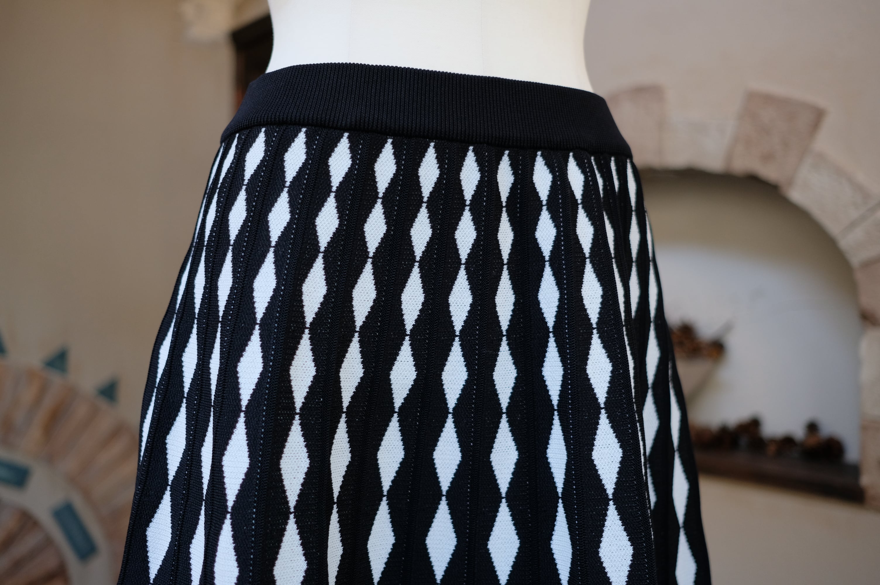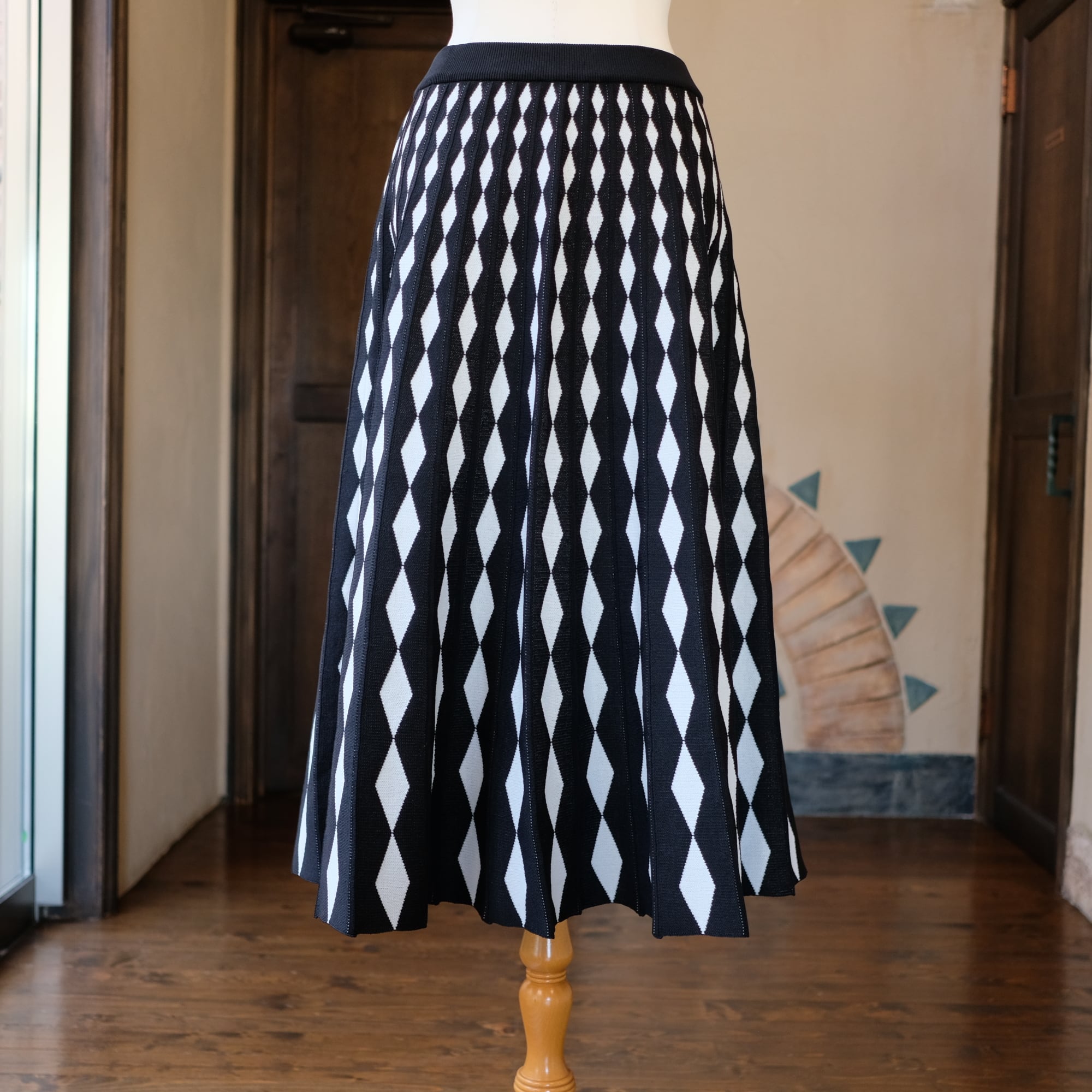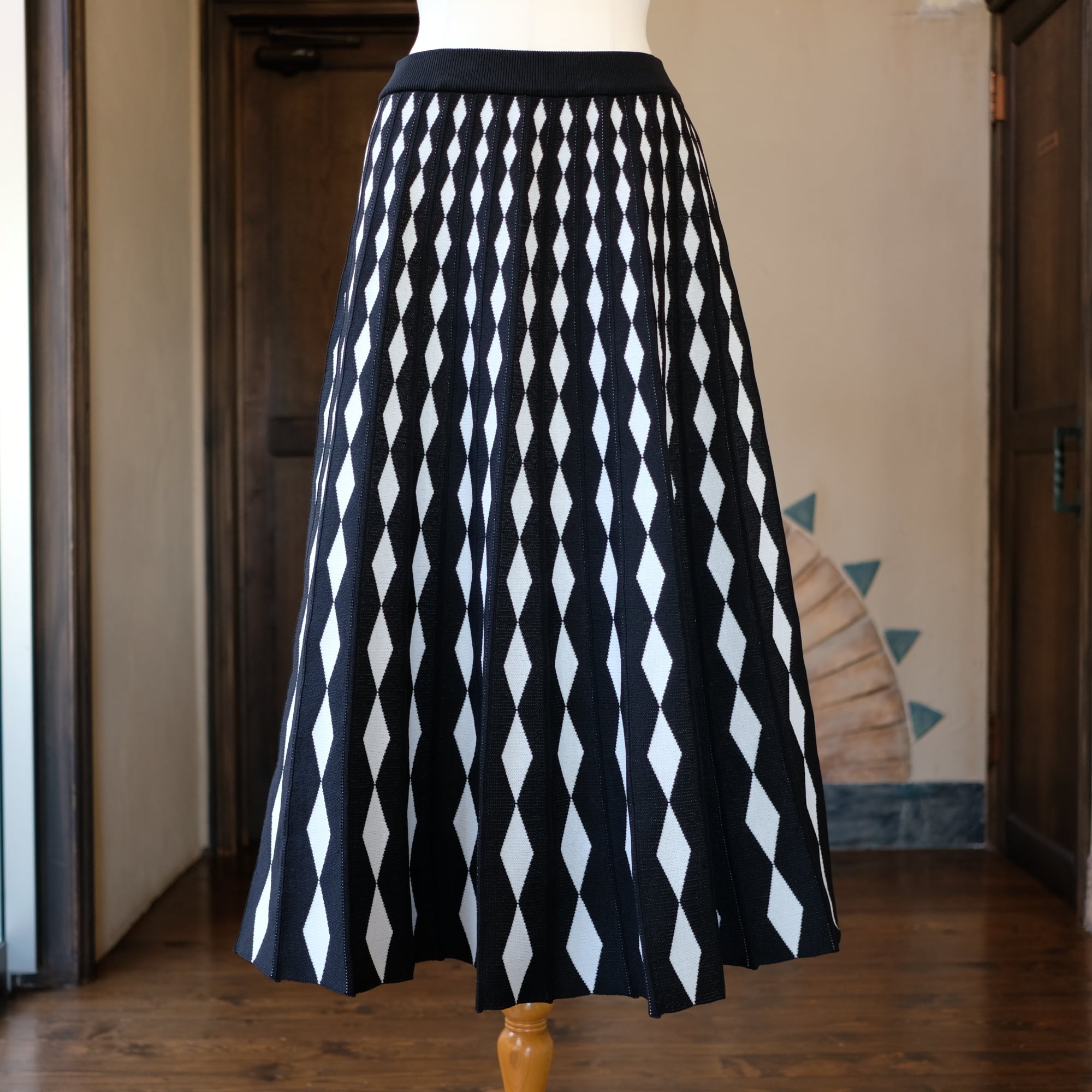 商品名:【BRAHMIN】ダイヤ柄 14G ダブルジャガードスカート<ブラック×オフホワイト>