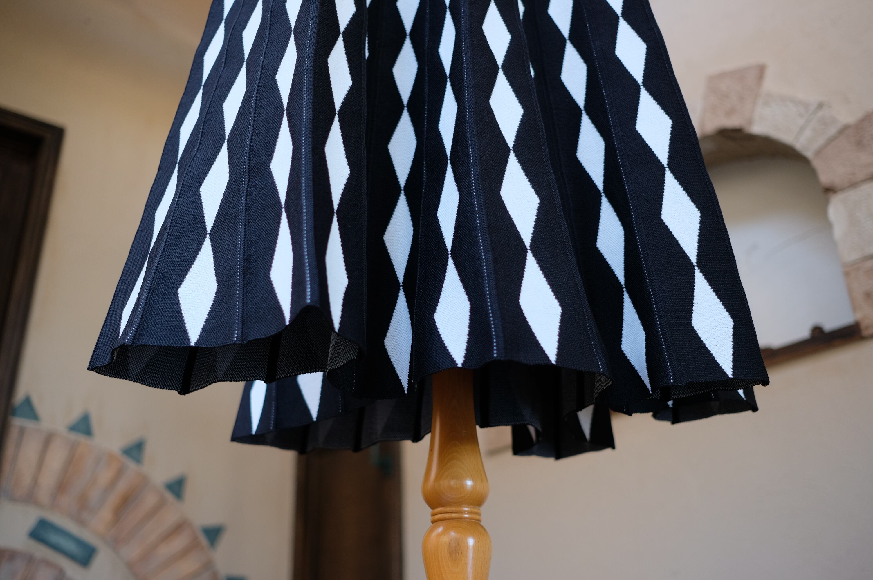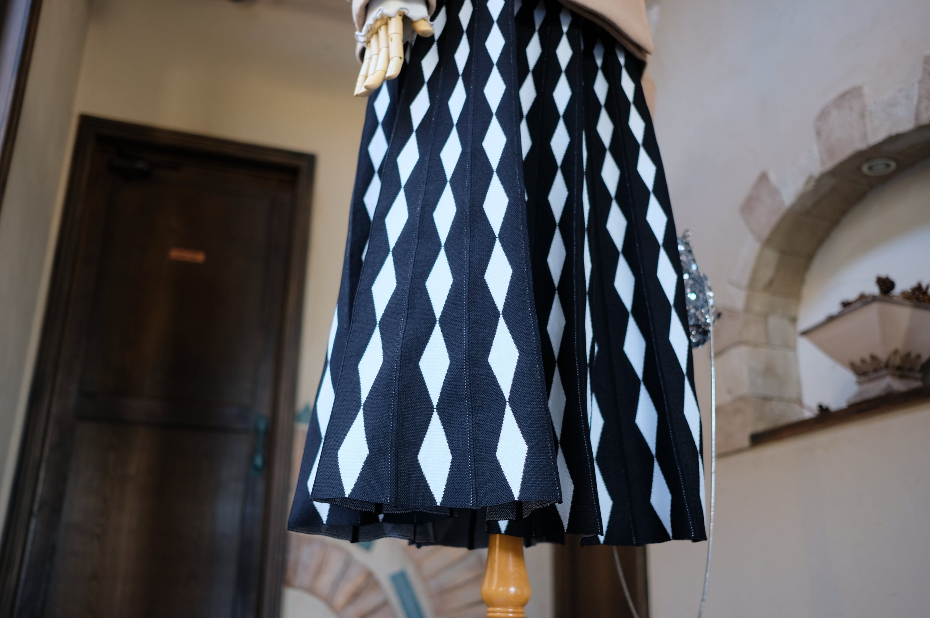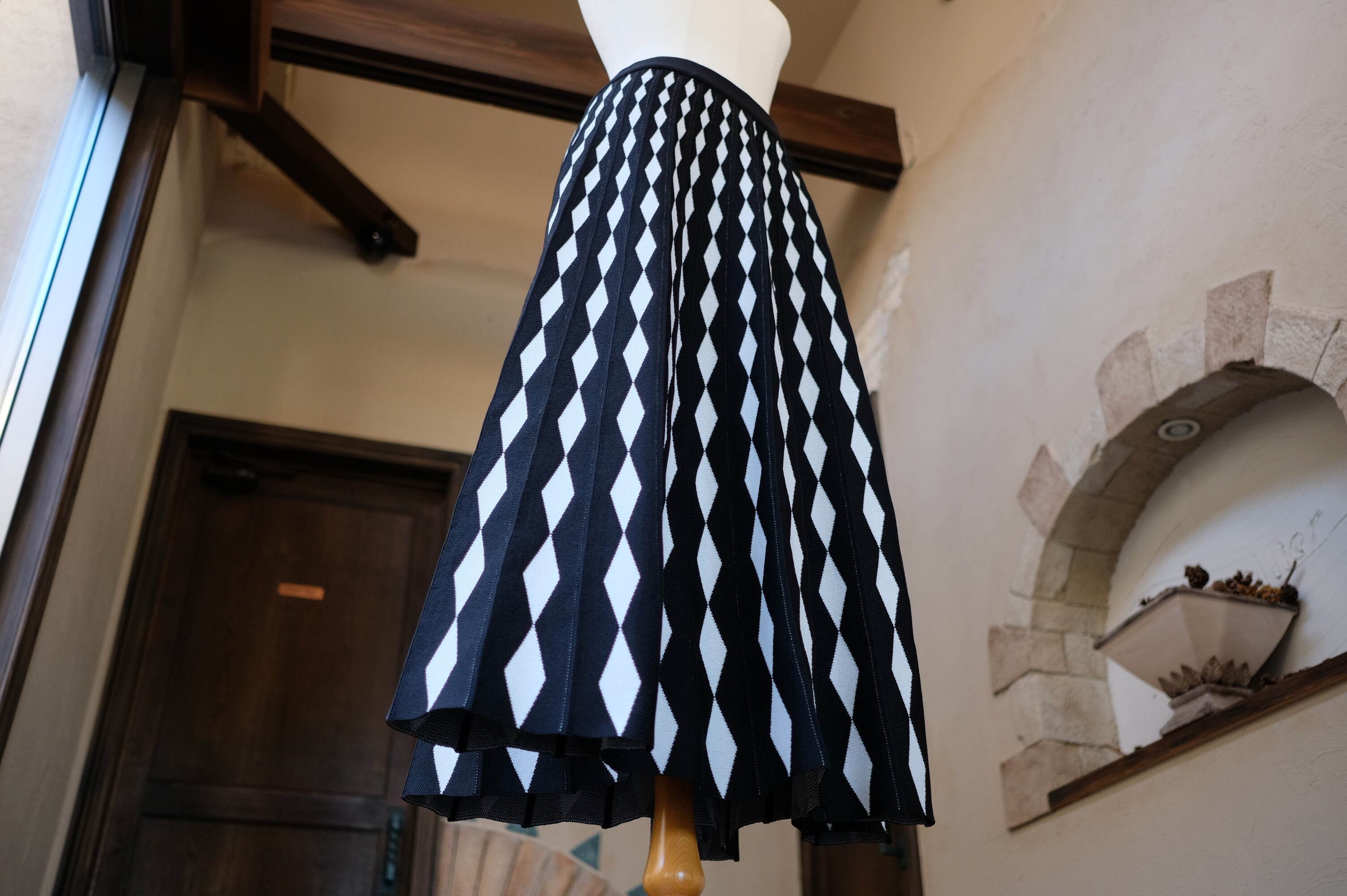 商品名:【BRAHMIN】ダイヤ柄 14G ダブルジャガードスカート<ブラック×オフホワイト>